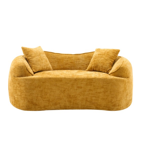 Gebogenes Zweisitzer-Sofa Gelb | Ohne Montage Sofa direkt einsatzbereit | Komfort-Sofa mit Federkern & 2 Kissen für Wohnzimmer, Schlafzimmer | Creme-Gelb