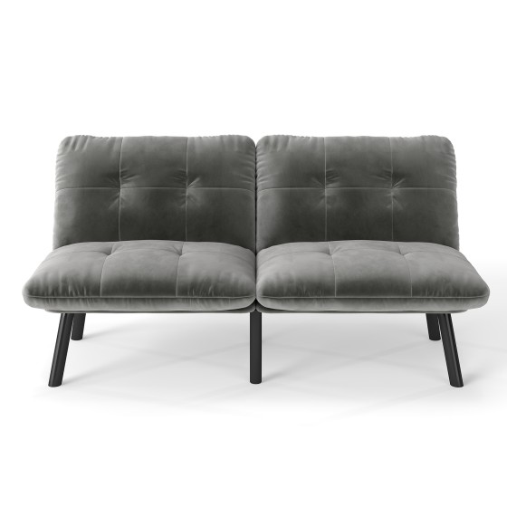 Sofa Bett 2-Sitzer Klappbar, Ausziehbares Gästebett mit Samtbezug in Grau, Beige, Braun, Ohne Montage, Metallrahmen, Platzsparend für kleine Wohnung, Appartement
