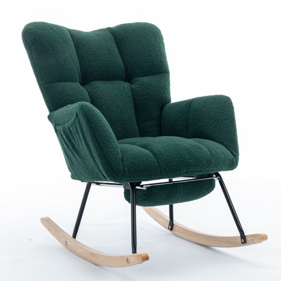 Schaukelstuhl mit AUSZIEHBARER FUSSTÜTZE | Moderner Sessel aus Teddy-Stoff, geräuscharm & ergonomisch | Höchstbelastbar bis 150kg, für Wohnzimmer & Balkon | Grün