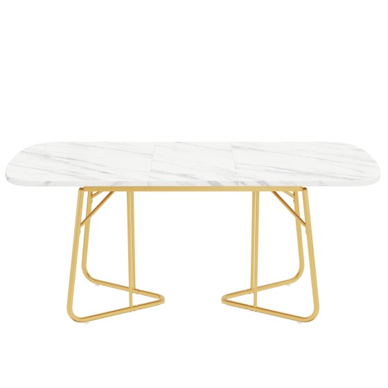 Weißer Erweiterbarer Esstisch mit Marmoroptik & Vergoldeten Metallbeinen | 140 auf 180 cm Verstellbar | Luxus Design für 4-6 Personen | Esszimmer Tisch