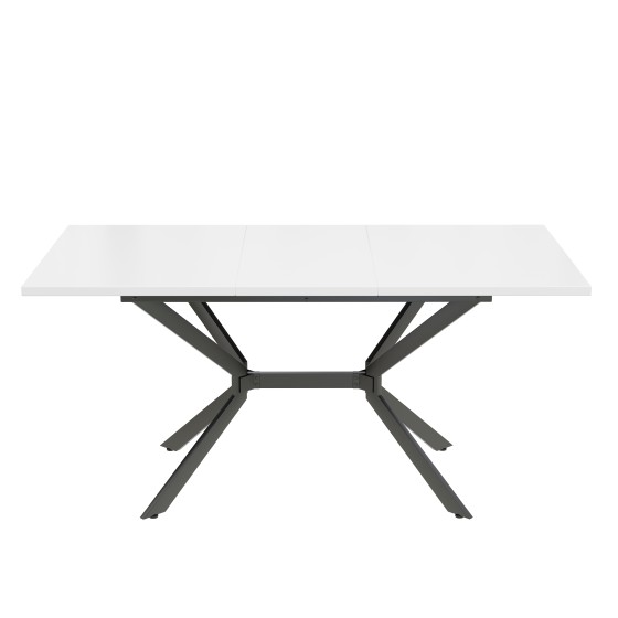 Weißer Erweiterbarer Esstisch 120-160 x 80 cm - Esstisch mit Schwarzen Metallbeinen, Moderner Minimalsitischer Tisch für 4-6 Personen, Einfache Montage, 60kg Tragkraft