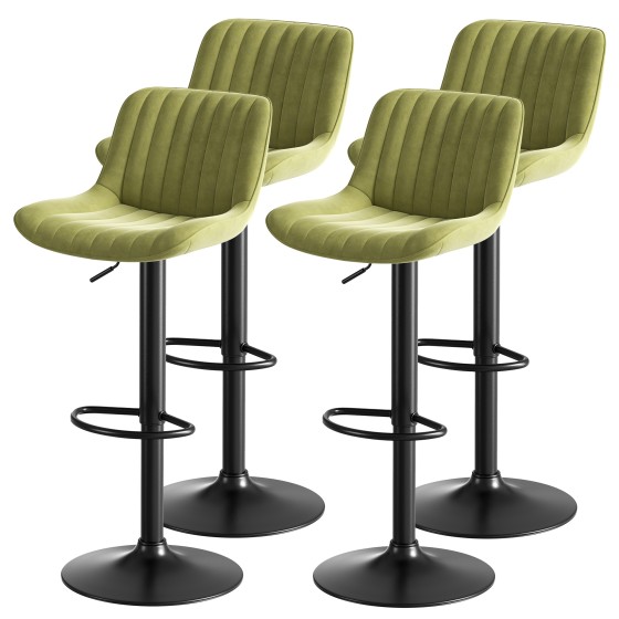 Barhocker 4er-Set Höhenverstellbar Mit Samtbezug, 360° Drehbare Barstühle in Braun, Grün, Schwarz, Höhe 87-109cm, Modernes Komplettset für Kücheninsel, Home-Bar, Gastronomie