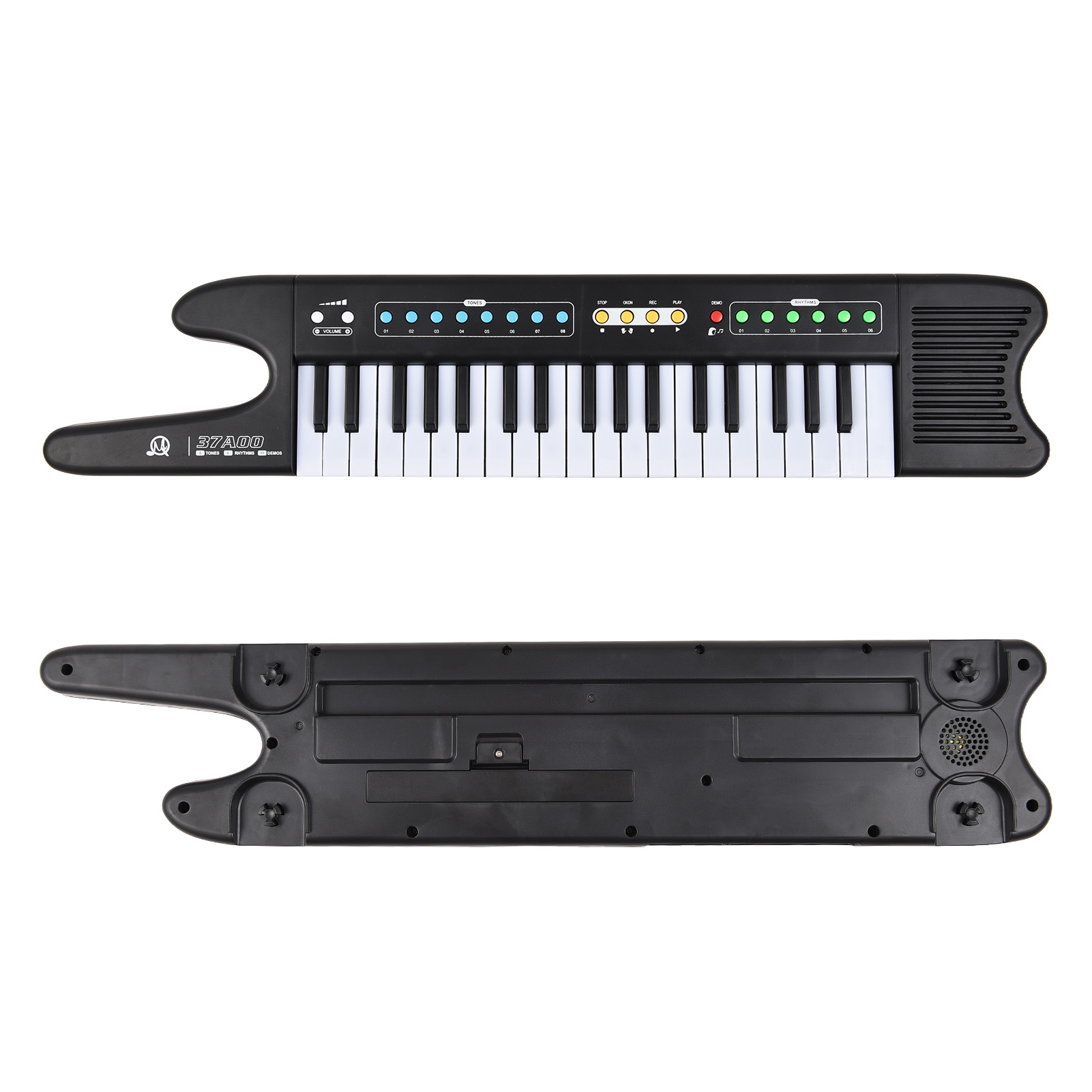 37键多功能电子琴 单喇叭 迷你琴键 便携电子琴 带麦克风/背带 双供电模式USB供电或电池供电(3*AA电池出货不带) MQ-37A00 YM I9708 G