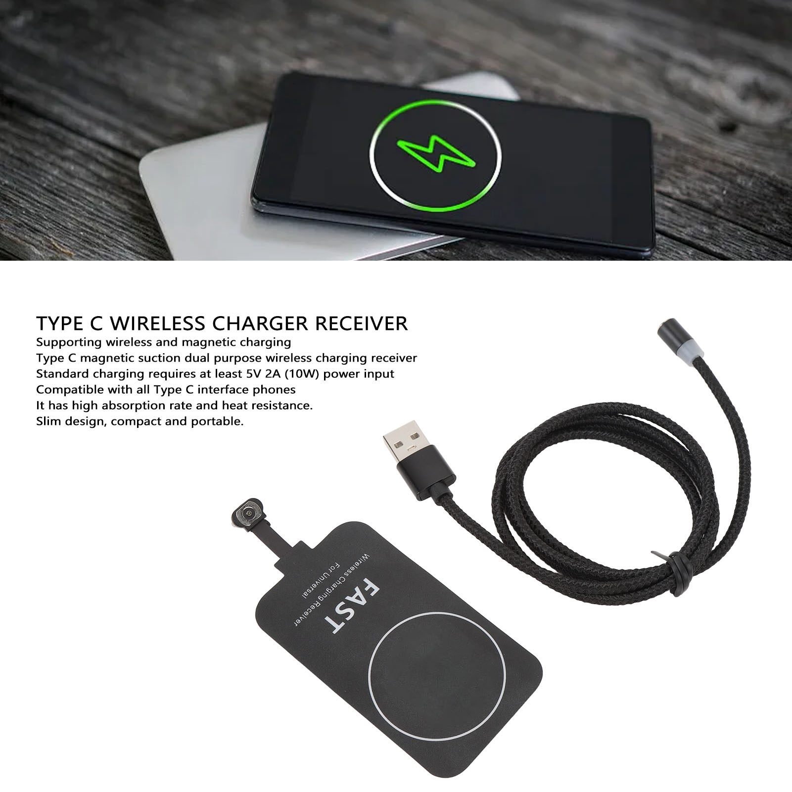 10W无线充贴片磁性背贴 Type-C磁吸两用无线充电接收器 YM 2611240093311 G