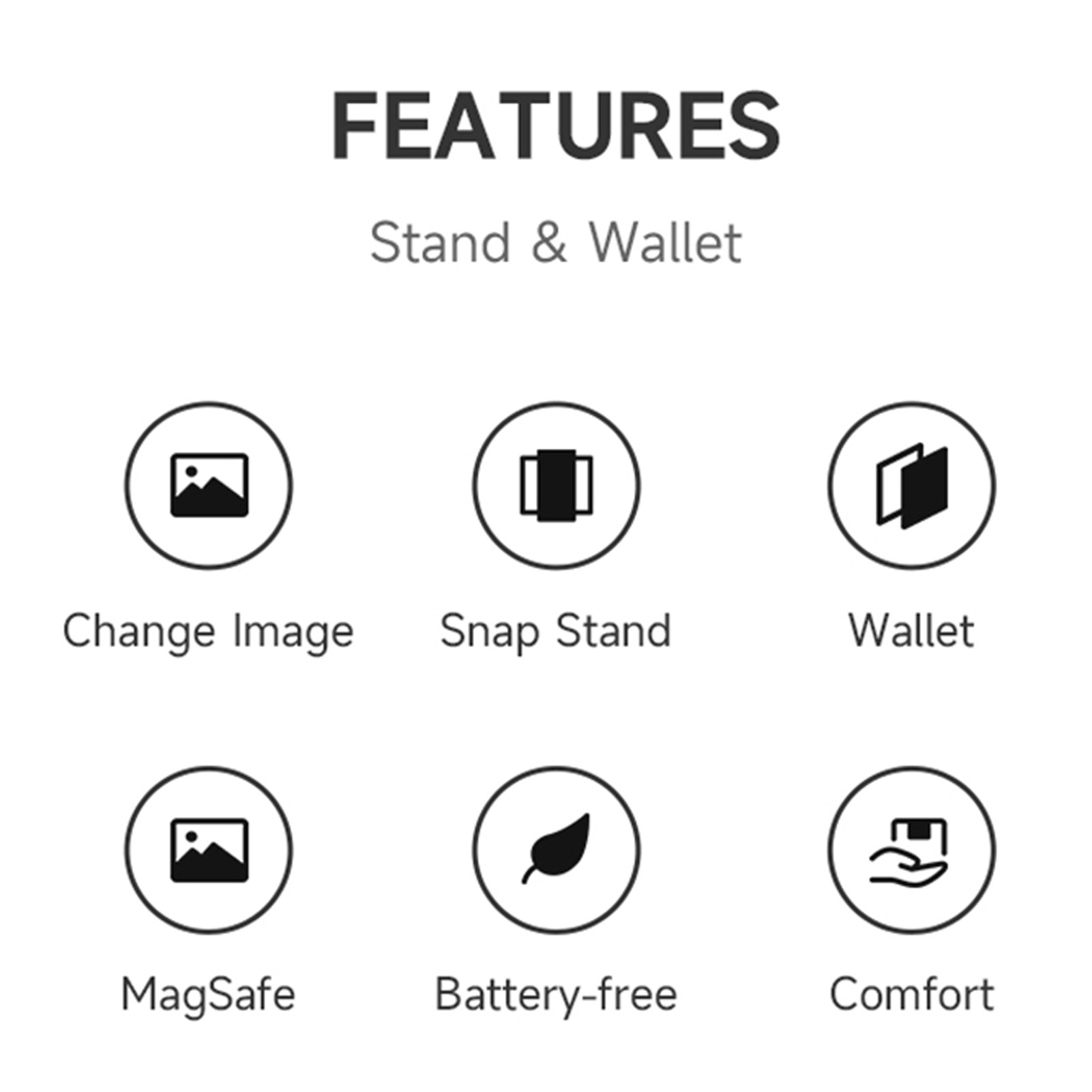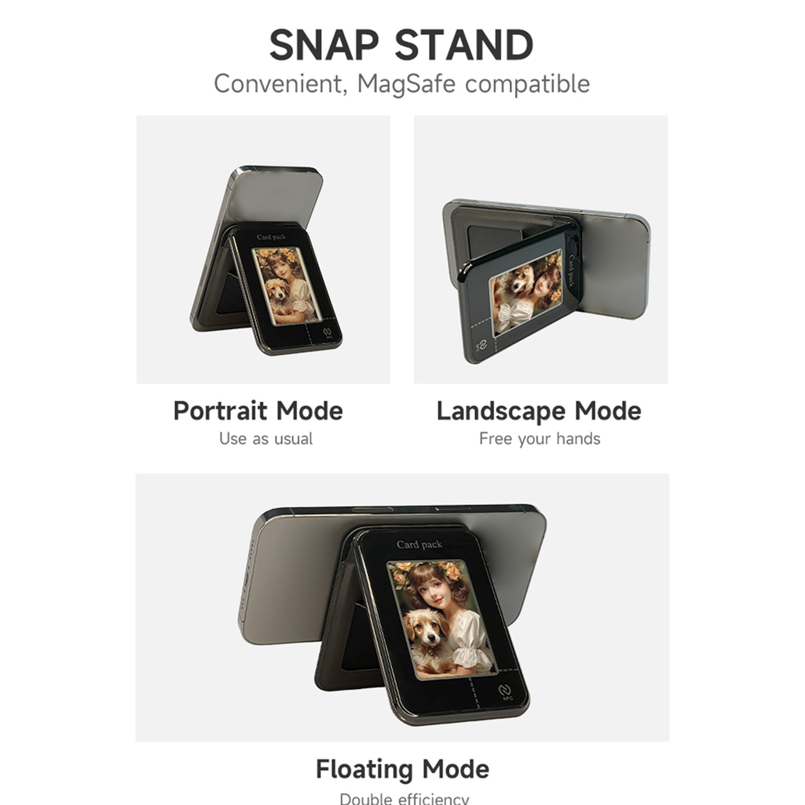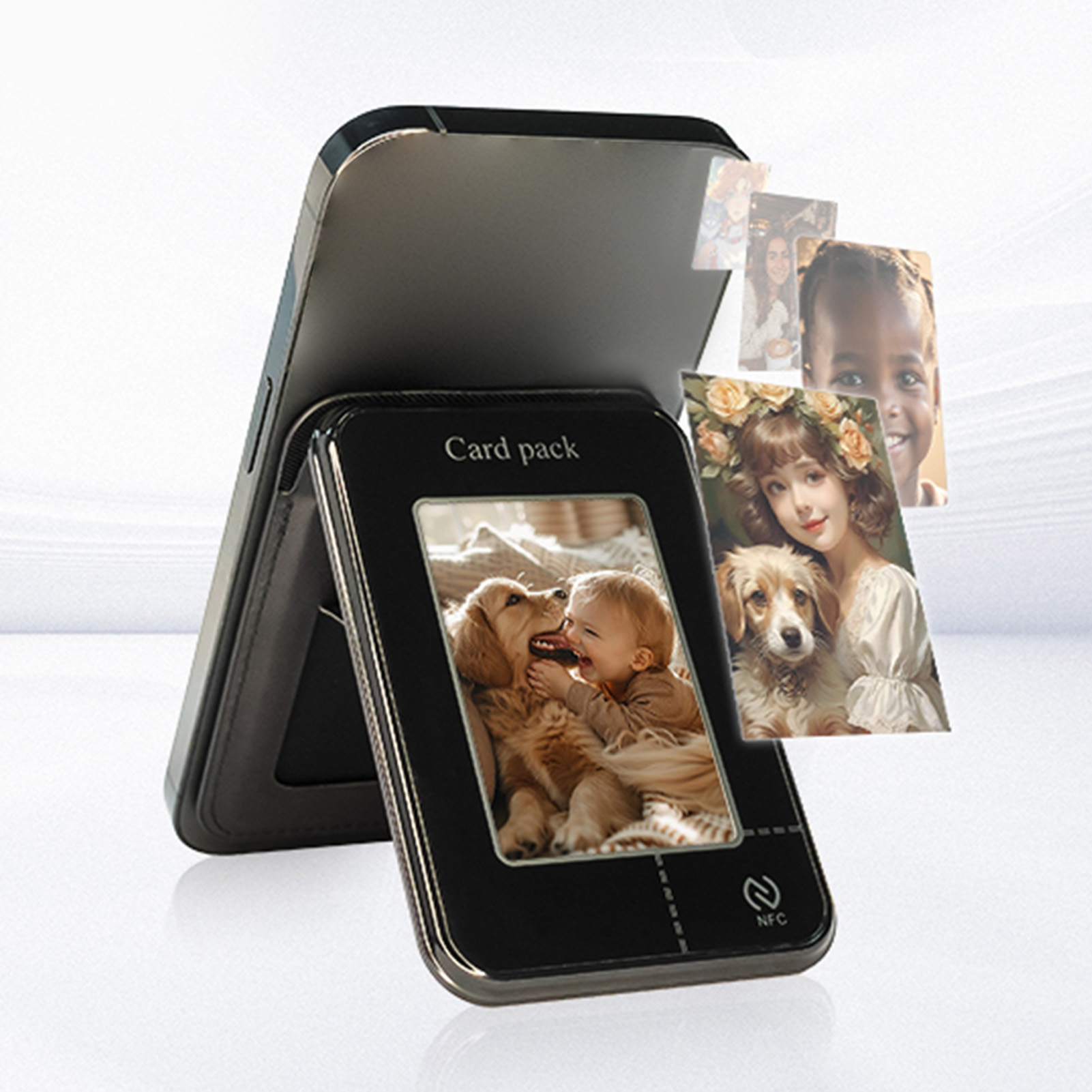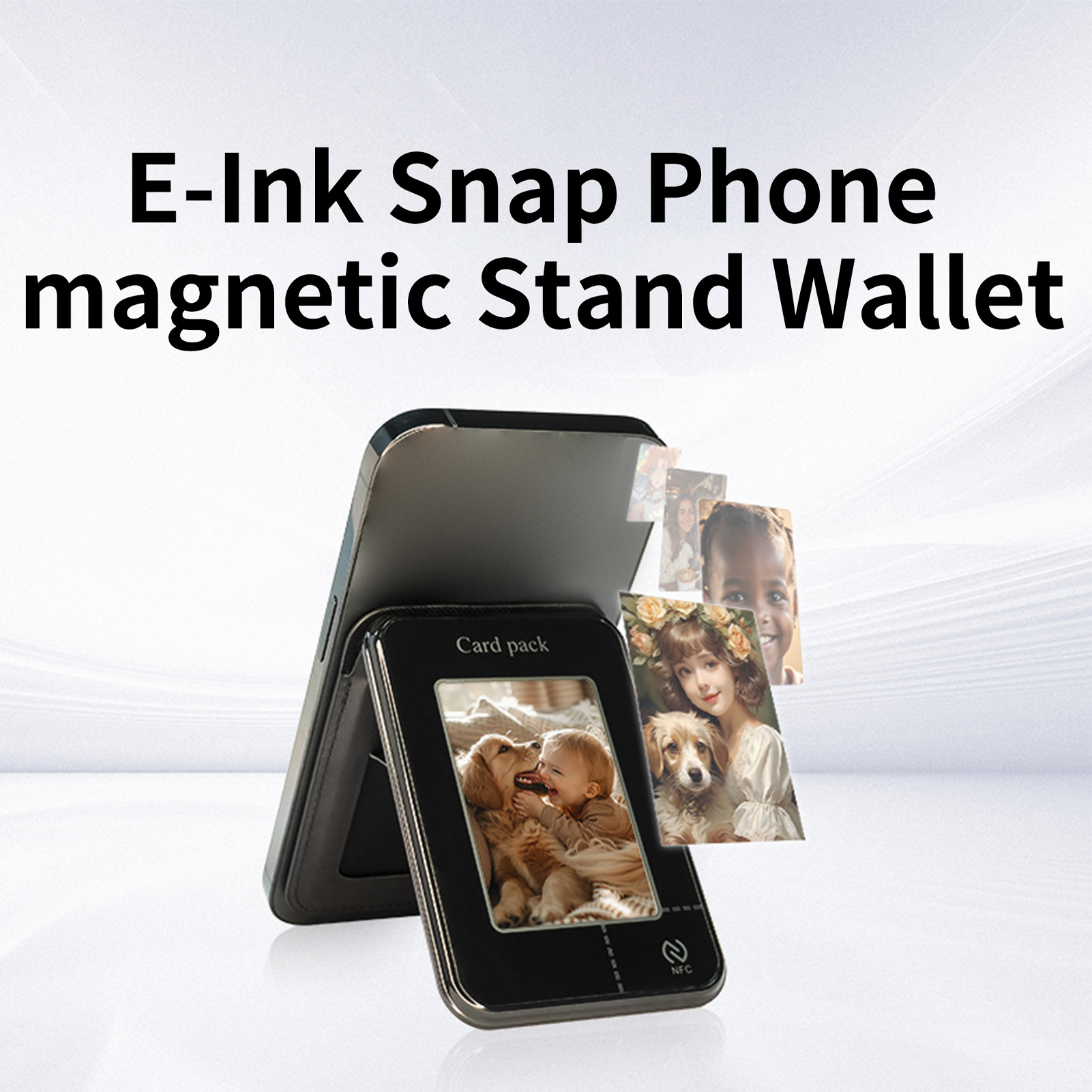Magnetic Wallet Stand with 3.52 Inch Screen NFC Ink Photo Rear Projection 3 Viewing Modes Cell Phone Card Holder for IOS