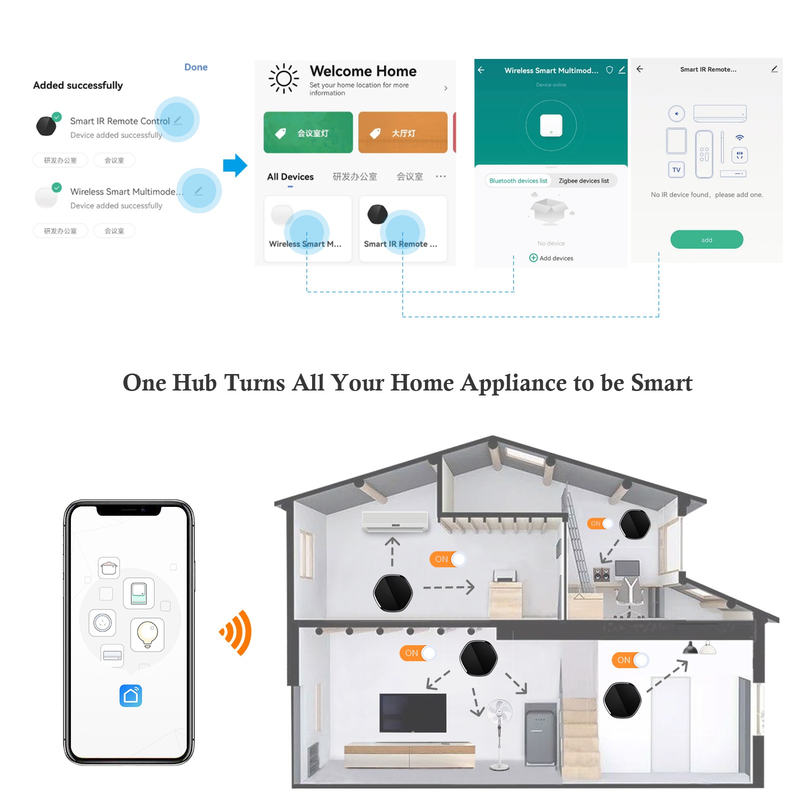 YZG14 无线智能多功能网关 (ZIGBEE3.0网关+红外遥控器+蓝牙mesh三合一) 支持Google Assistant/Amazon Alexa/IFTTT语音控制 APP: Smart Life YM V12079 G