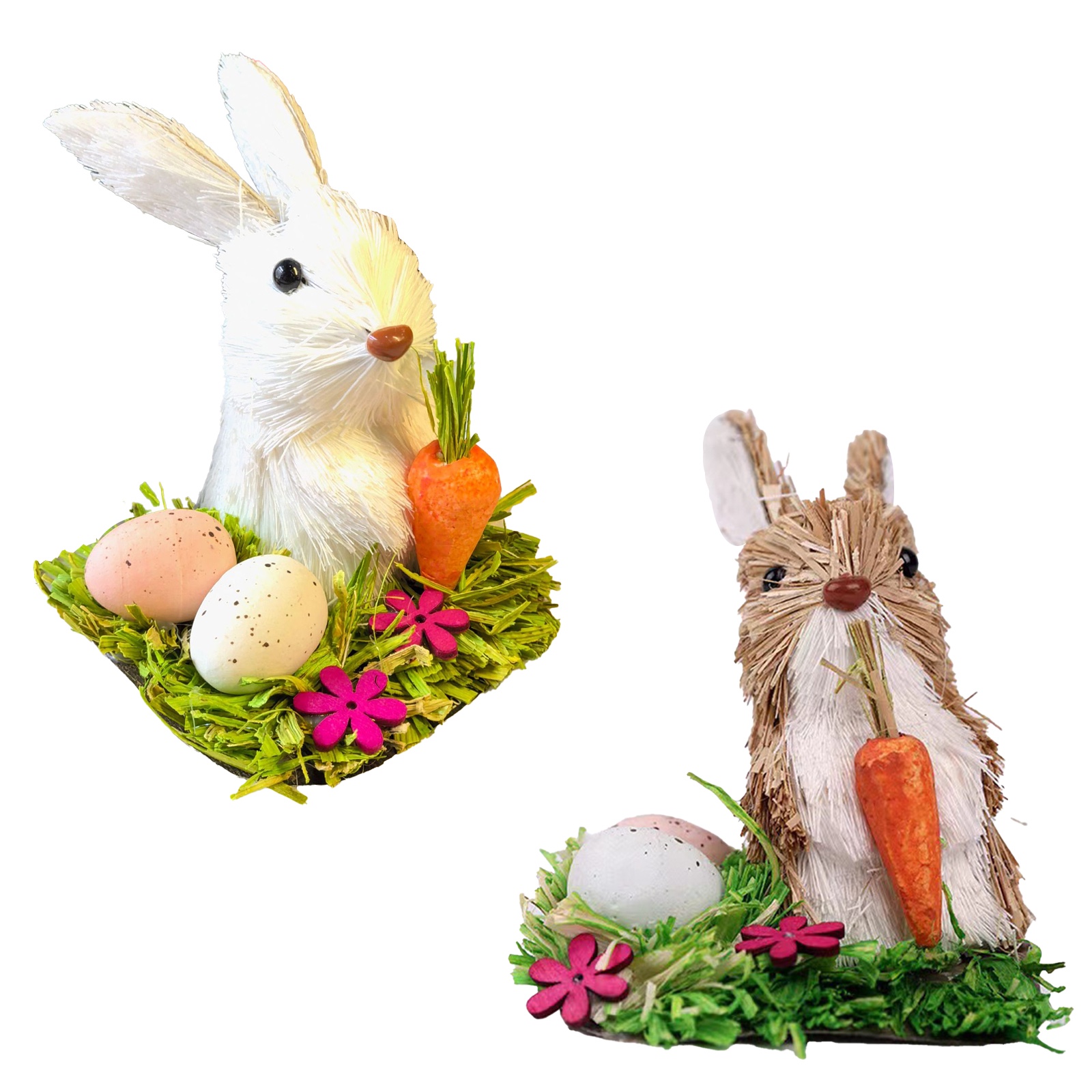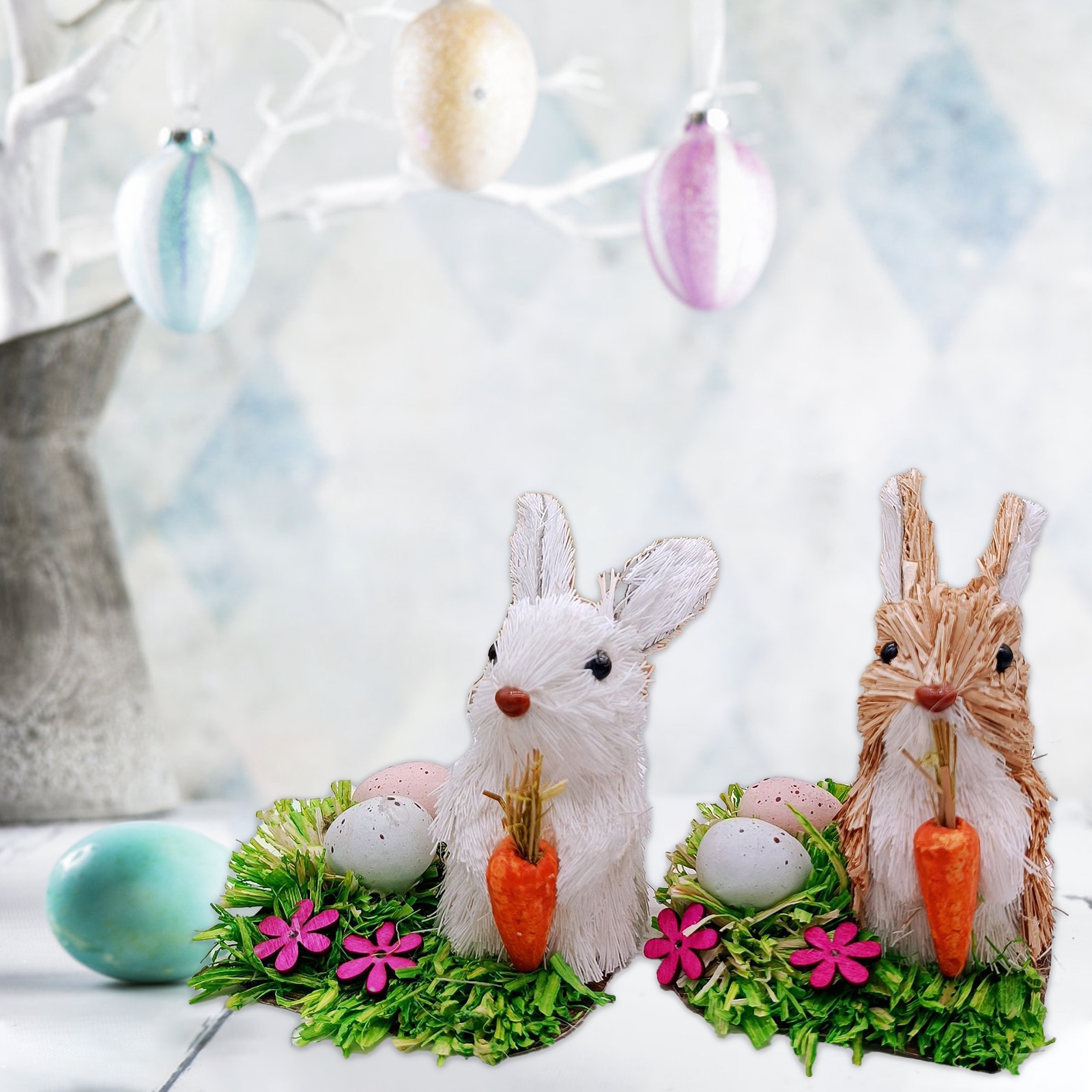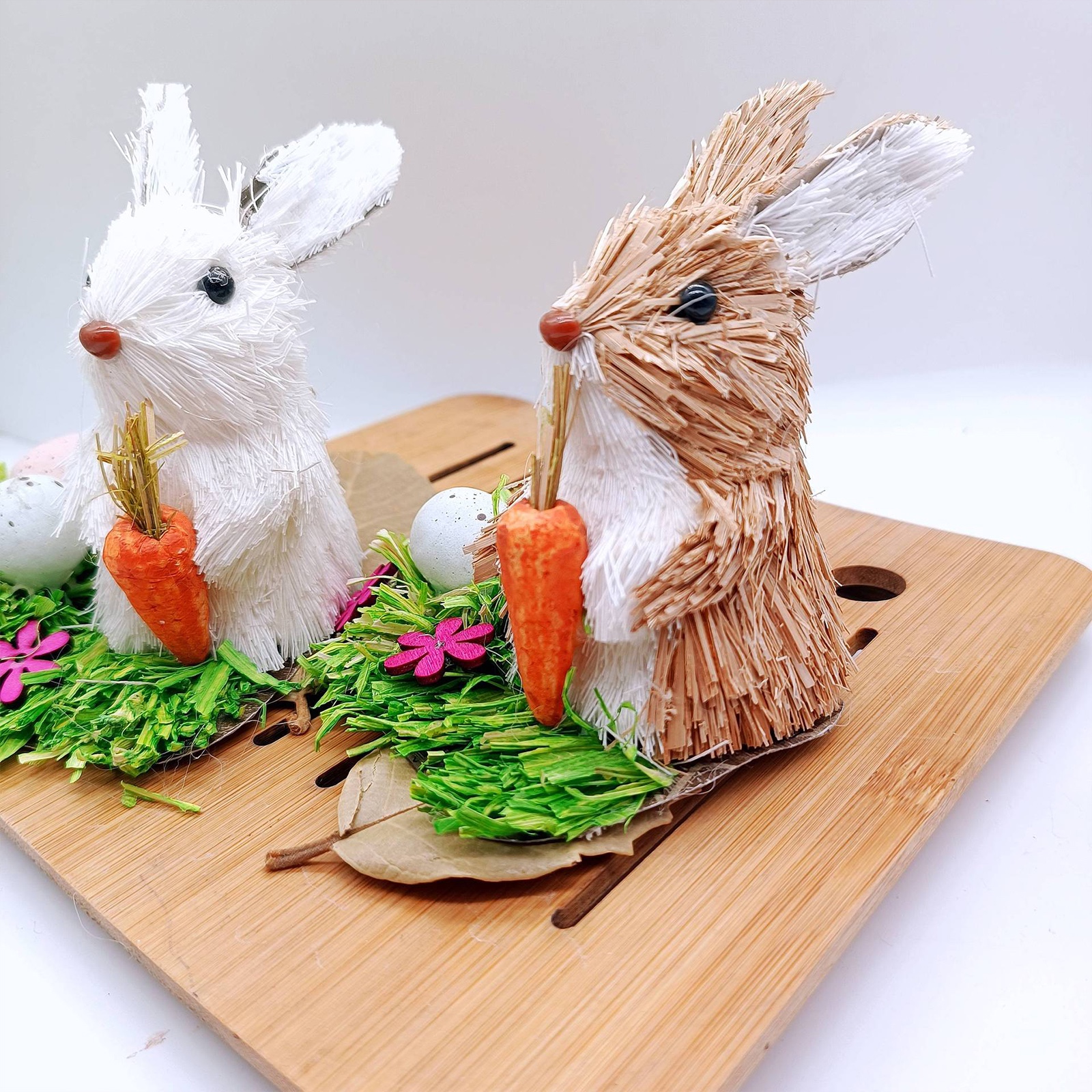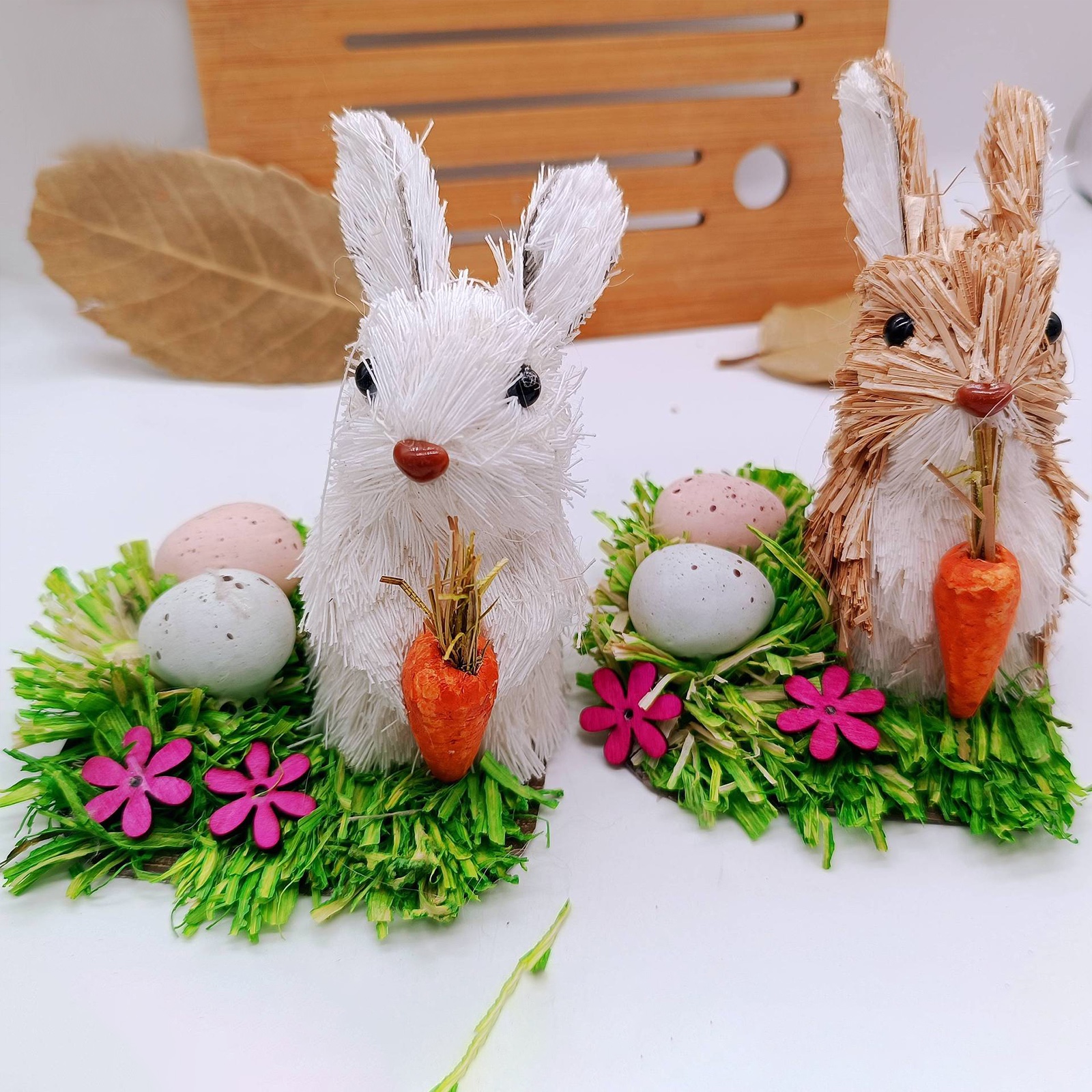[9 * 8 * 9.5cm Little White Rabbit] Handmade Natural Grass Weaving Rabbit Garden Balcony Decoration Ornament