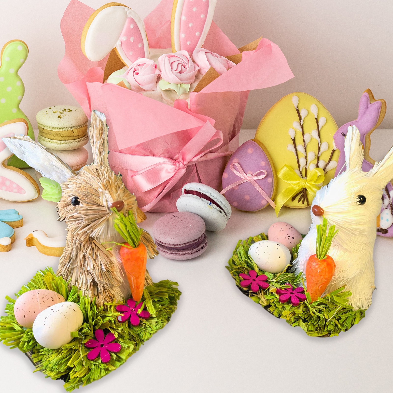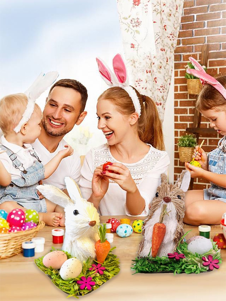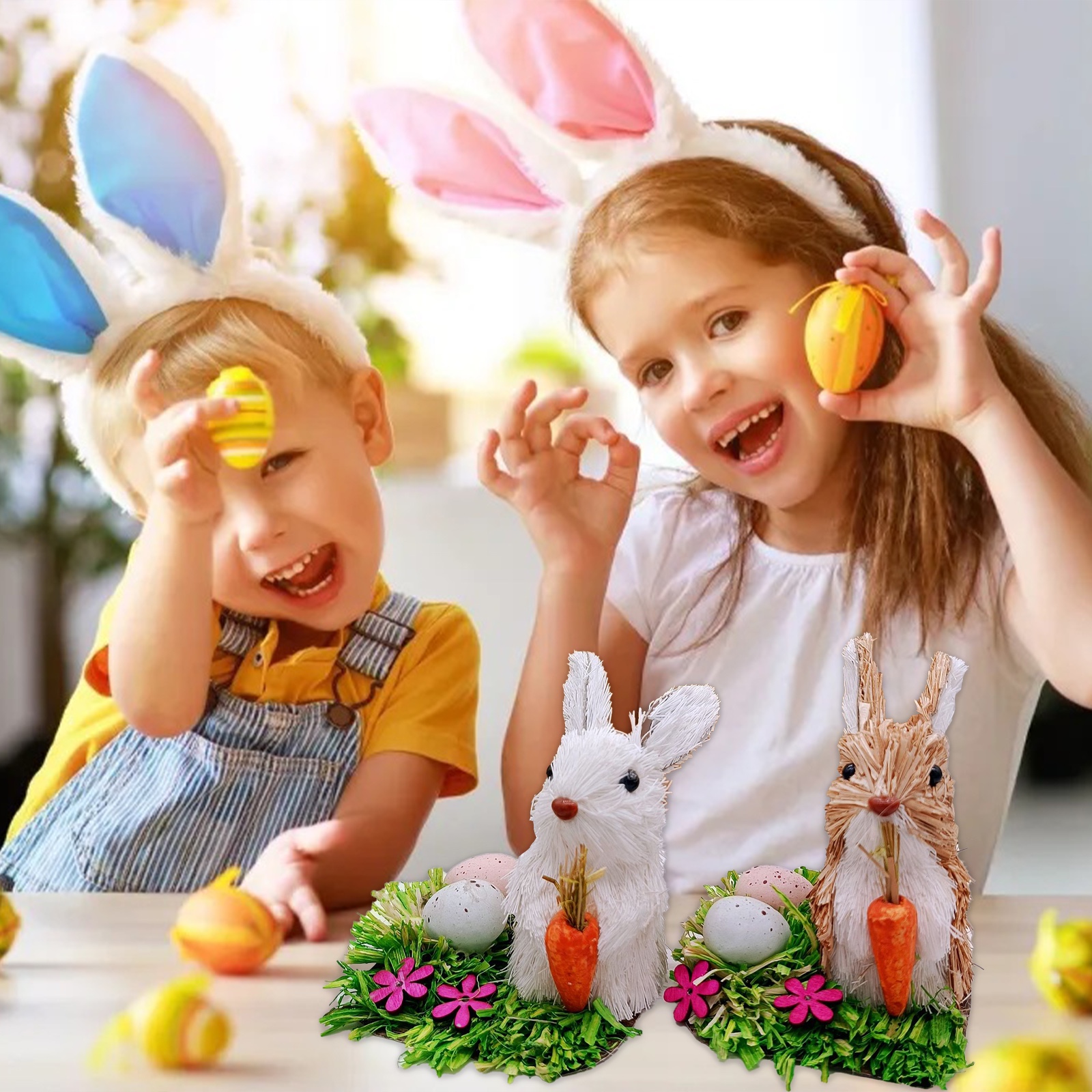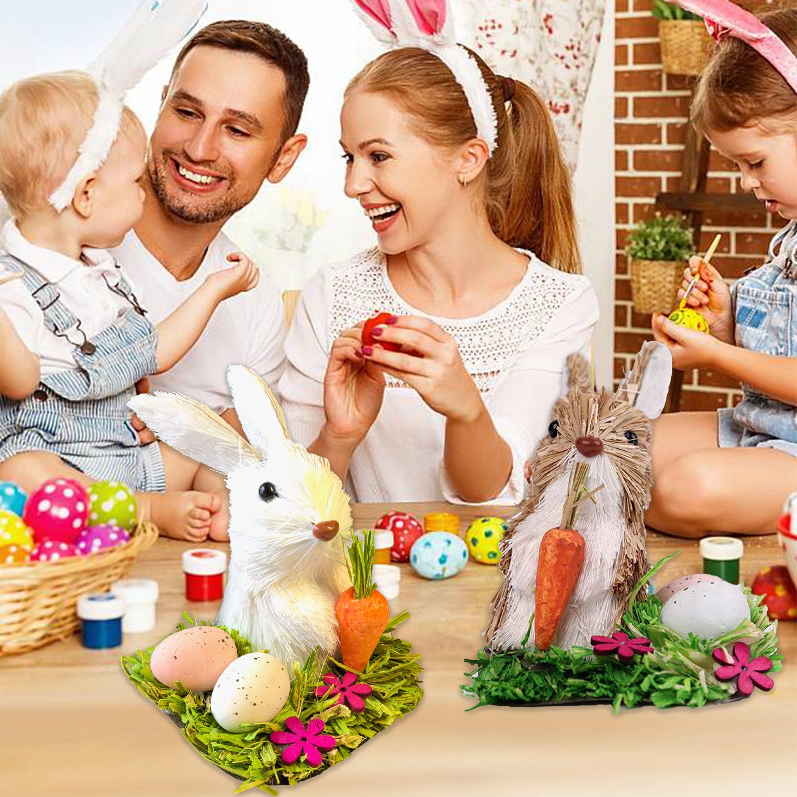 [9 * 8 * 9.5cm Little White Rabbit] Handmade Natural Grass Weaving Rabbit Garden Balcony Decoration Ornament