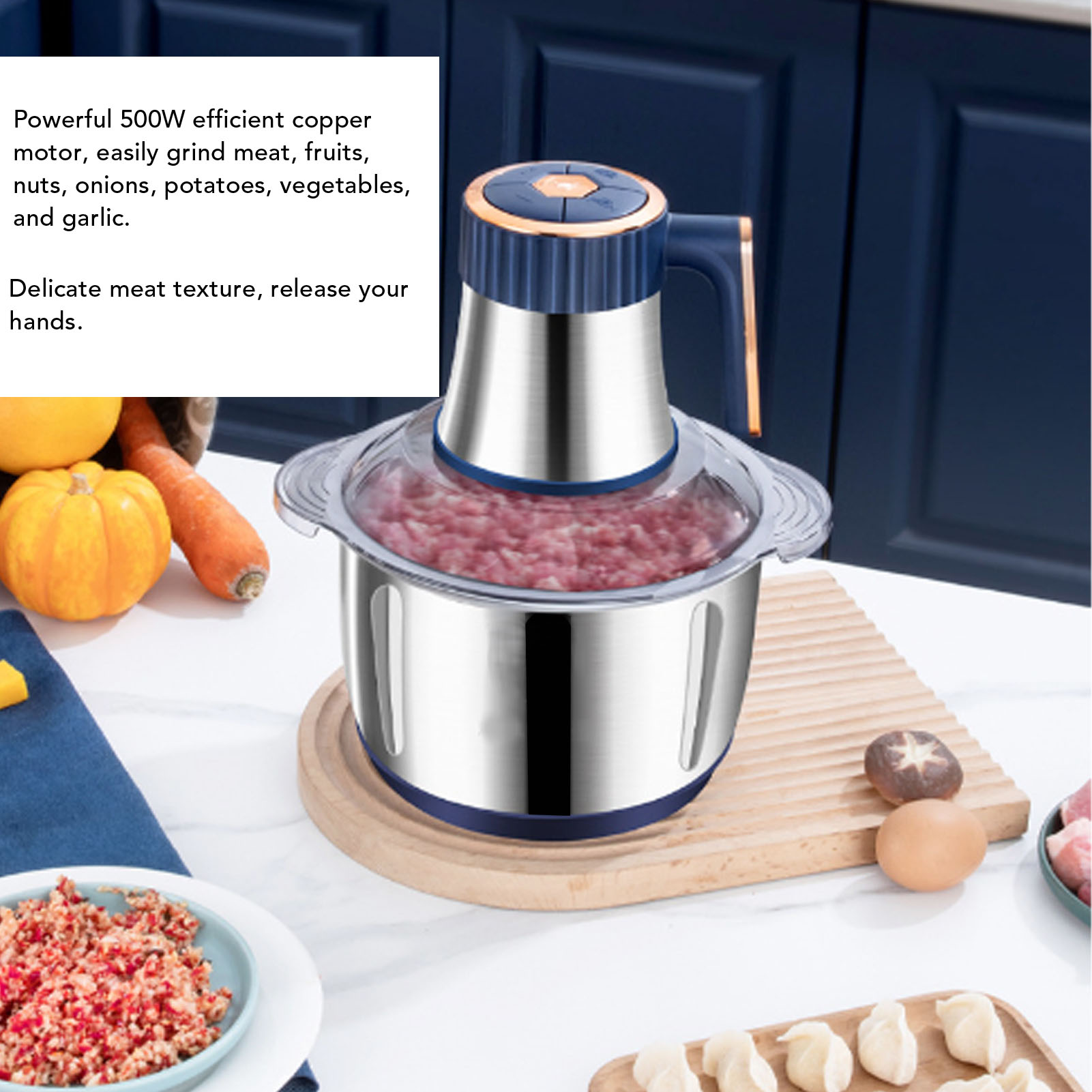 Food Chopper Electric Meat Grinder with 5L Stainless Steel Bowl 500W Copper Motor for Kitchen Meat Vegetables Onion Garlic Salad Fruits Nuts EU Plug 220V