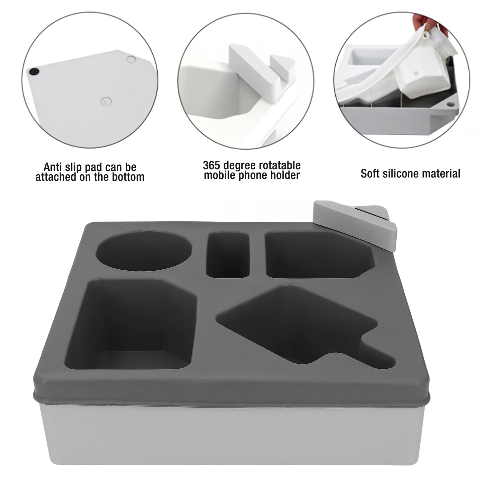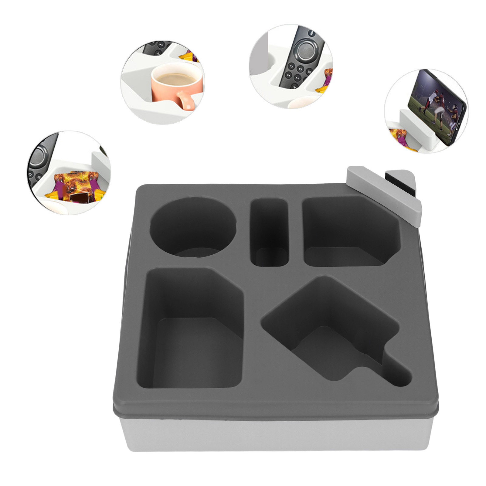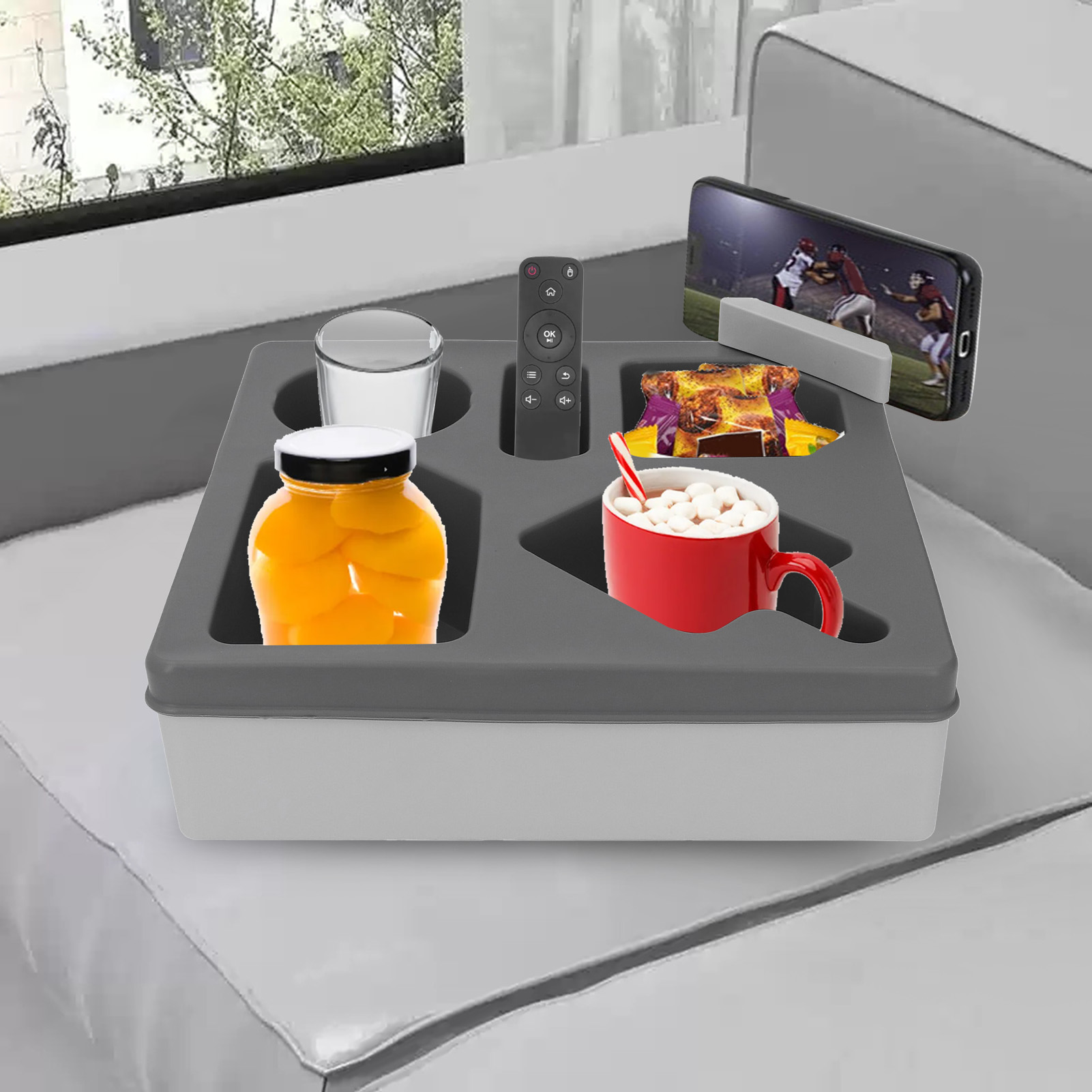 Sofa Cup Holder Tray with Phone Stand Silicone Plastic Couch Caddy Drink Holder for Bed Car Remote Control Snacks and Other Items Grey
