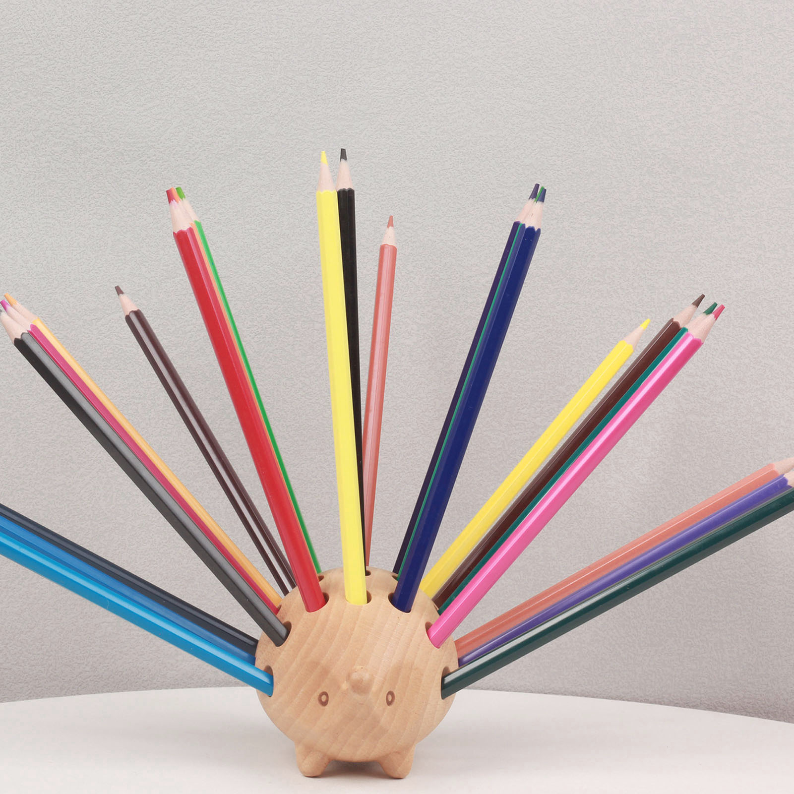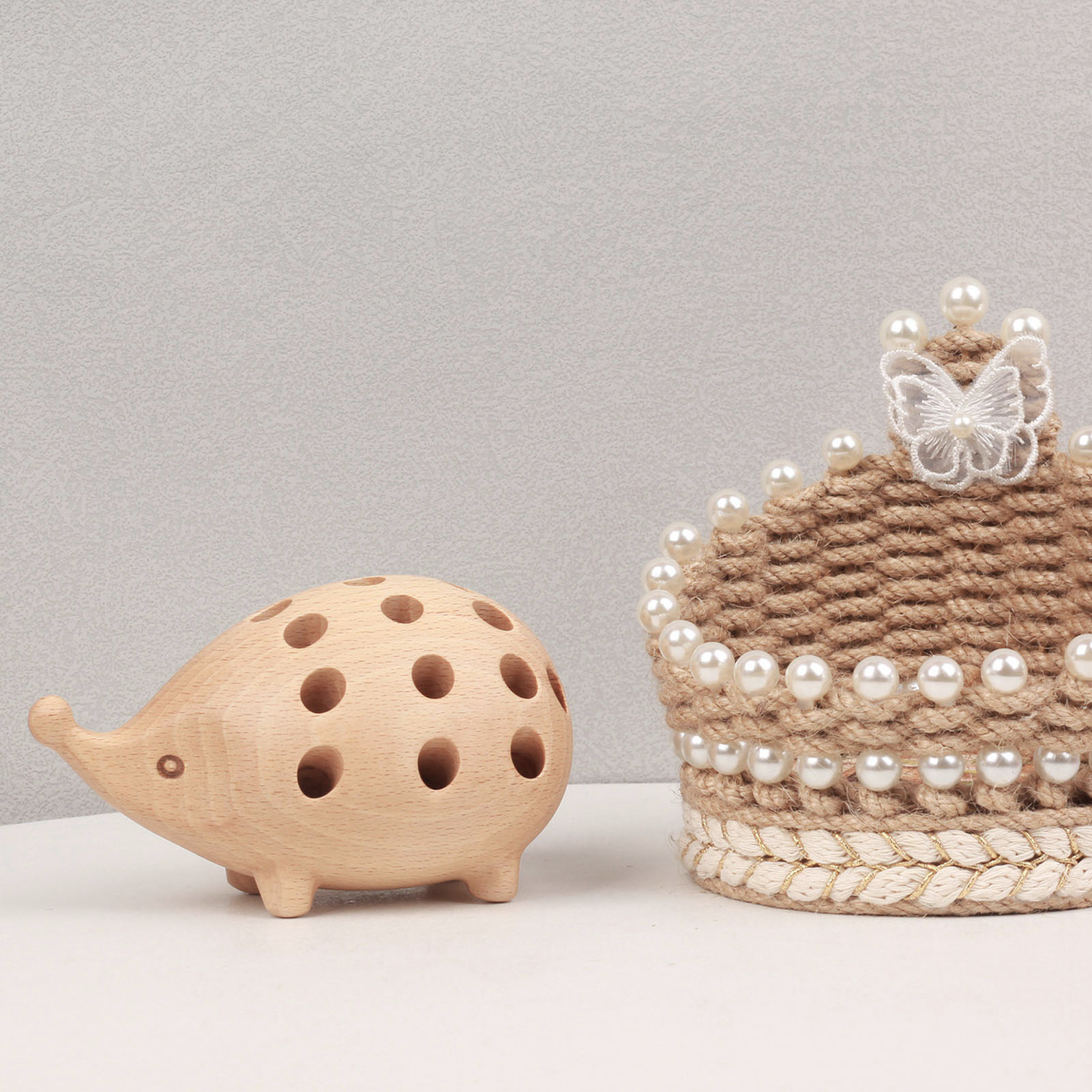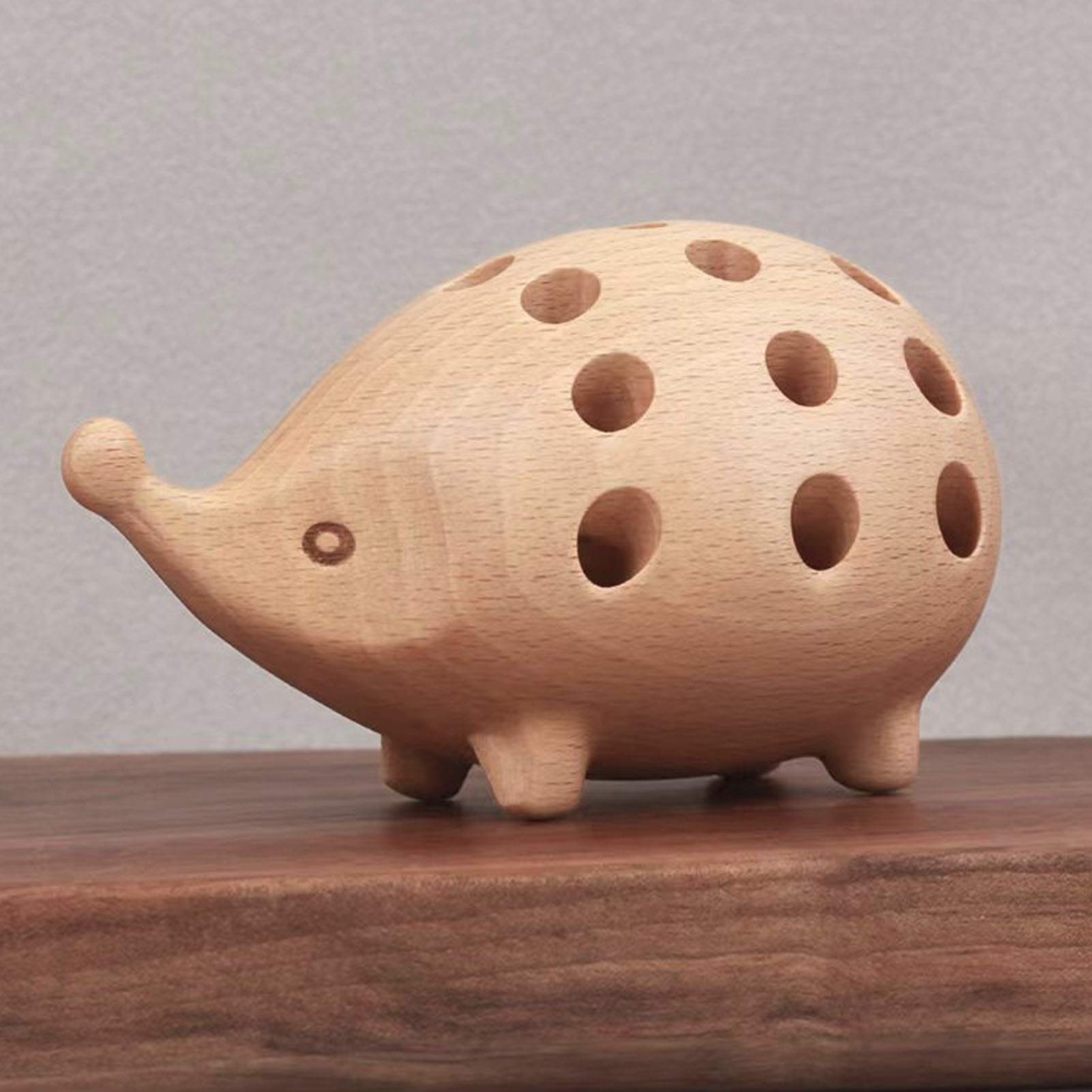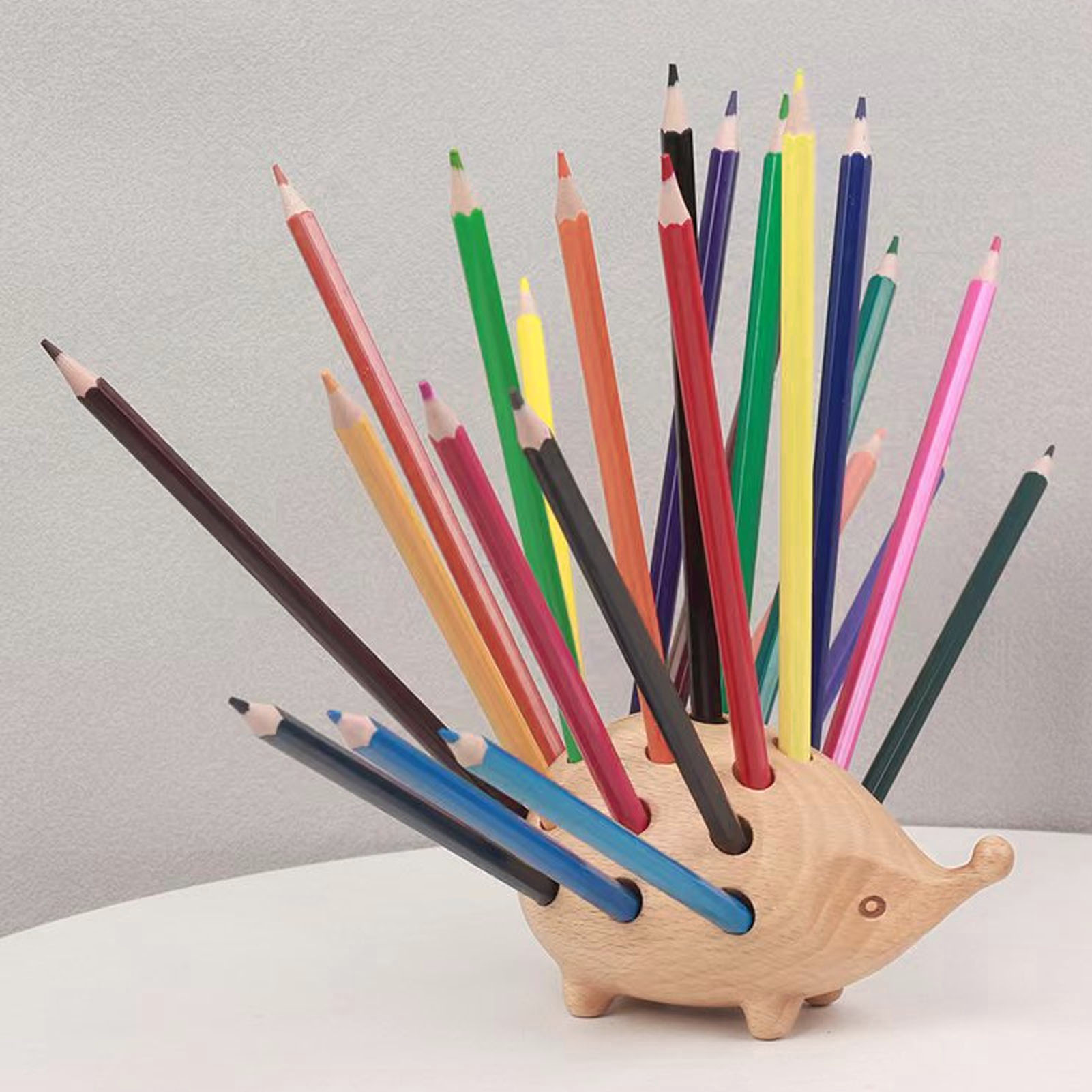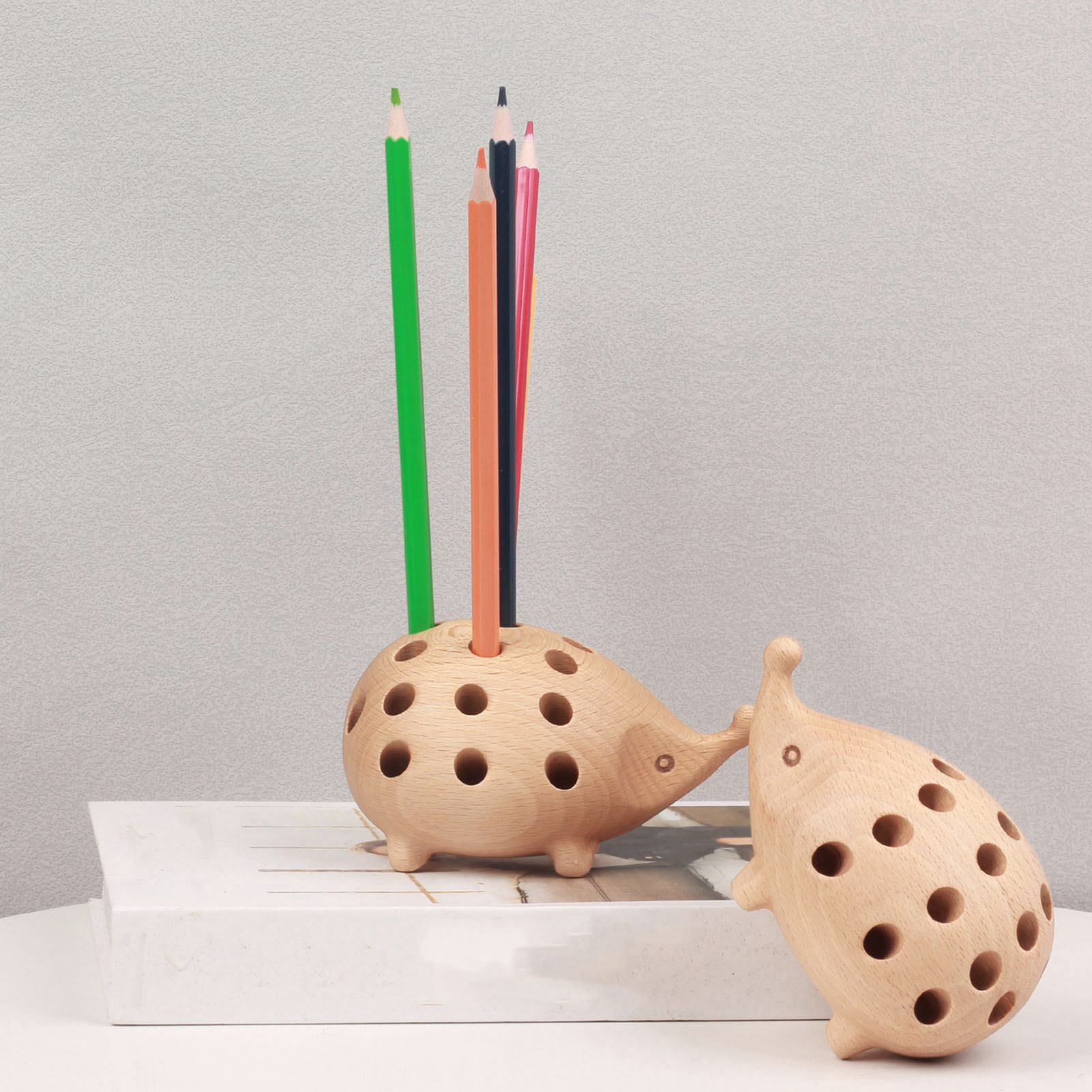 Hedgehog Wooden Pen Pencil Holder Cute Resin Animal Ornament Home Office Desk Supplies Organizer Accessory