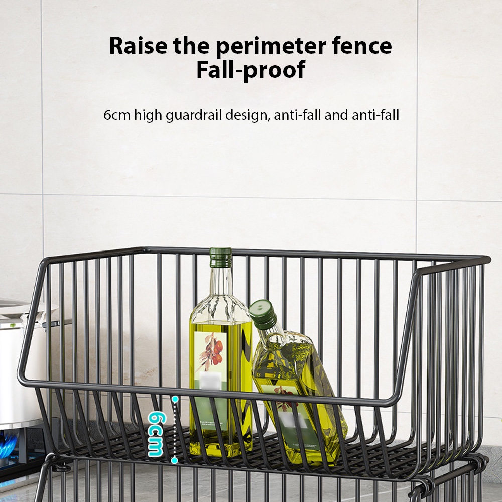 2 Tier Fruit Basket for Kitchen Storage Cart Stackable Metal Wire Storage Basket Snacks Organizer Baskets with Rolling Wheels Potato Onion Storage Bins Rack for Kitchen Living Room Home Office