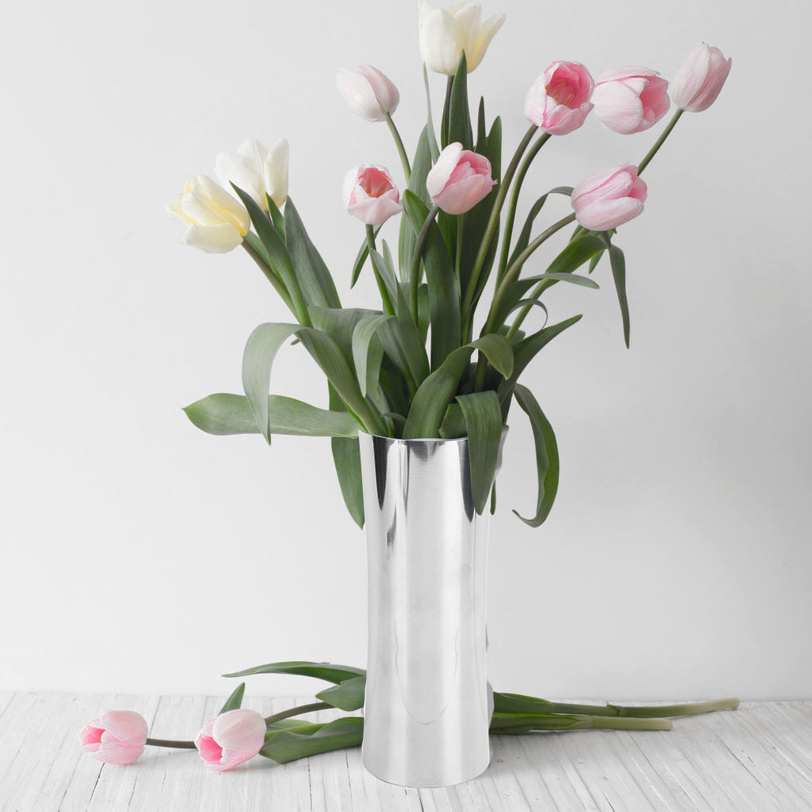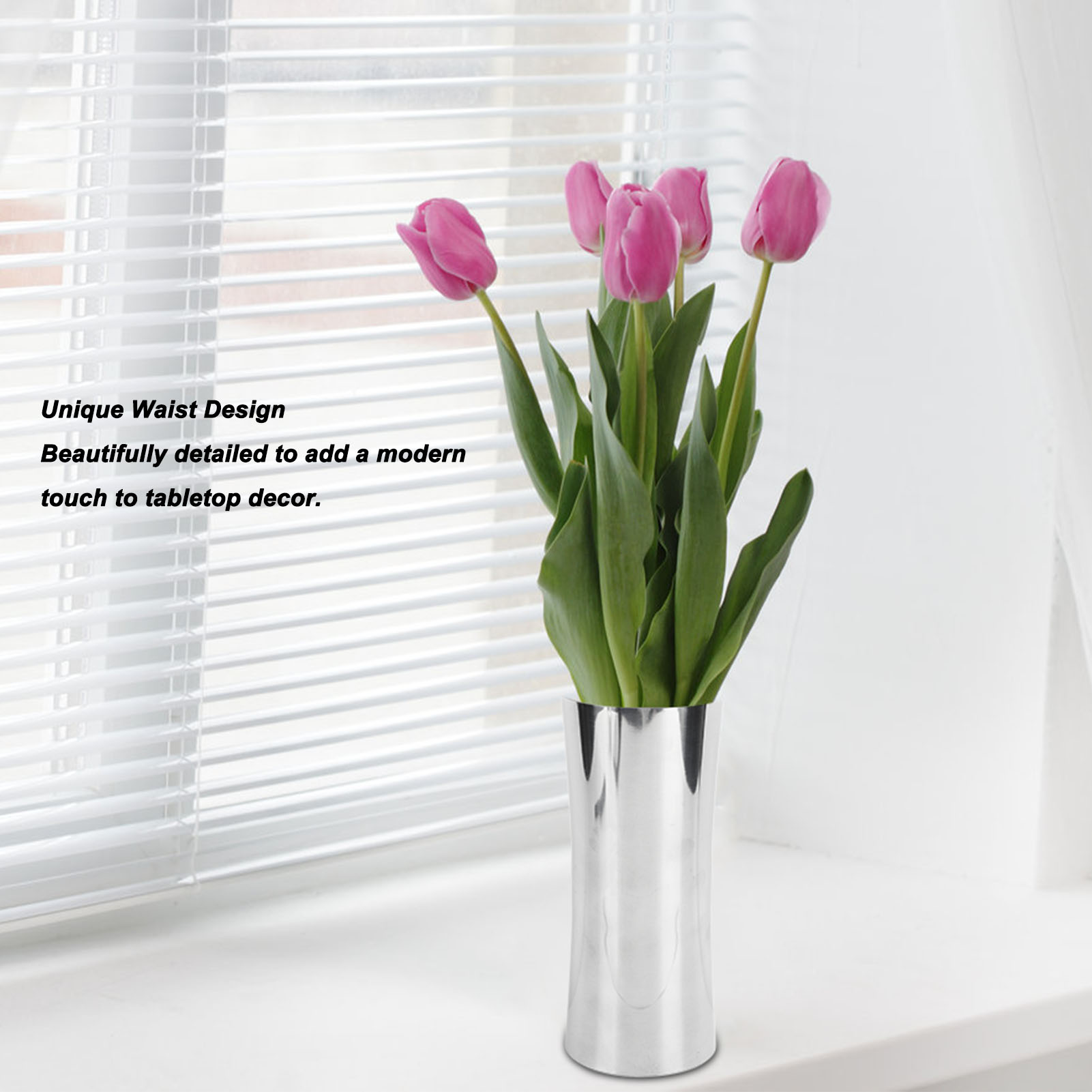 Tall Vase 304 Stainless Steel Silver Color Waist Shaped Flower Arrangement Vase for Office and Wedding