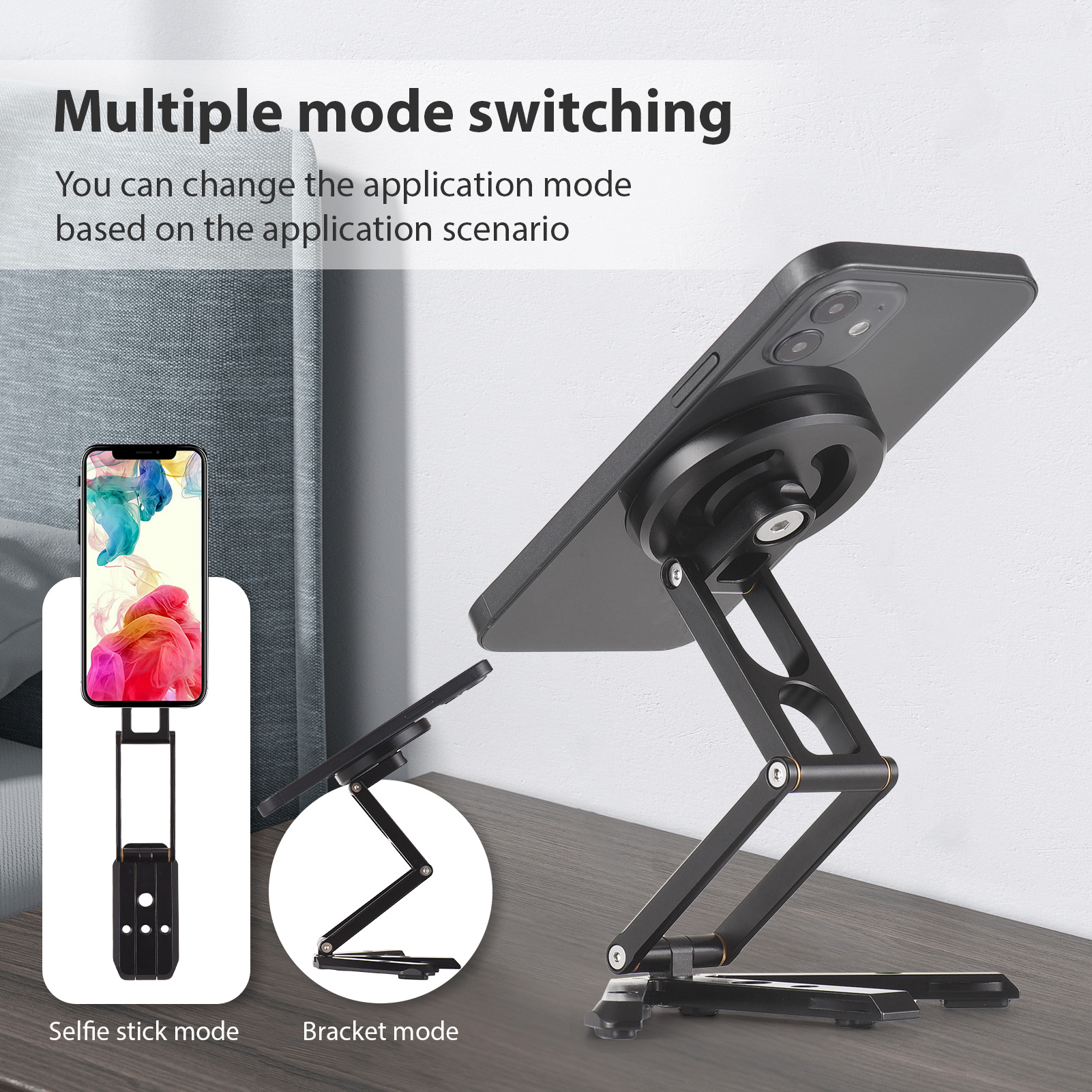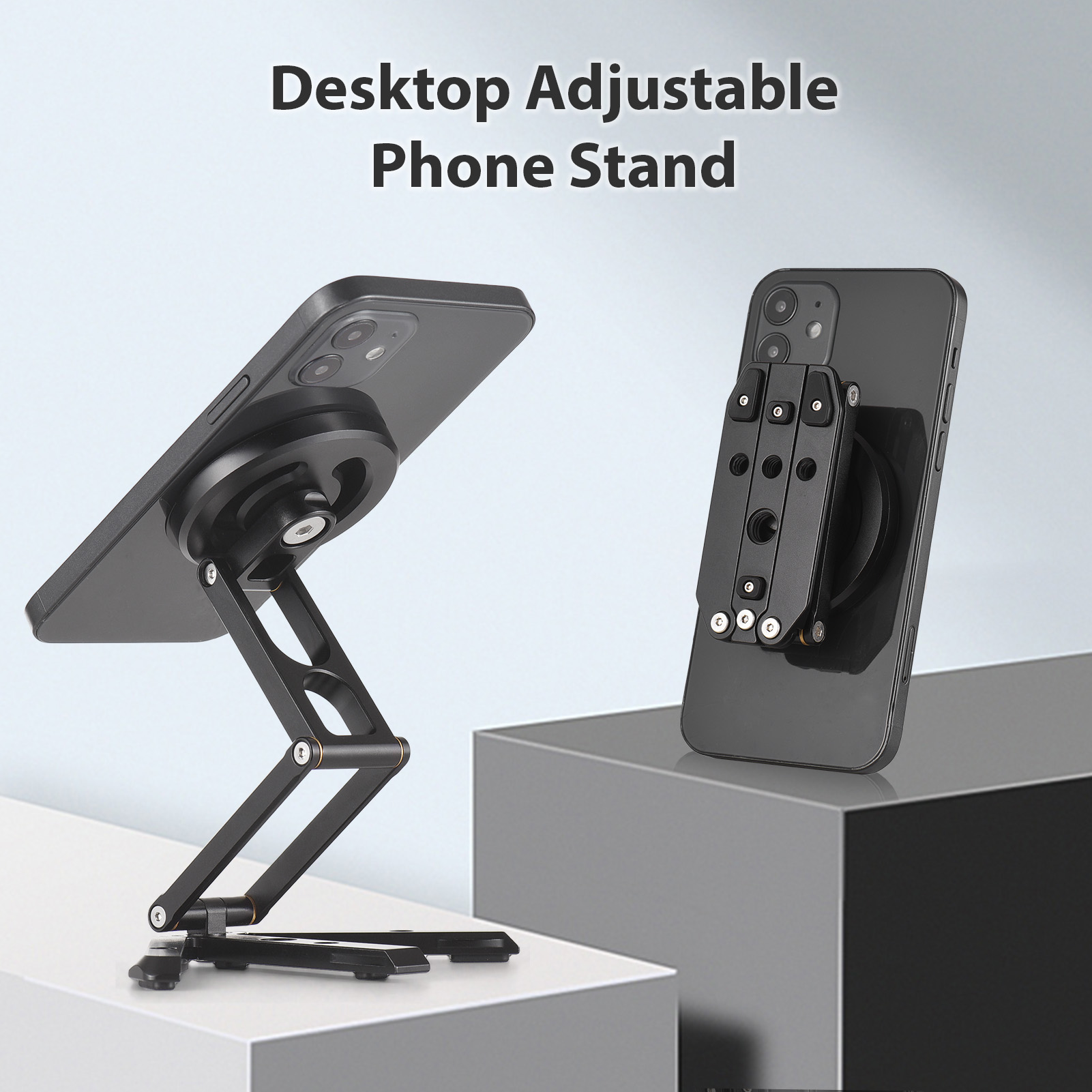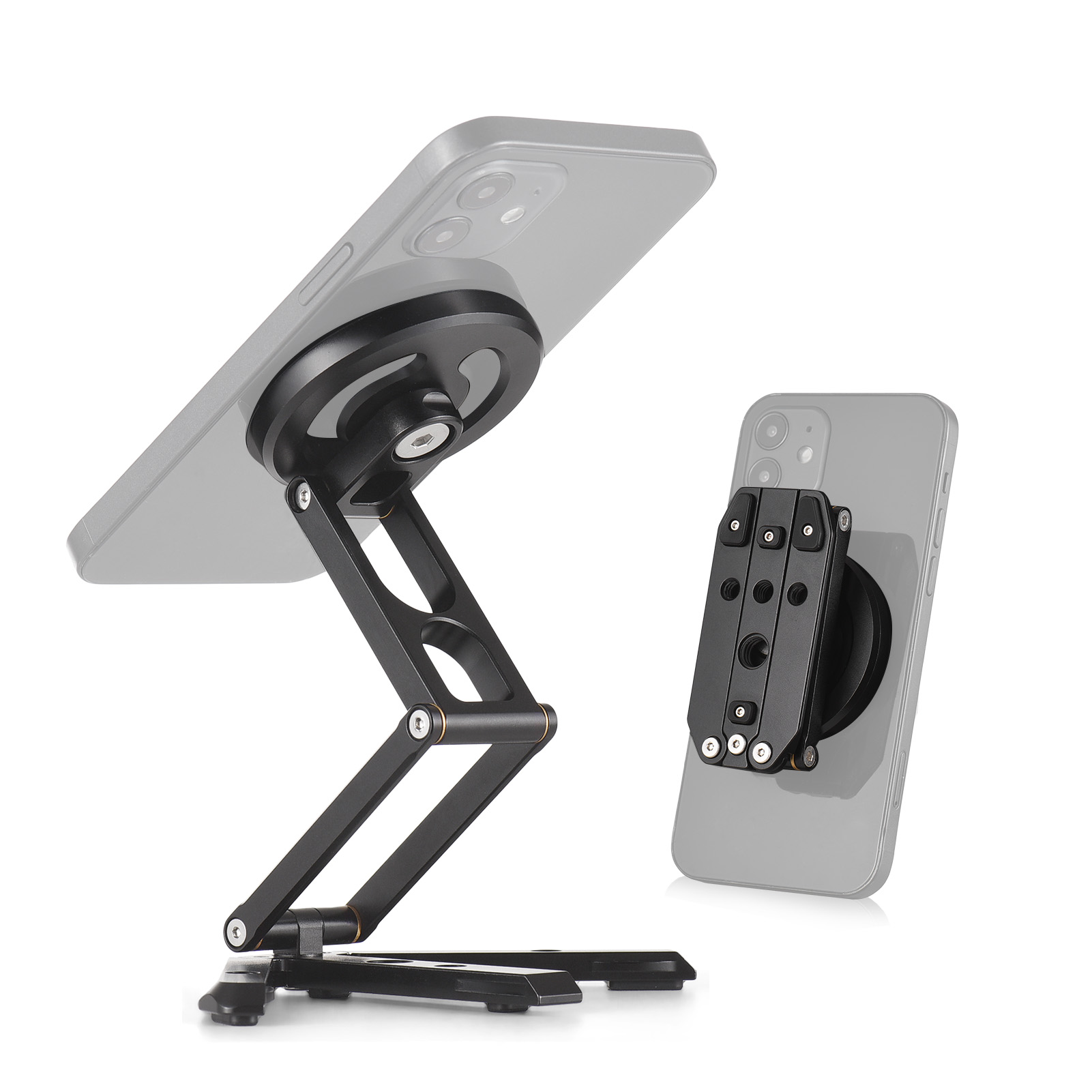 多功能可折叠桌面手机磁吸支架 铝合金材质 底部带1/4和3/8螺丝孔 阿卡口设计 配引磁环 适配iPhone 15/14/13/12等手机 YM D13673 G
