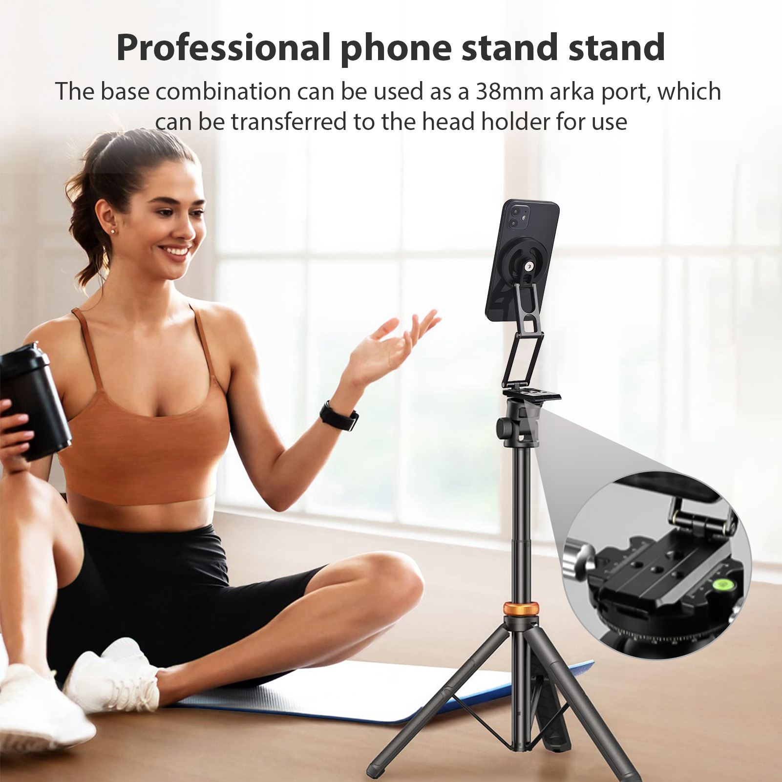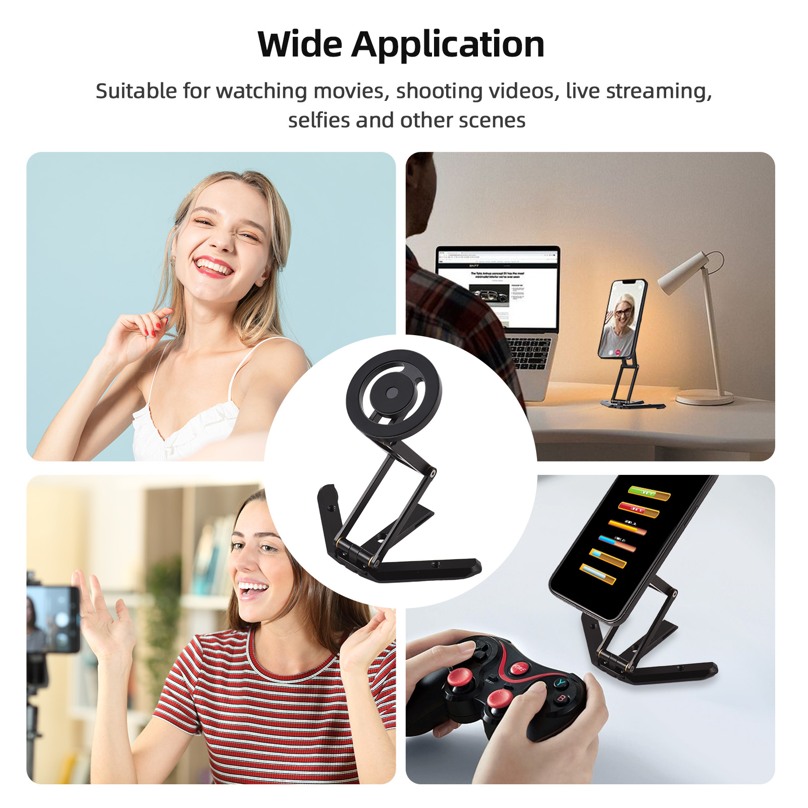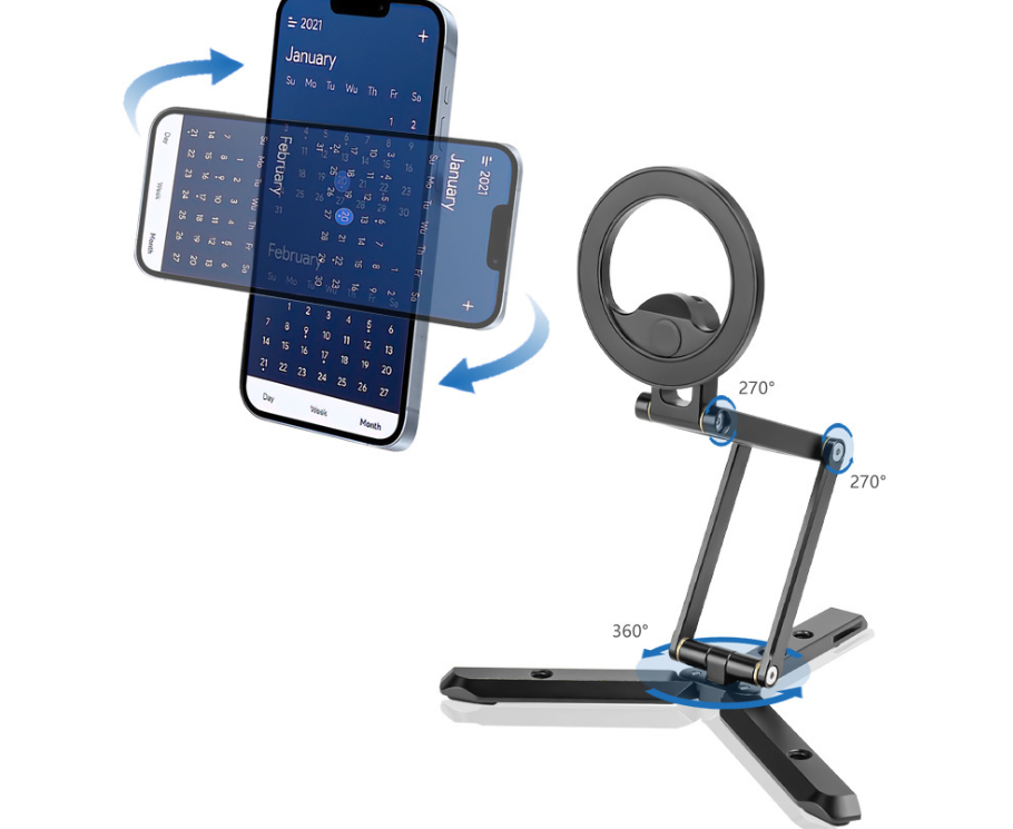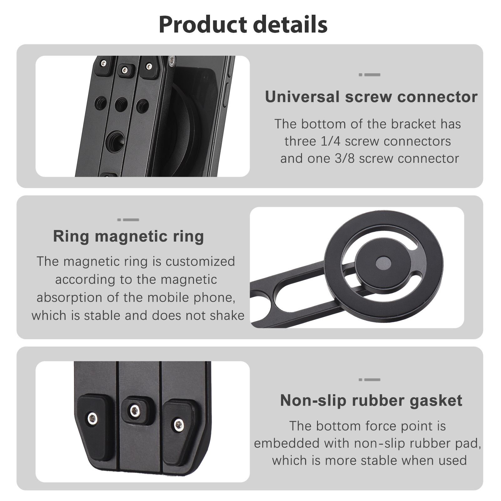 多功能可折叠桌面手机磁吸支架 铝合金材质 底部带1/4和3/8螺丝孔 阿卡口设计 配引磁环 适配iPhone 15/14/13/12等手机 YM D13673 G