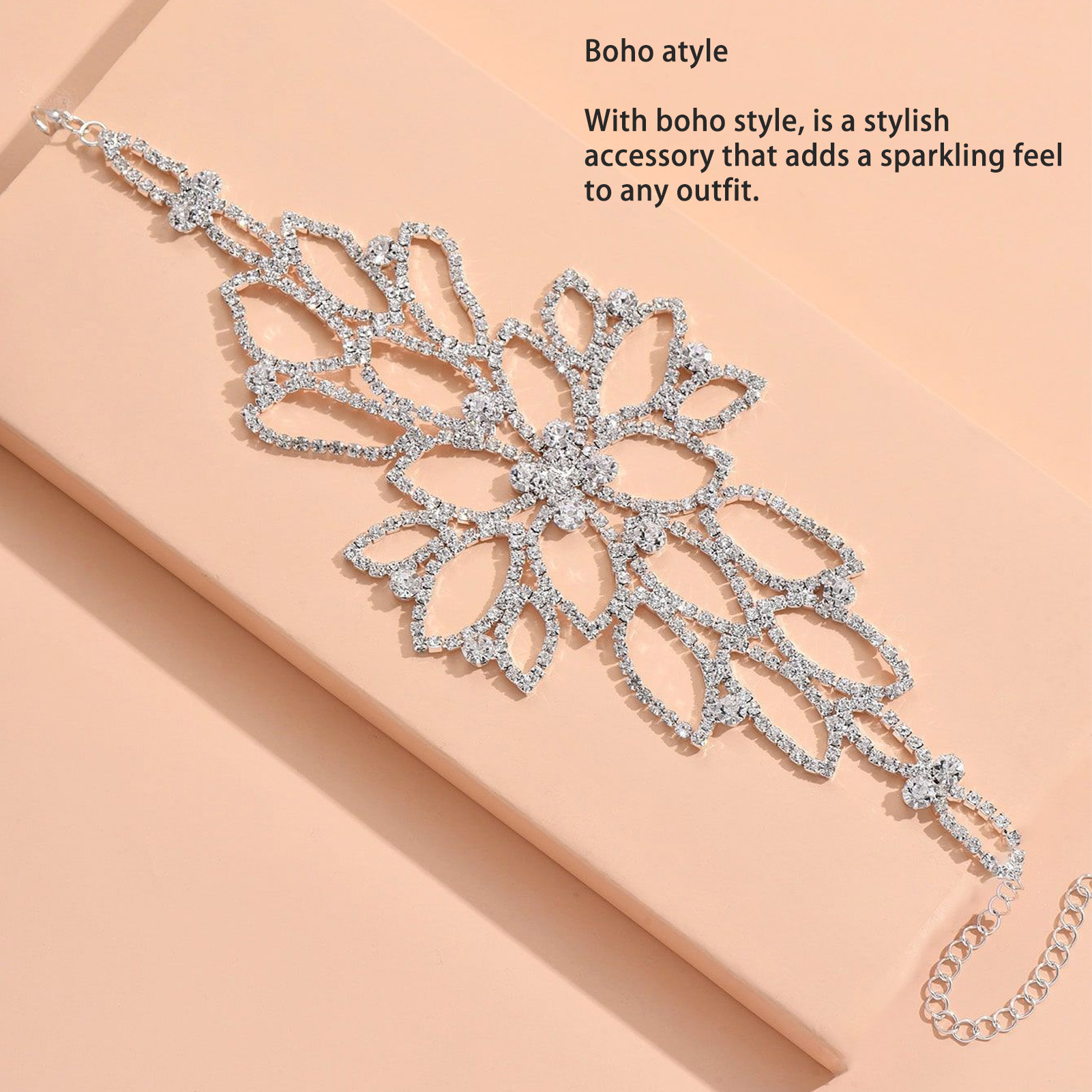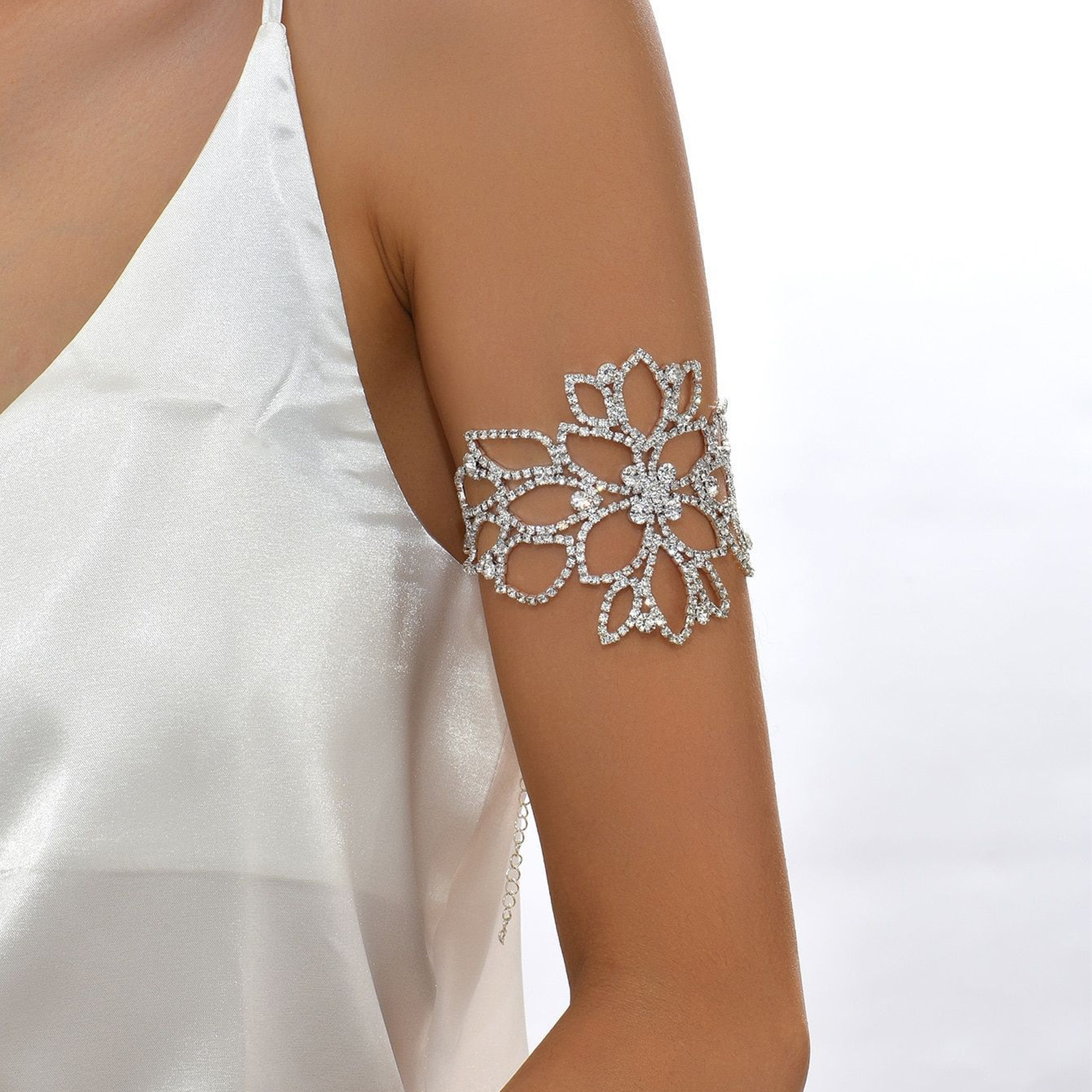 Flower Rhinestone Upper Arm Cuff Boho Style Rhinestones Arm Bracelet Jewelry for Bride Women Silver