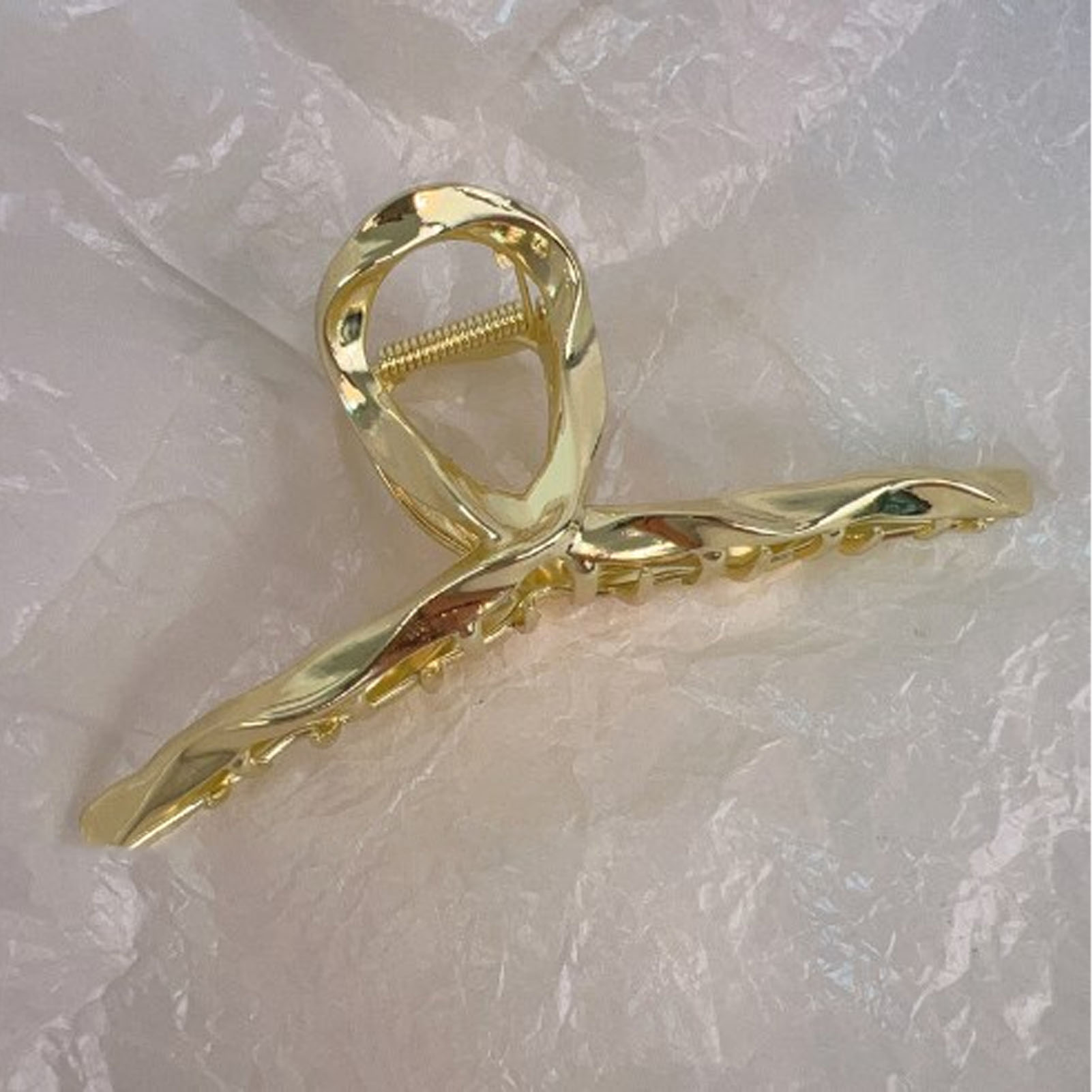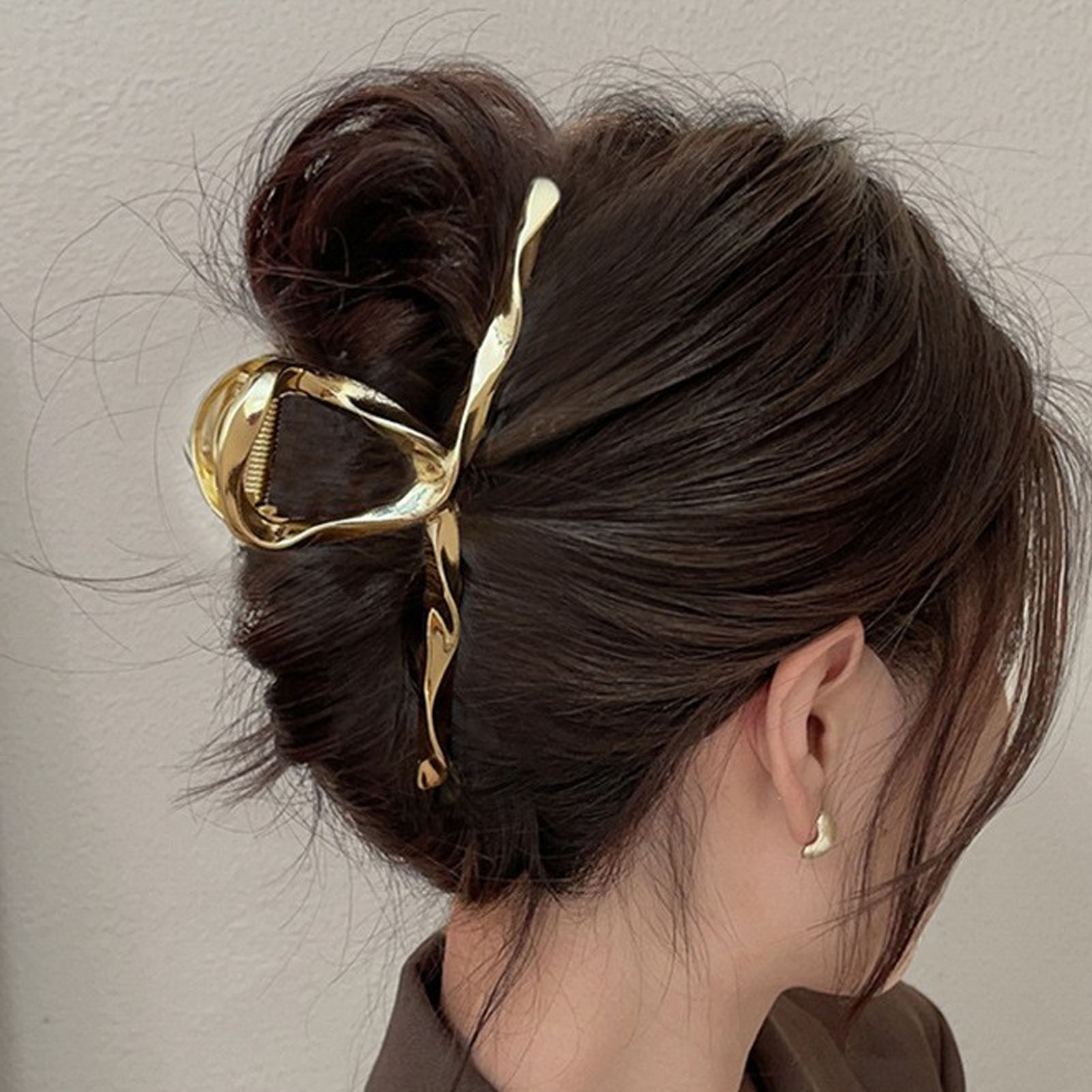 Whaline Hair Claw Clip Whaline Twisted Claw Clips Clamps Wave Large Alloy Hair Catch Pure Color Styling Accessories Gold