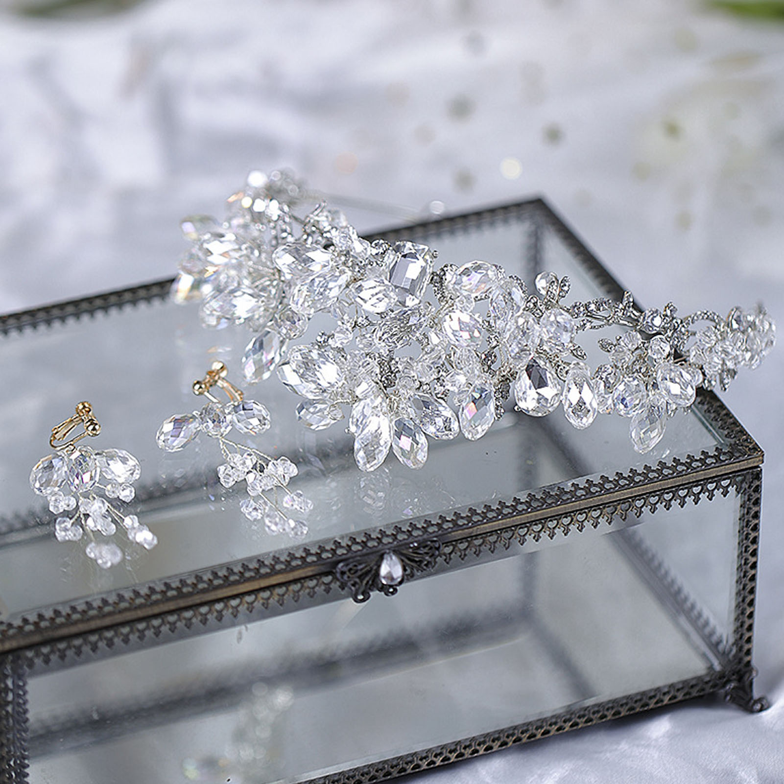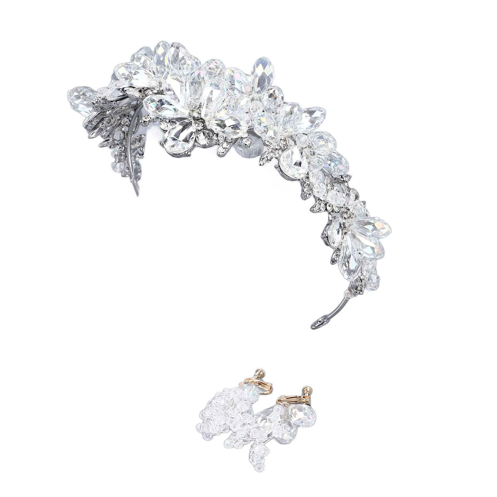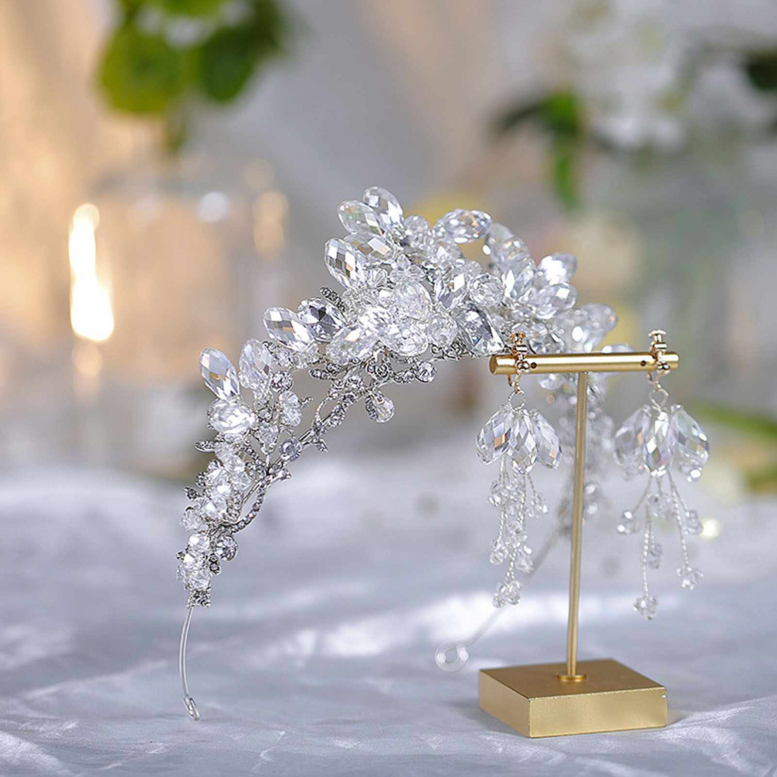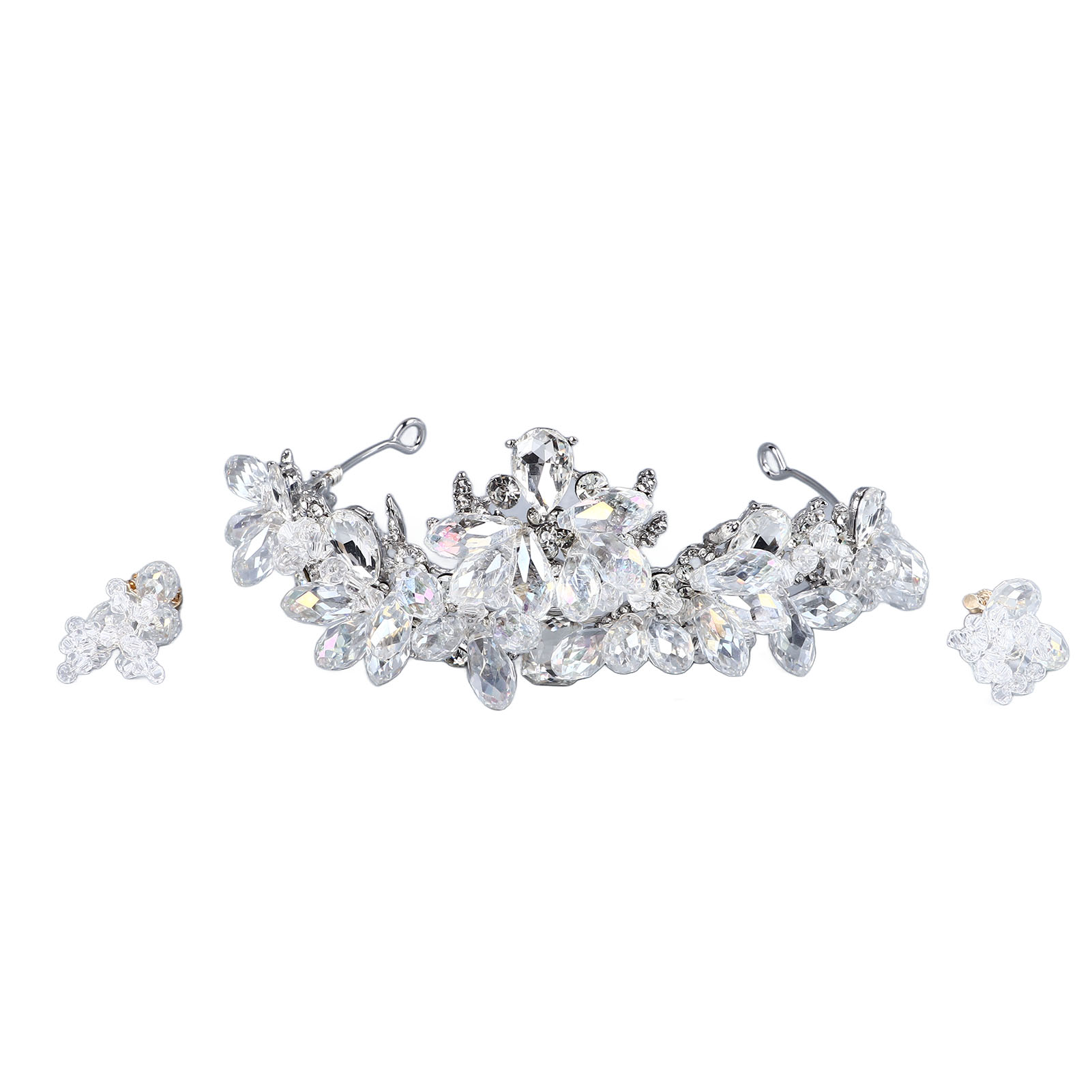Rhinestone Tiara Hard Alloy Strong Rustproof Elegant Sparkling Compact Princess Tiara with Dangle Earrings for Party