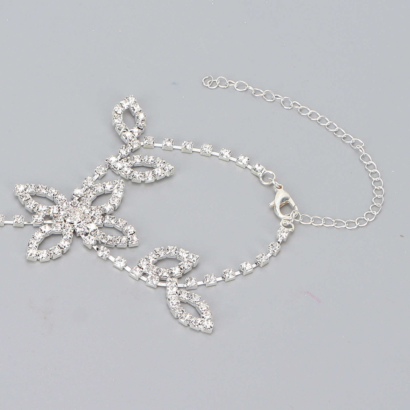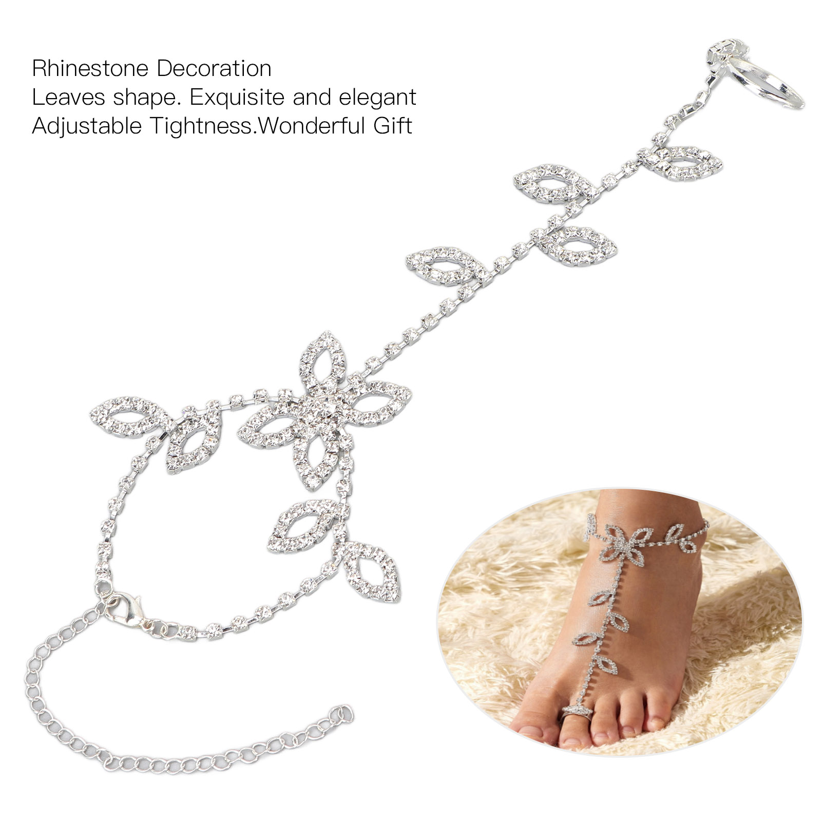 Rhinestone Foot Chain Women Stylish Leaves Shaped Pendant Anklet Jewelry Accessories for Beach Party