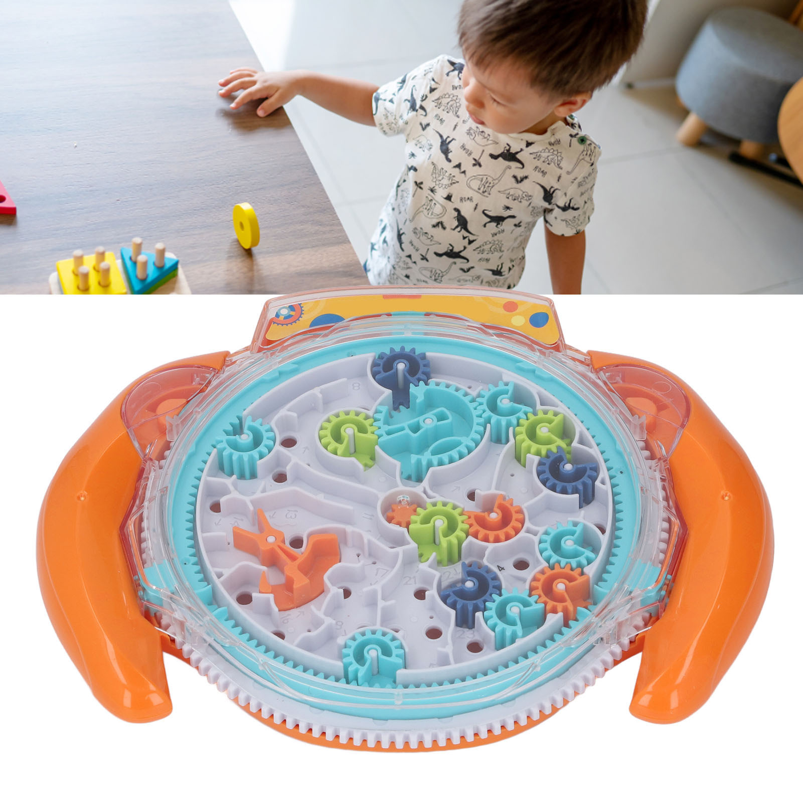 3D Maze Puzzle Gear Interactive Brain Teaser Parent Child Game Fine Motor Skills Marble Maze Ball Puzzle for Boys Girls Orange