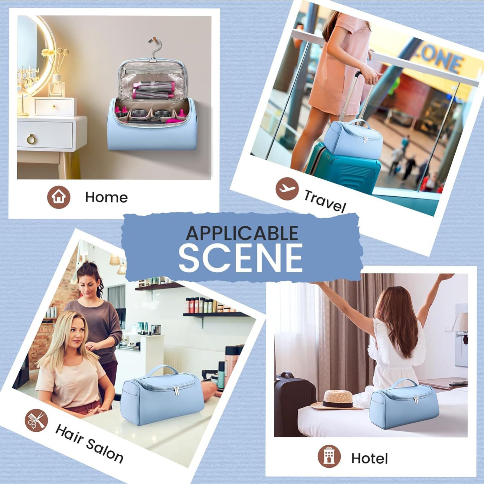 便携式旅行收纳袋 吹风机/卷发棒防水PU旅行收纳包 带隐藏式挂钩 天蓝色 YM Y29934 G