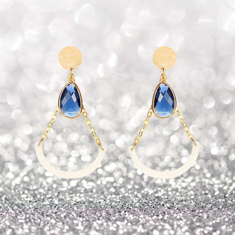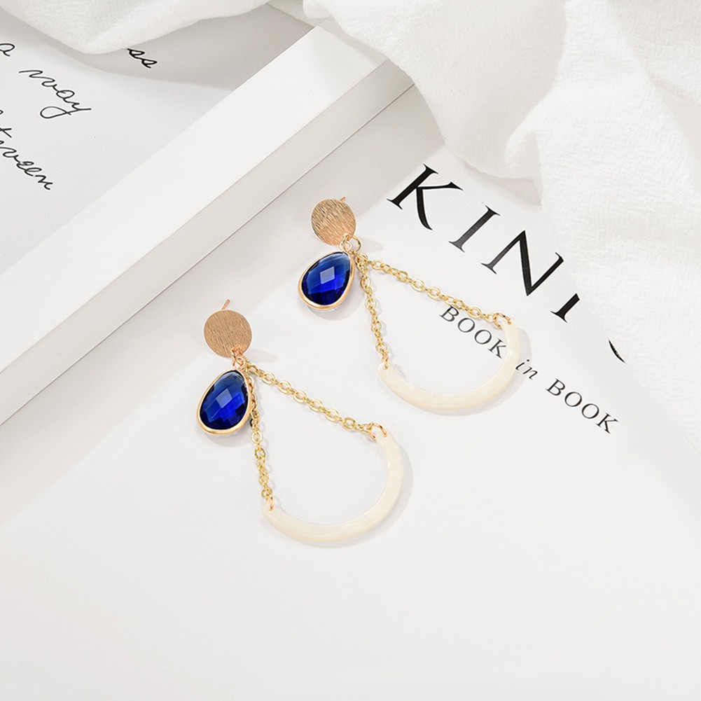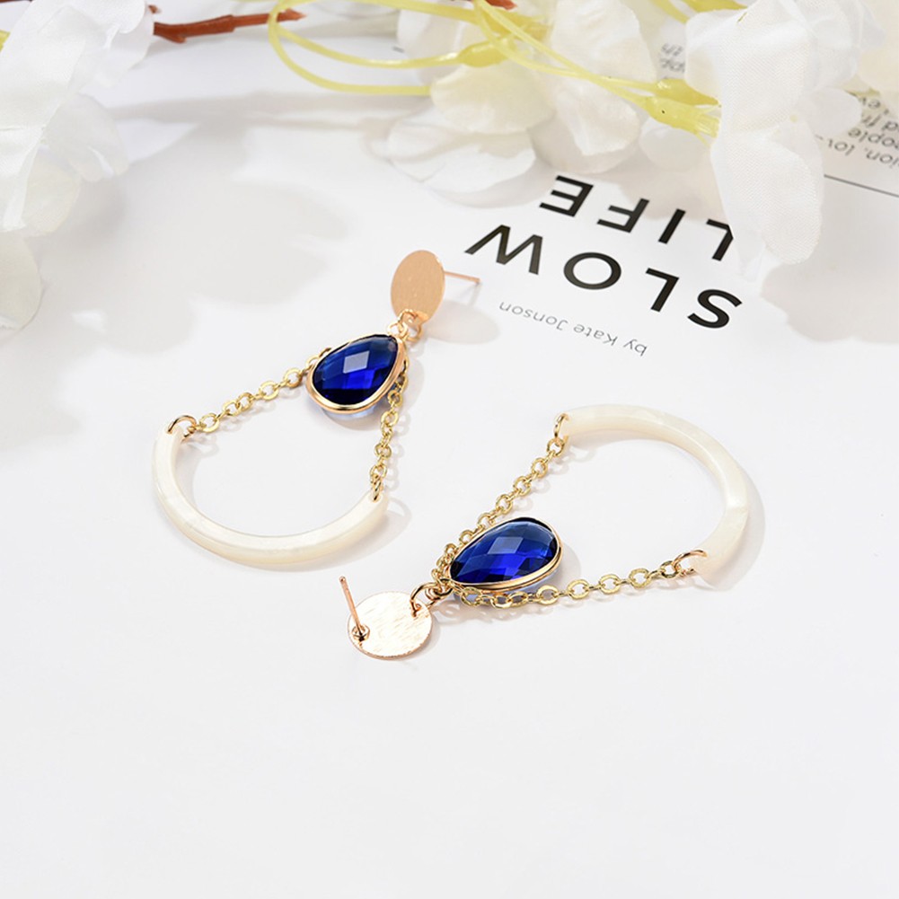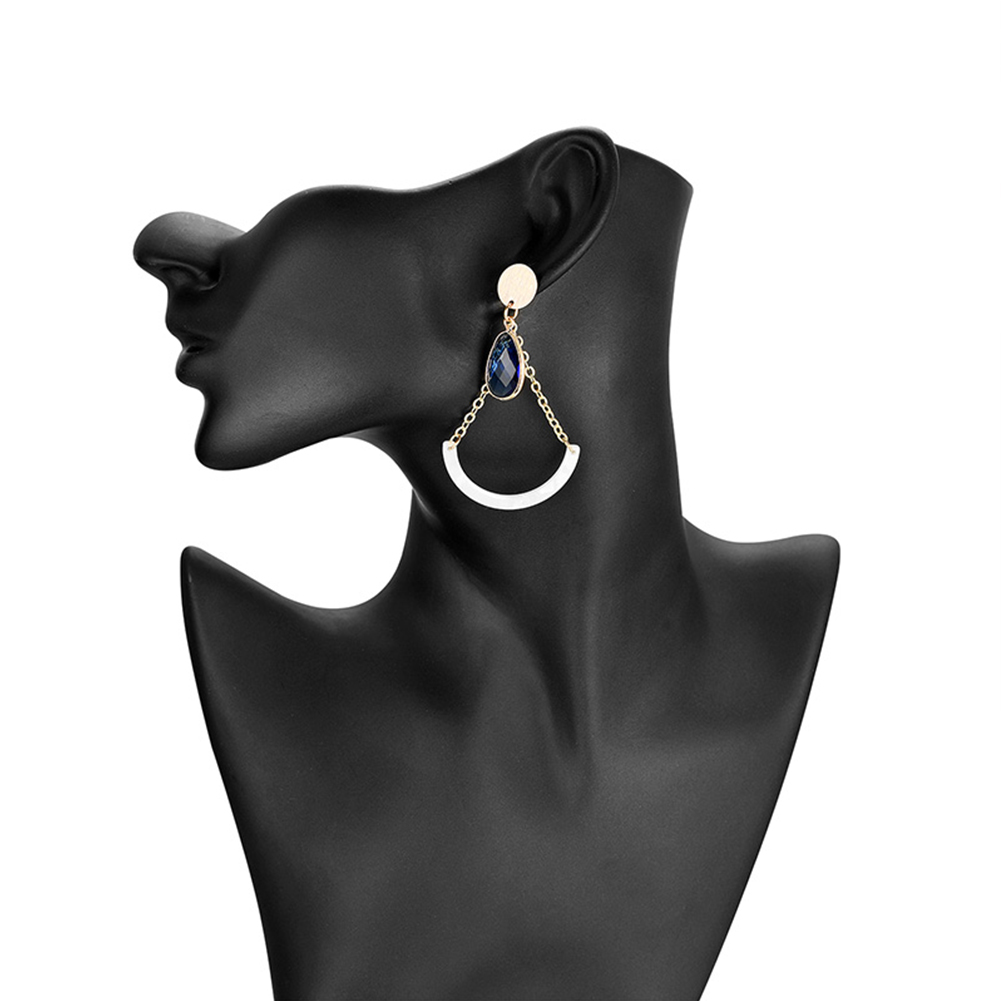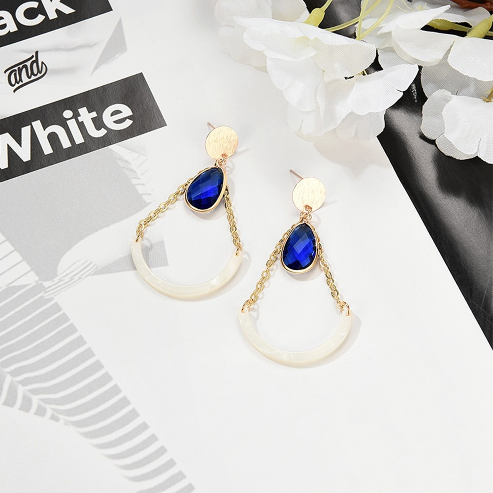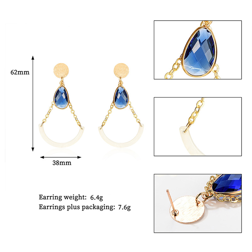 Women Lady Blue Zircon Round Ear Stud Geometric Dangles Earrings