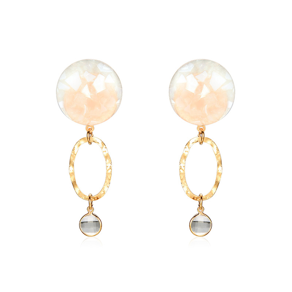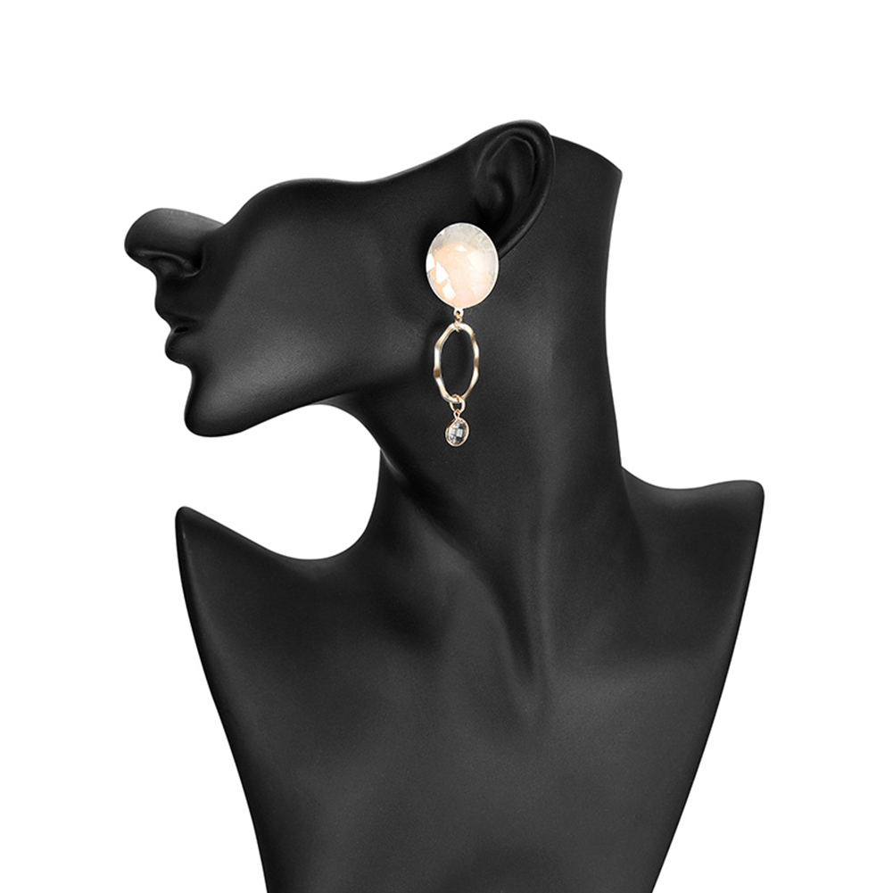 Women Lady Color Blocking Round Hoop Ring Ear Stud Acetic Acid Geometric Dangles Earrings