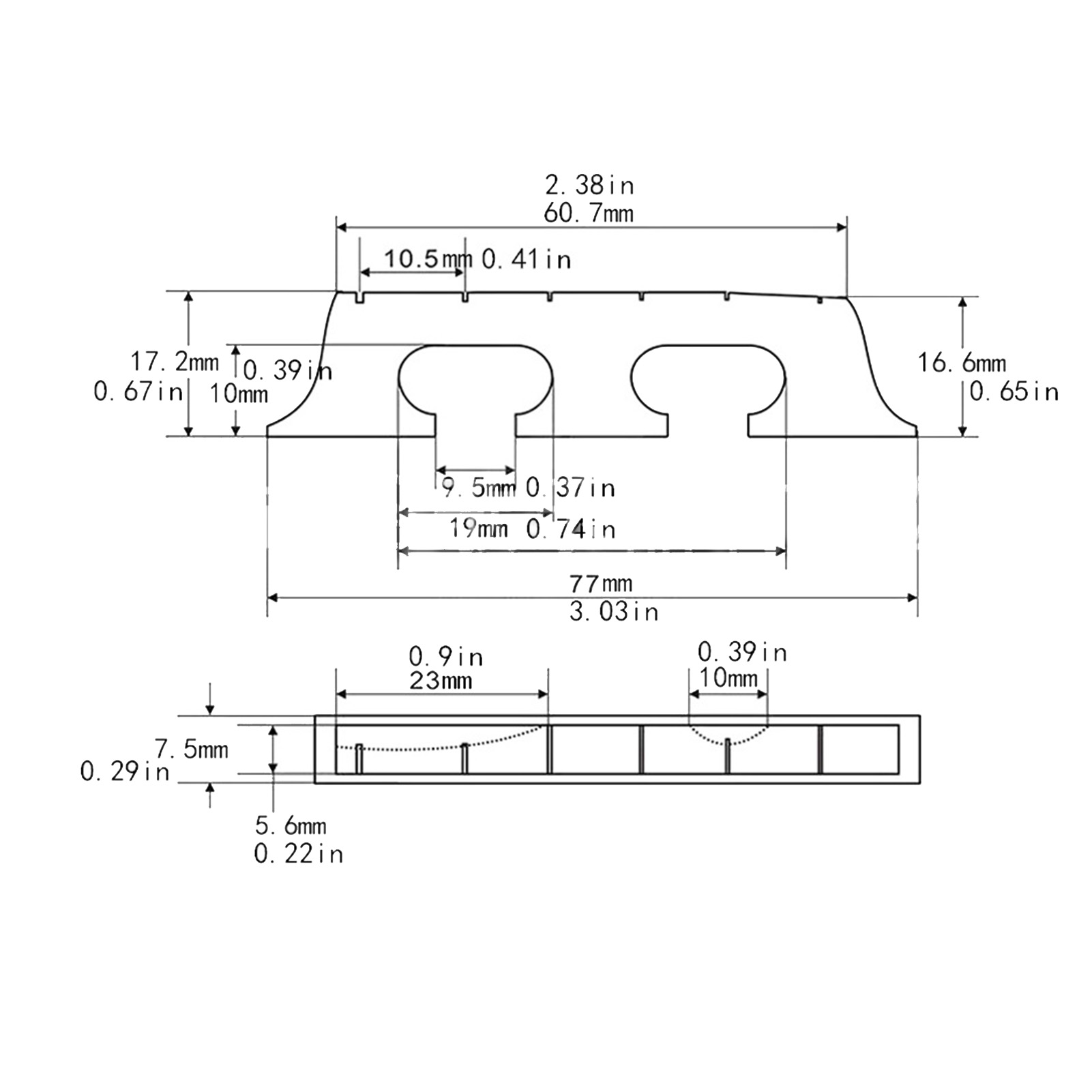 6弦枫木乌木标准班卓琴桥,木制班卓琴鞍,标准班卓琴桥 YM 1310240061111 K