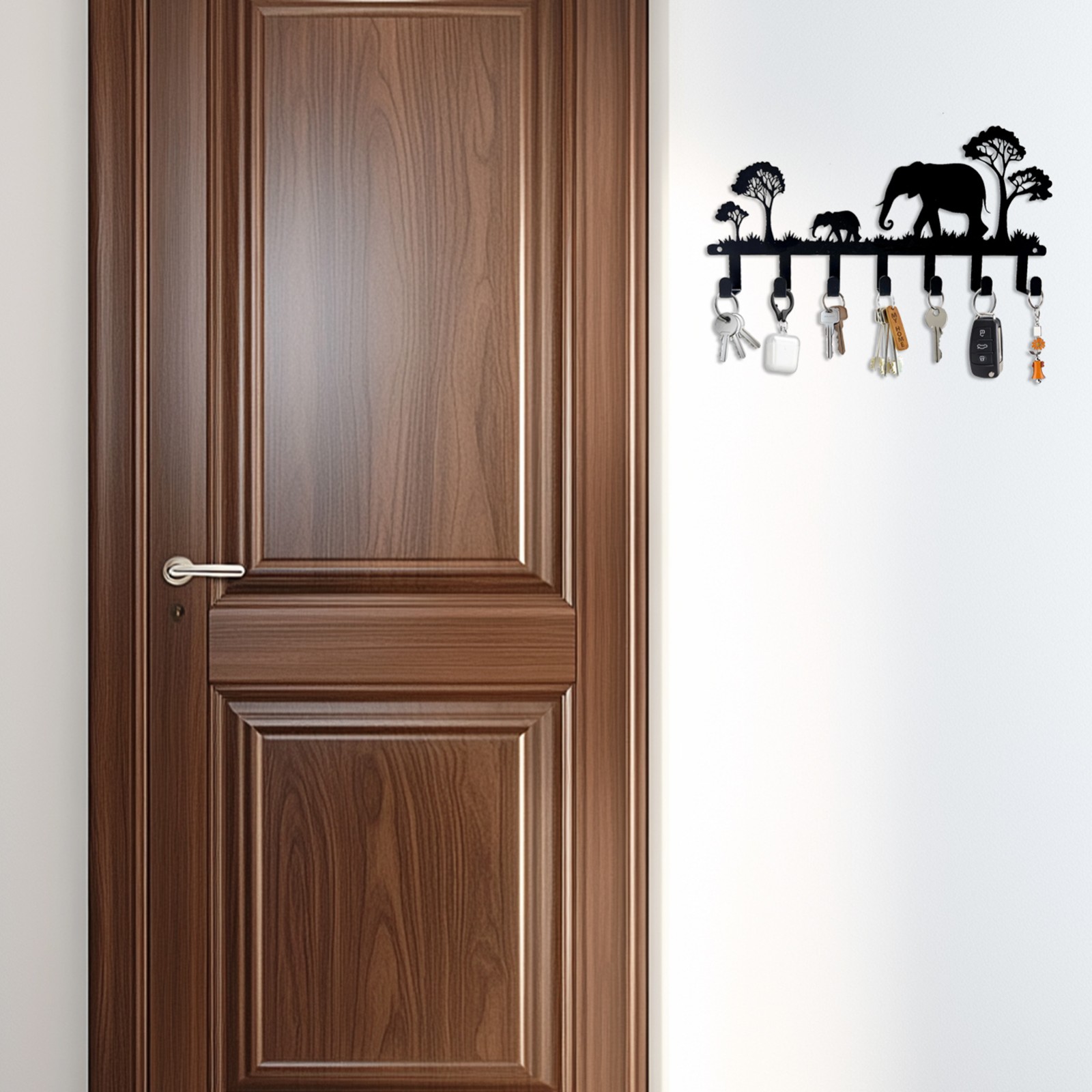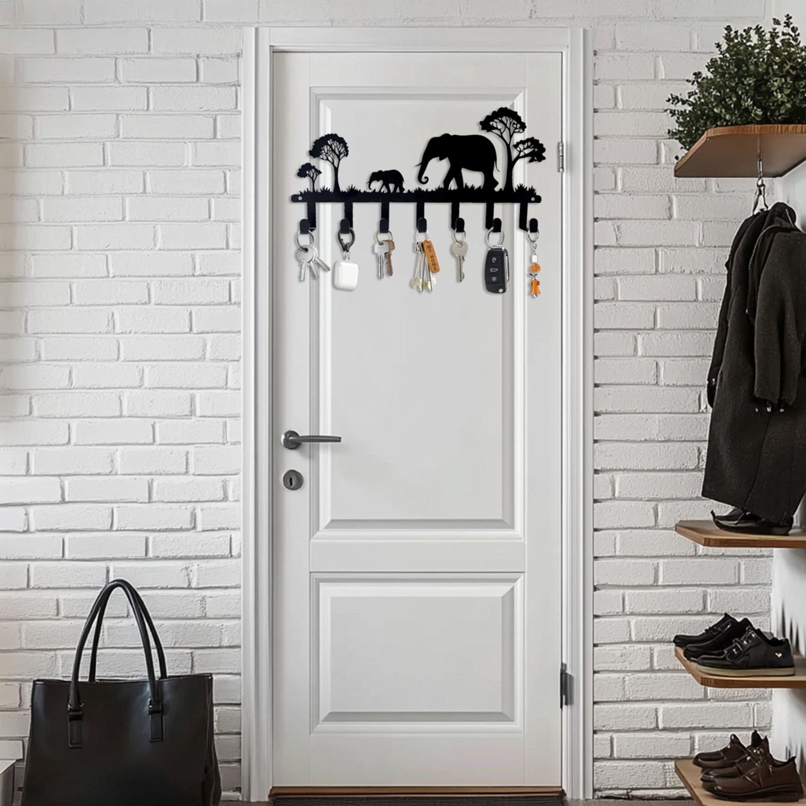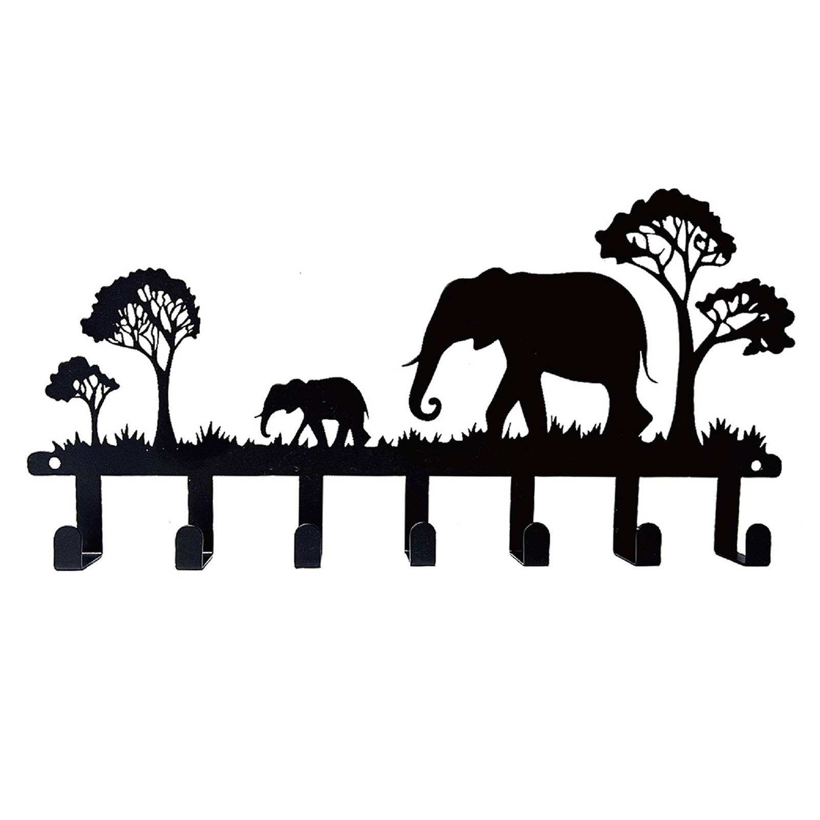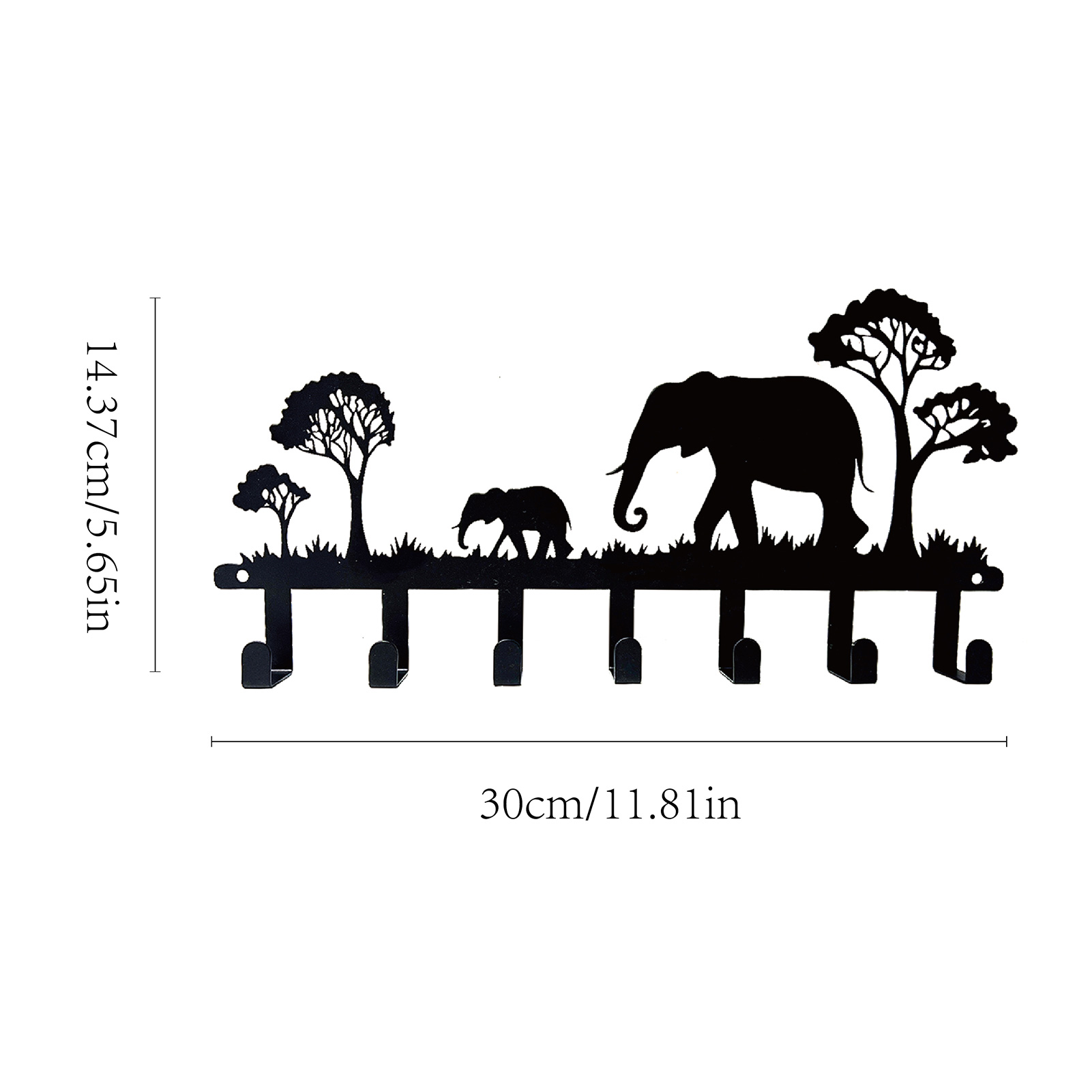 Wall-Mounted Iron Hook Rack with Two Elephant Design Decorative Key Holder and Towel Hanger for Home Entryway and Door Storage