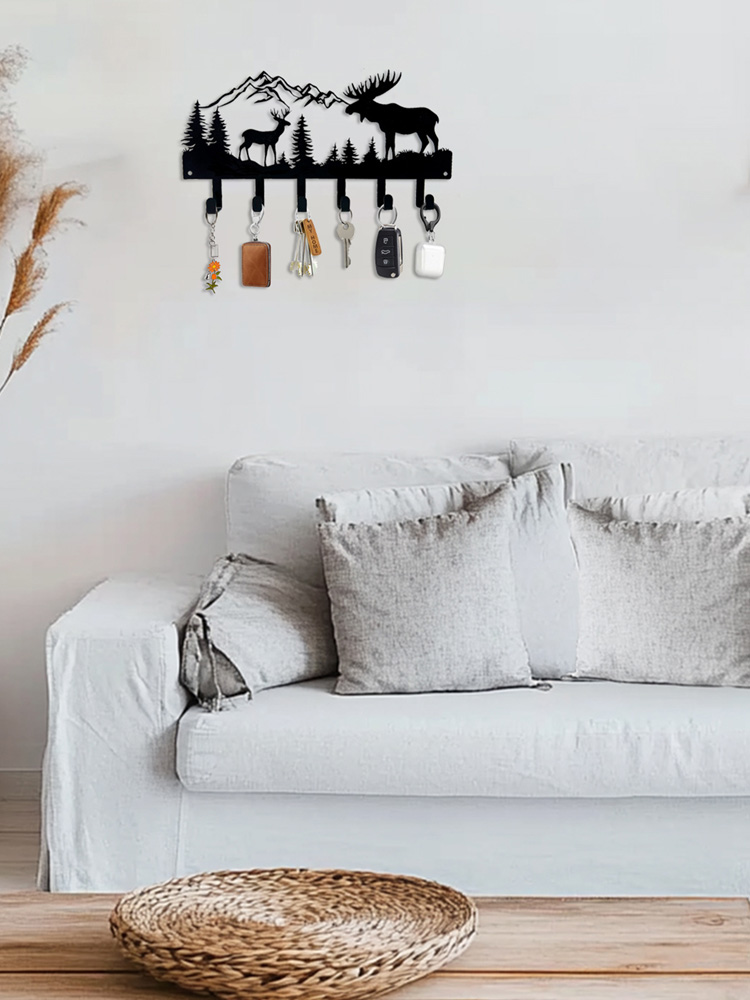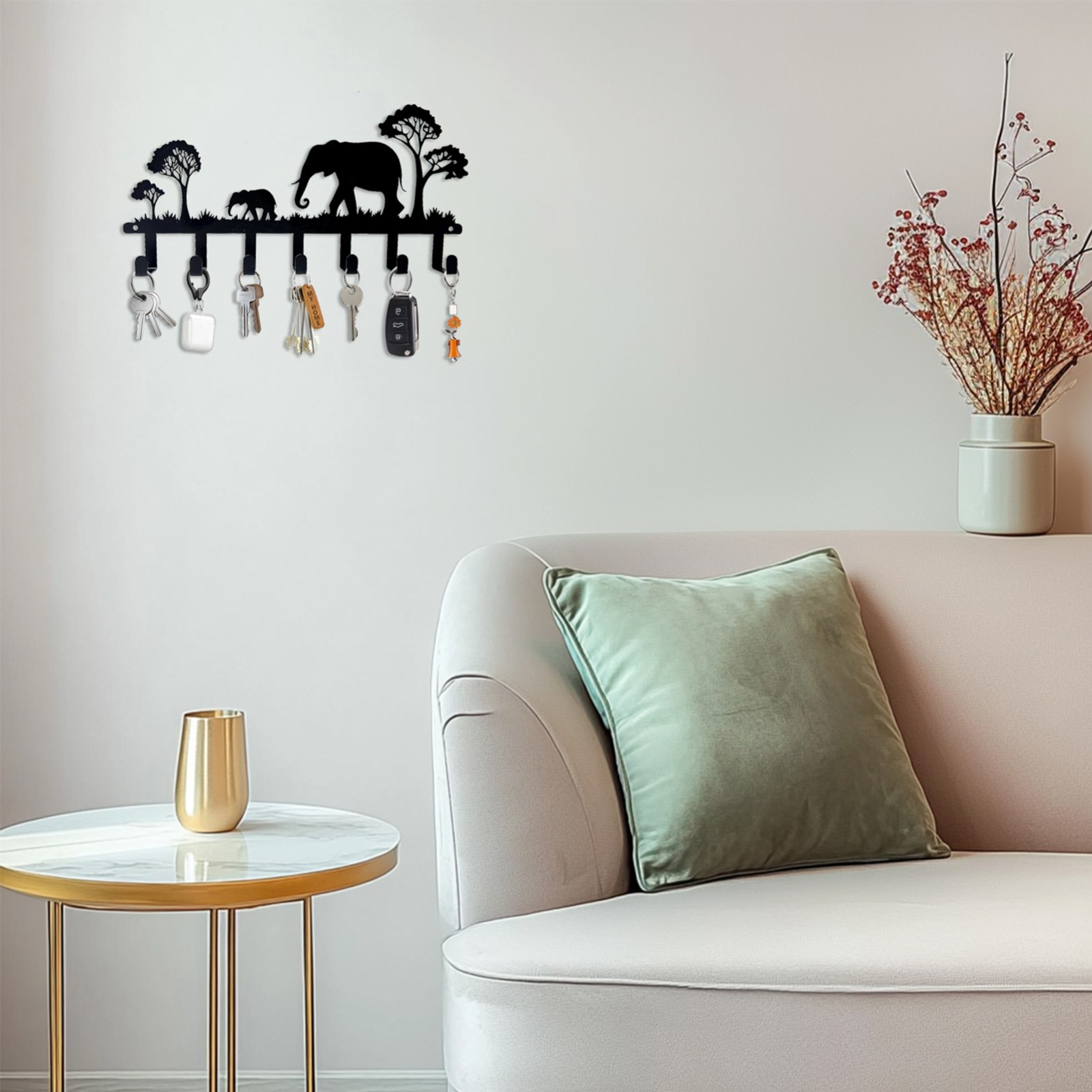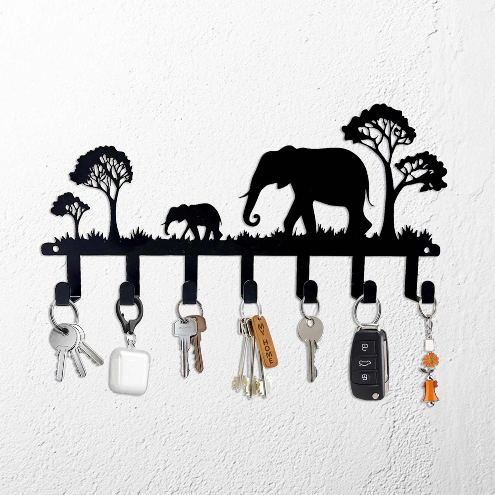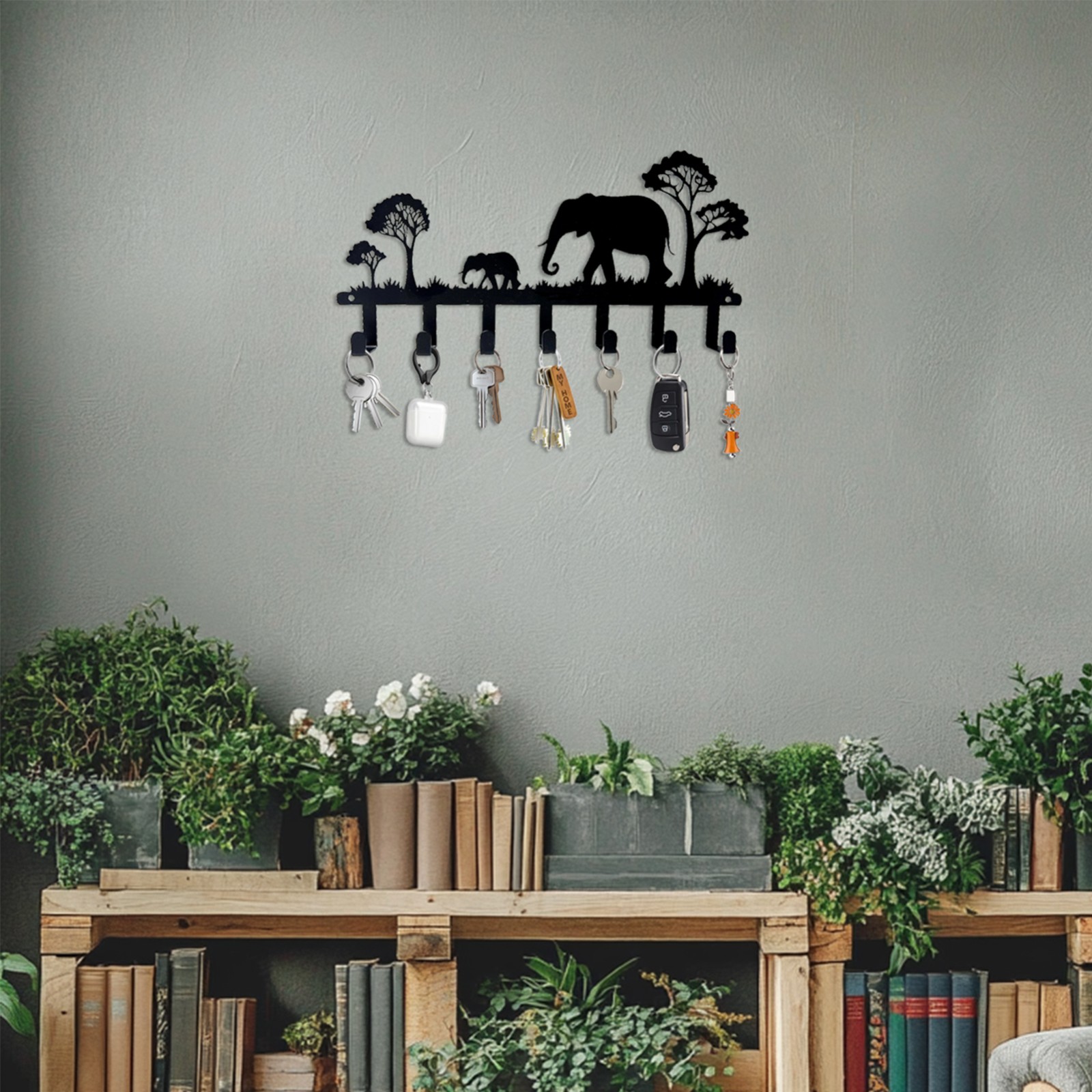 Wall-Mounted Iron Hook Rack with Two Elephant Design Decorative Key Holder and Towel Hanger for Home Entryway and Door Storage