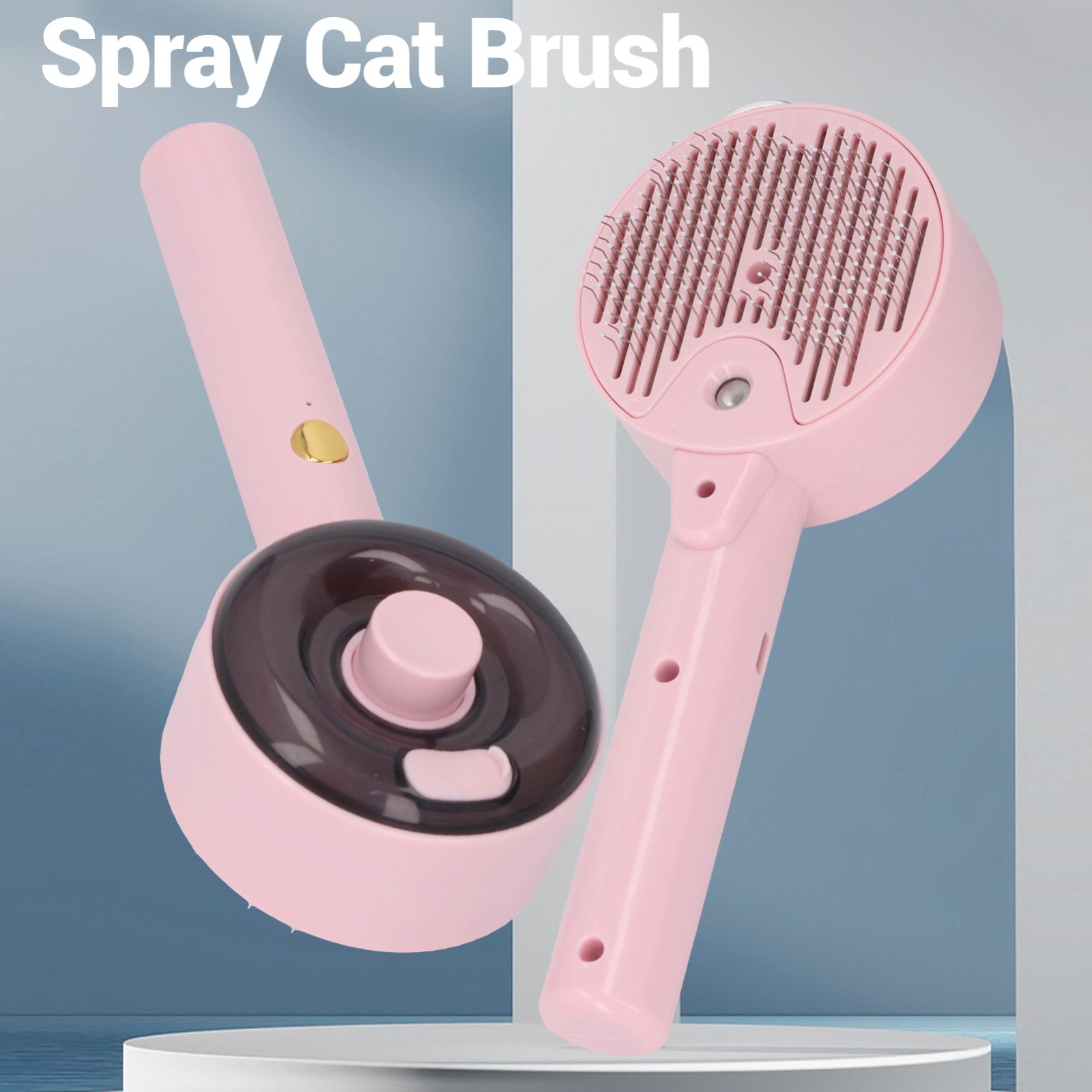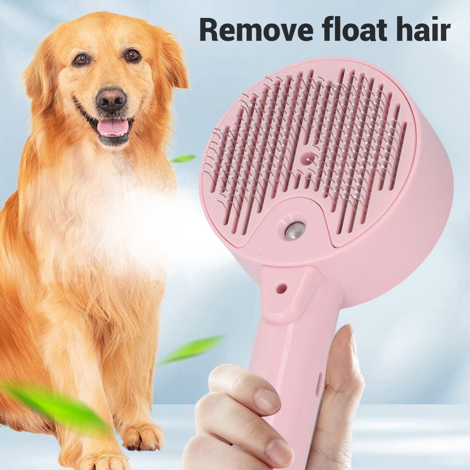 Spray Cat Brush for Shedding Soft Brush Teeth Skin Friendly Release Button Hair Removal Comb for Pets Pink