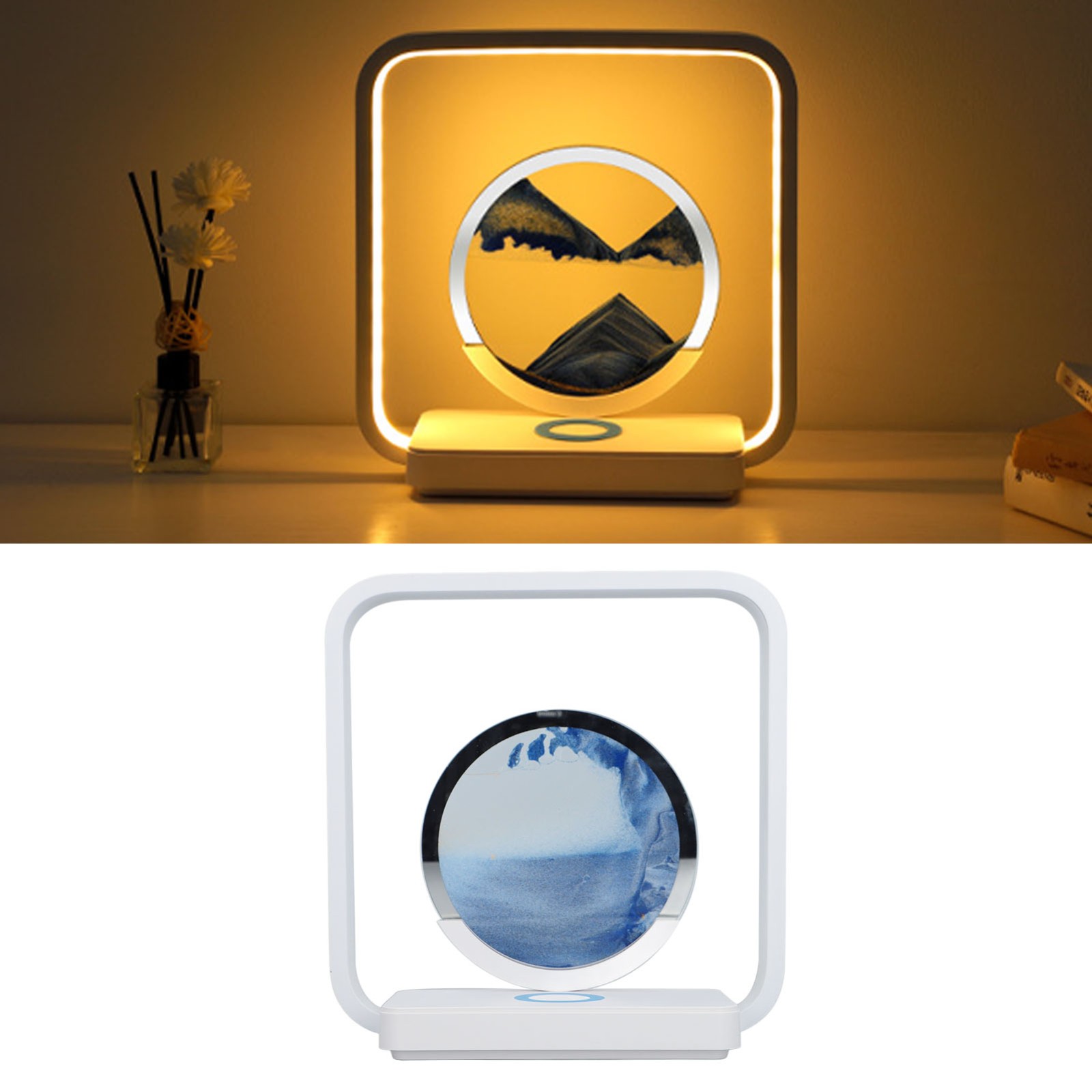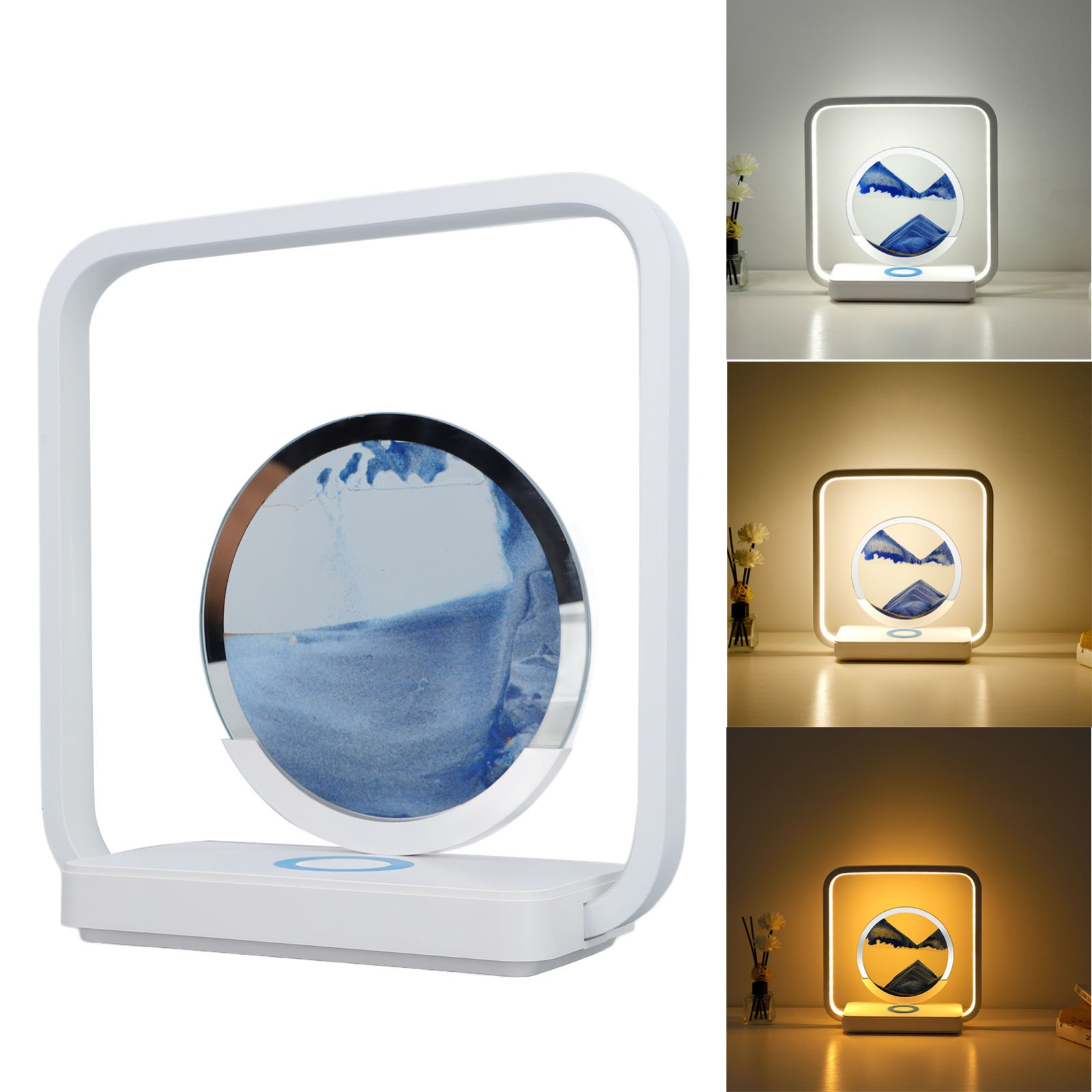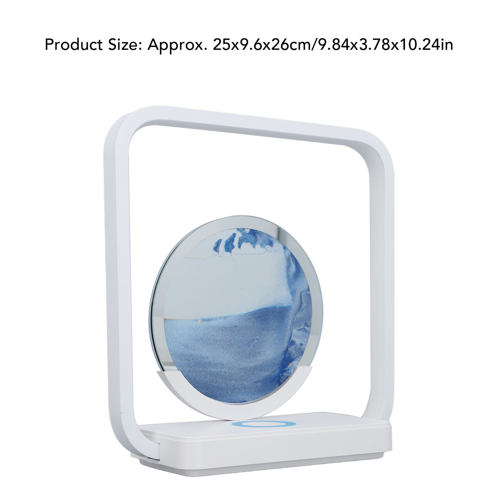 Moving Sand Art Desk Lamp Glass USB Stepless Dimmable 3 Color Temperature Dynamic Hourglass Sand Art Painting Night Light for Home Office Decor Blue