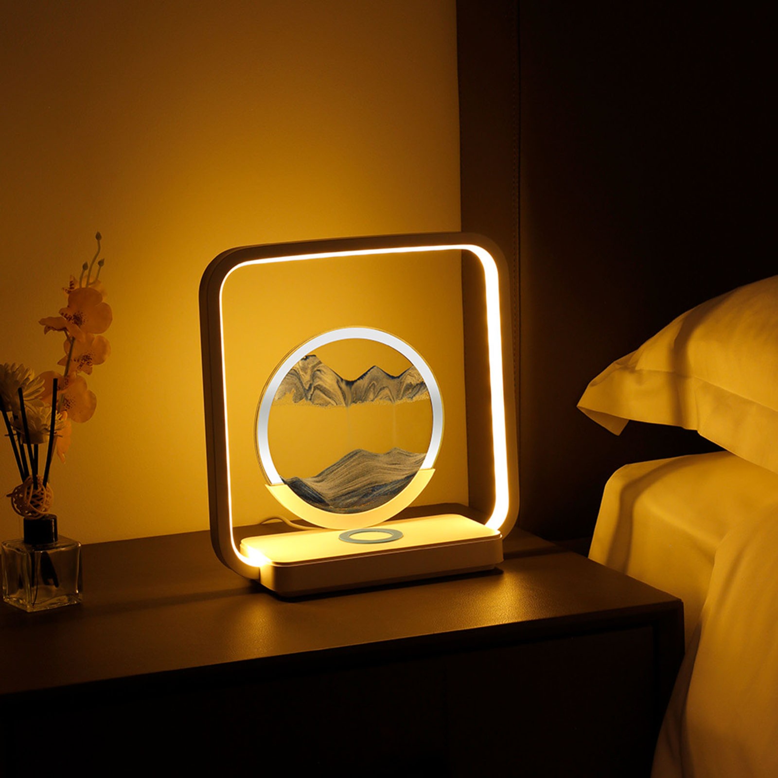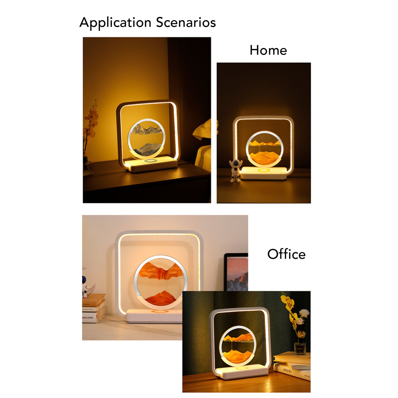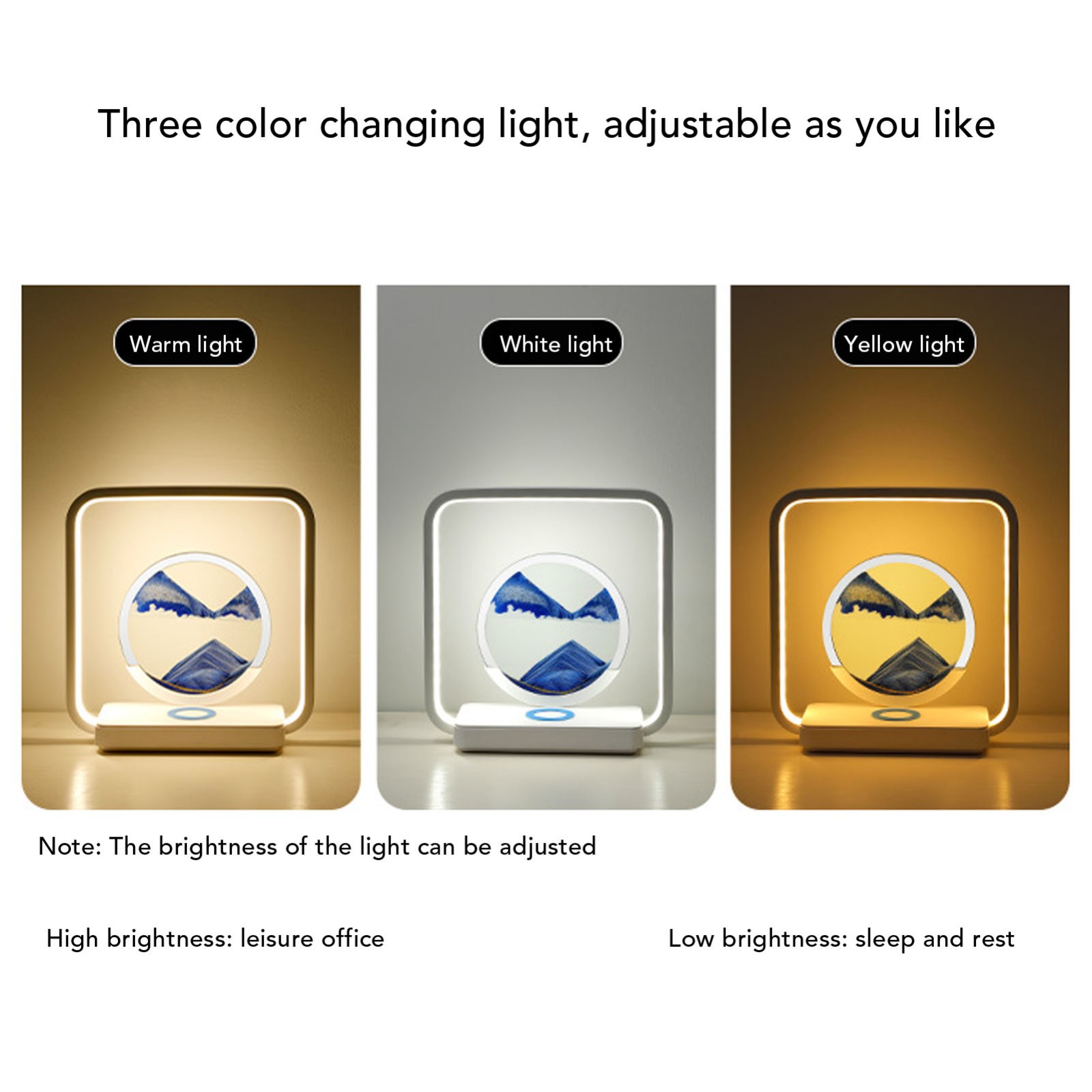 Moving Sand Art Desk Lamp Glass USB Stepless Dimmable 3 Color Temperature Dynamic Hourglass Sand Art Painting Night Light for Home Office Decor Blue