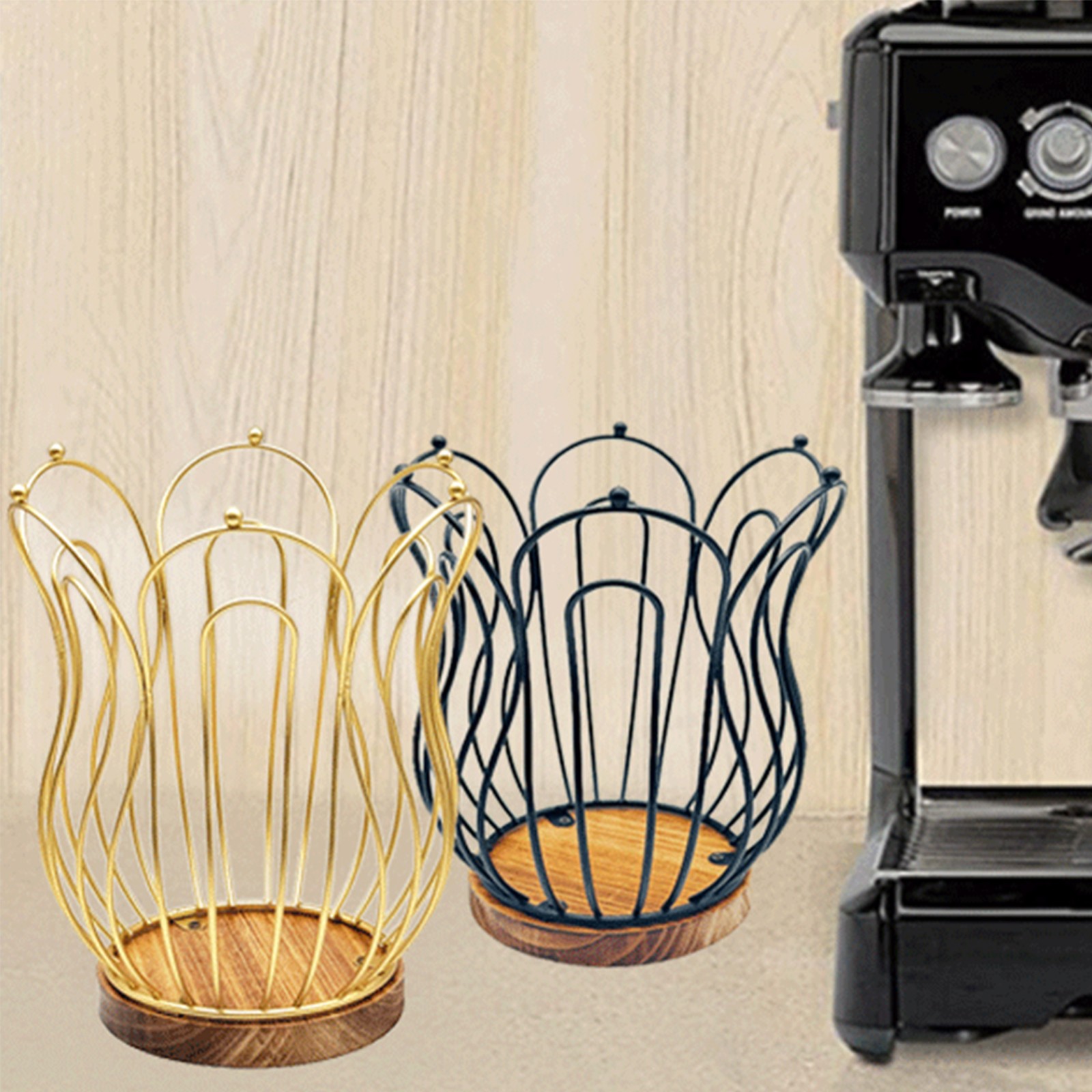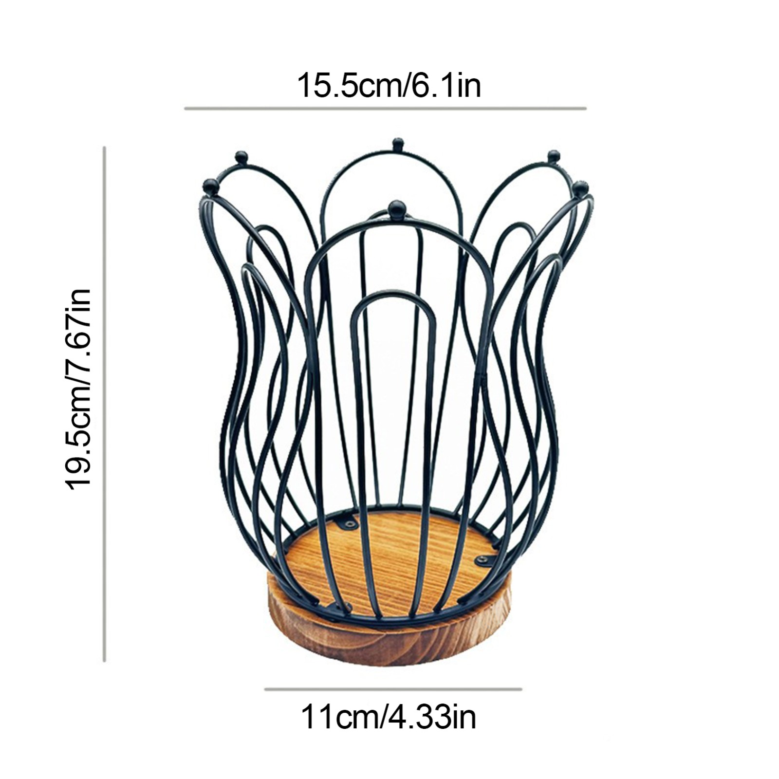 Tall Black Flower Bag Style Metal and Wood Storage Tray for Nuts and Coffee Capsules Creative Decorative Organizer for Home and Party Use