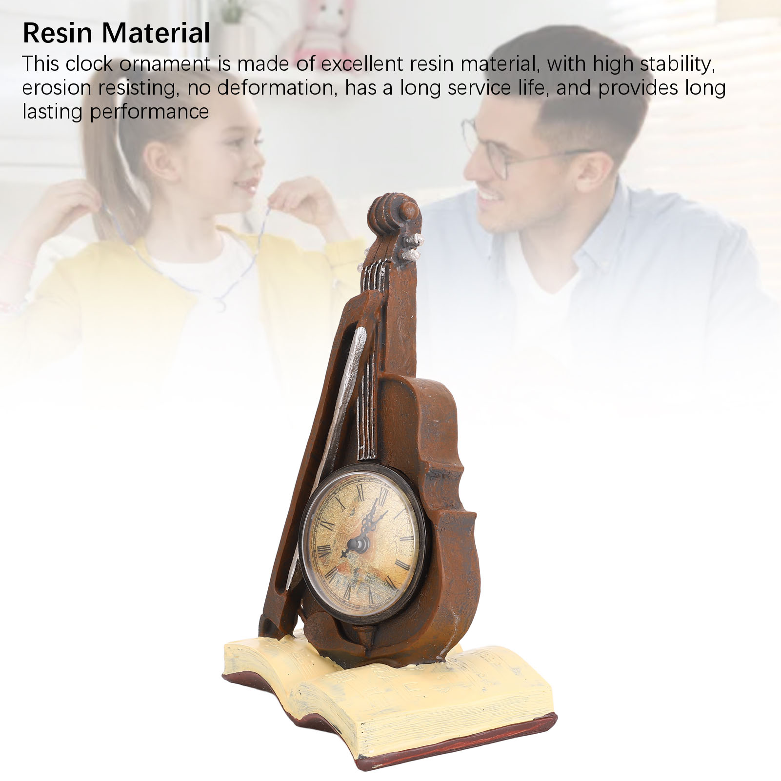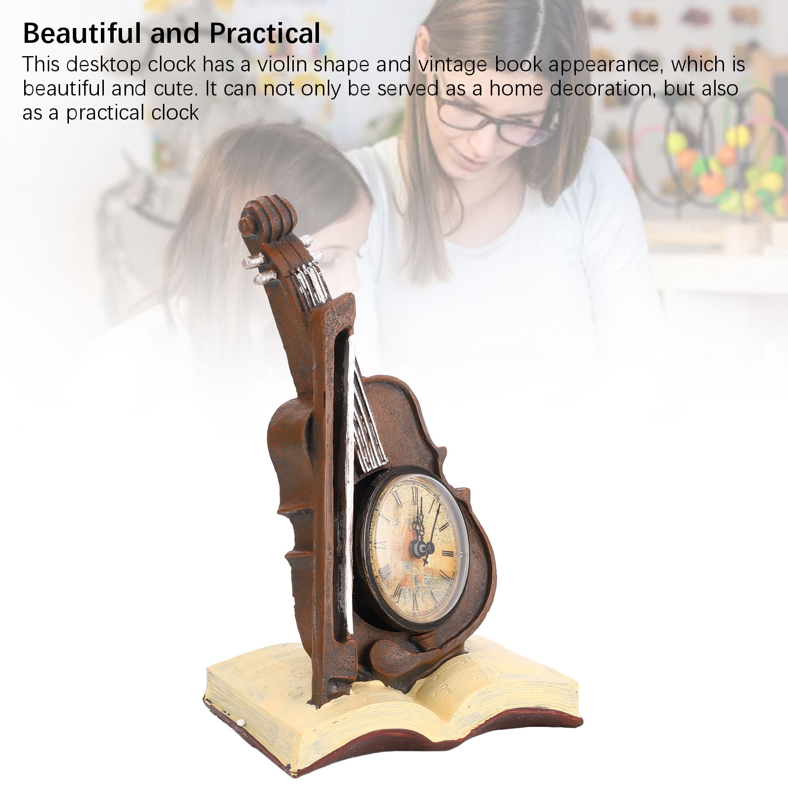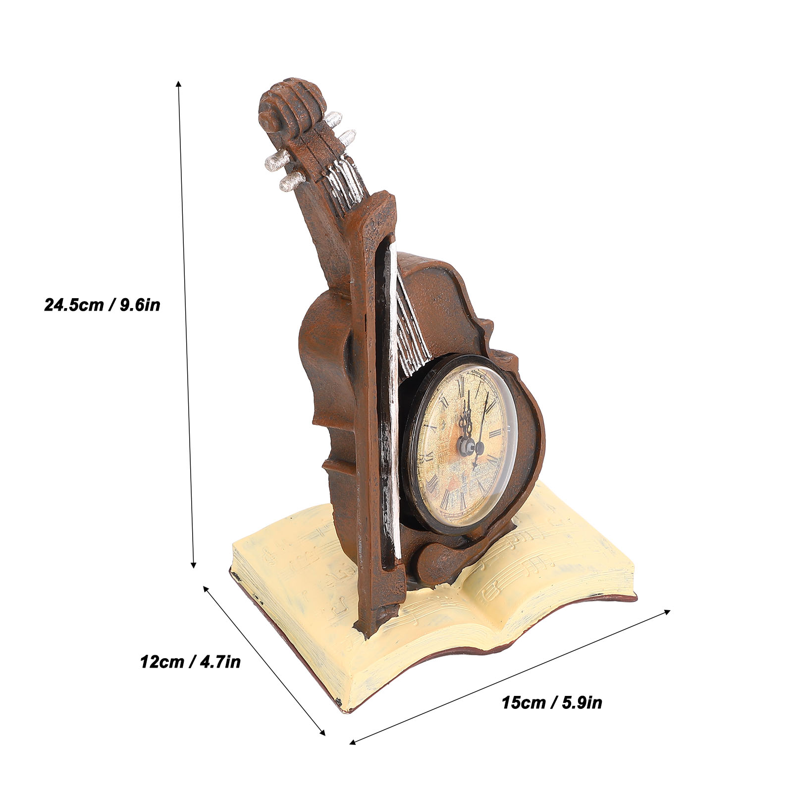 Retro Table Clock Book and Violin Shape Vintage Clock Resin Art Ornament for Home Living Room Office Coffee Shop
