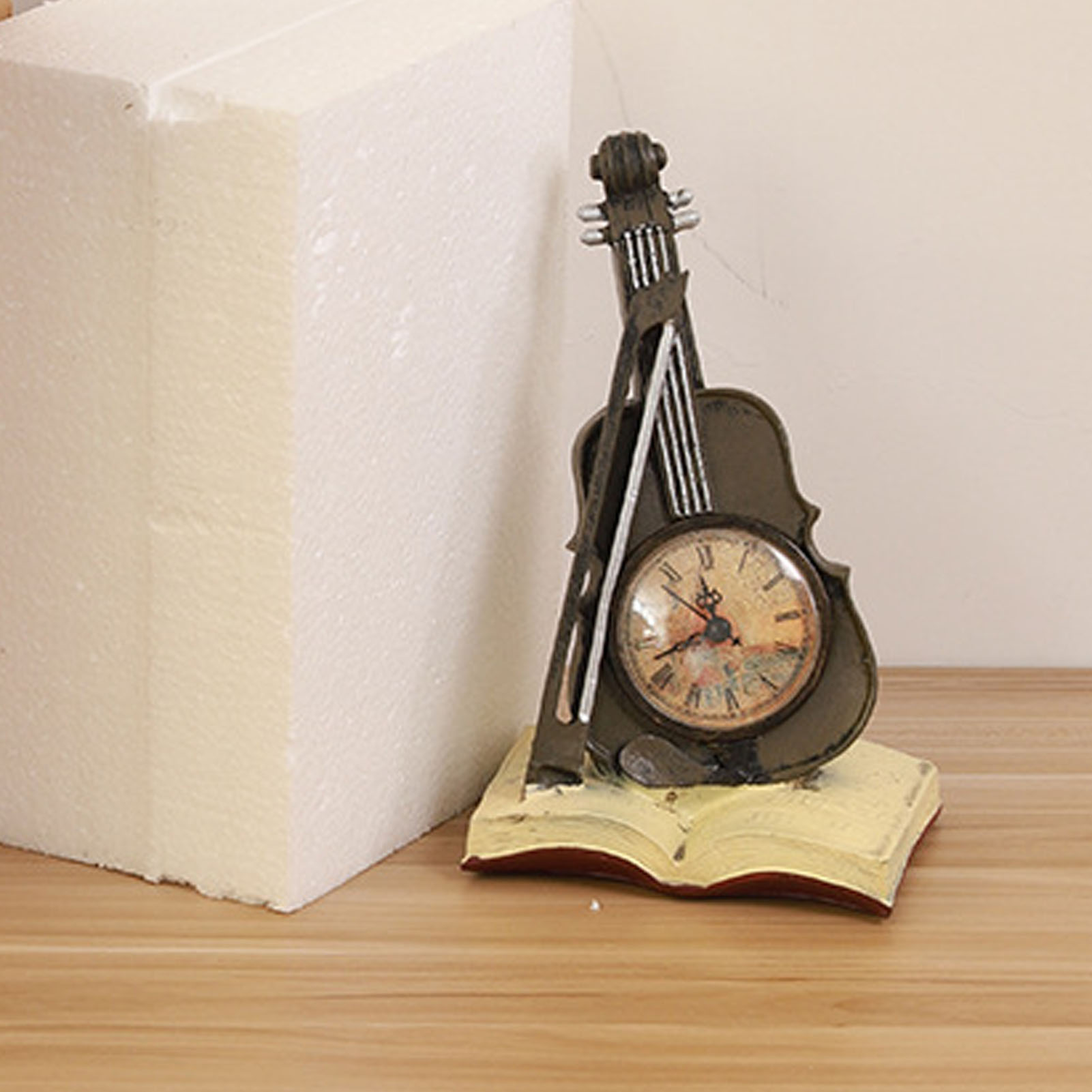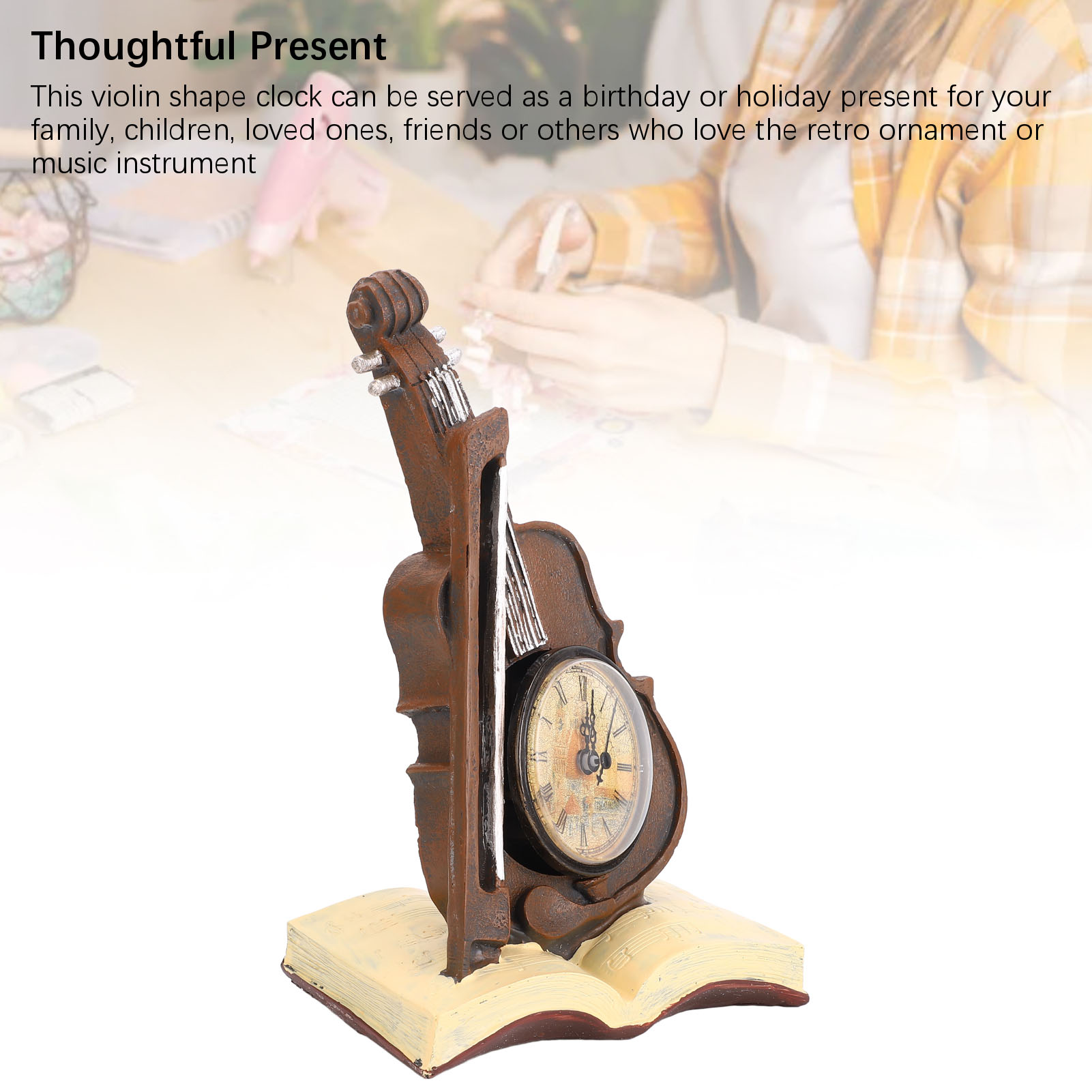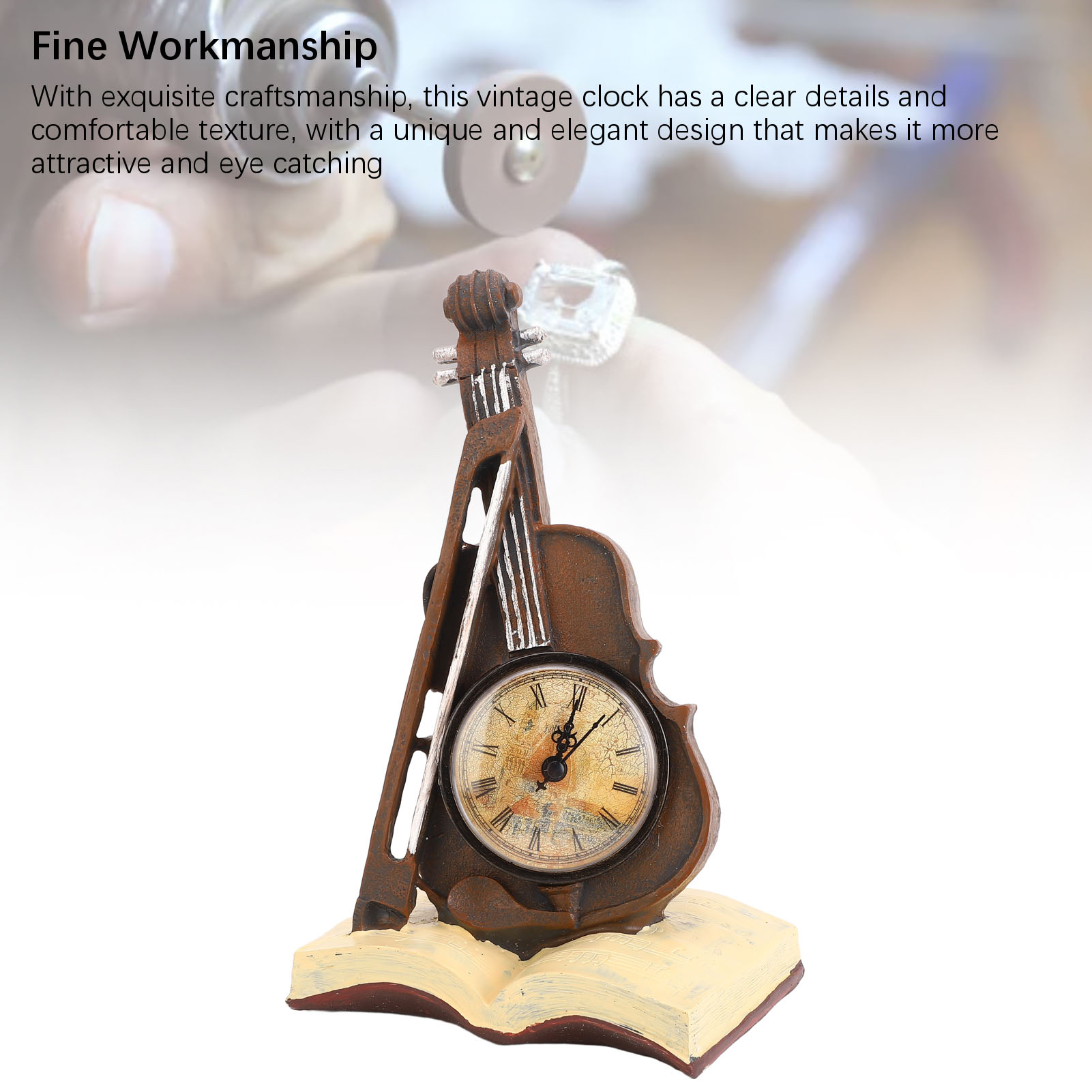 Retro Table Clock Book and Violin Shape Vintage Clock Resin Art Ornament for Home Living Room Office Coffee Shop