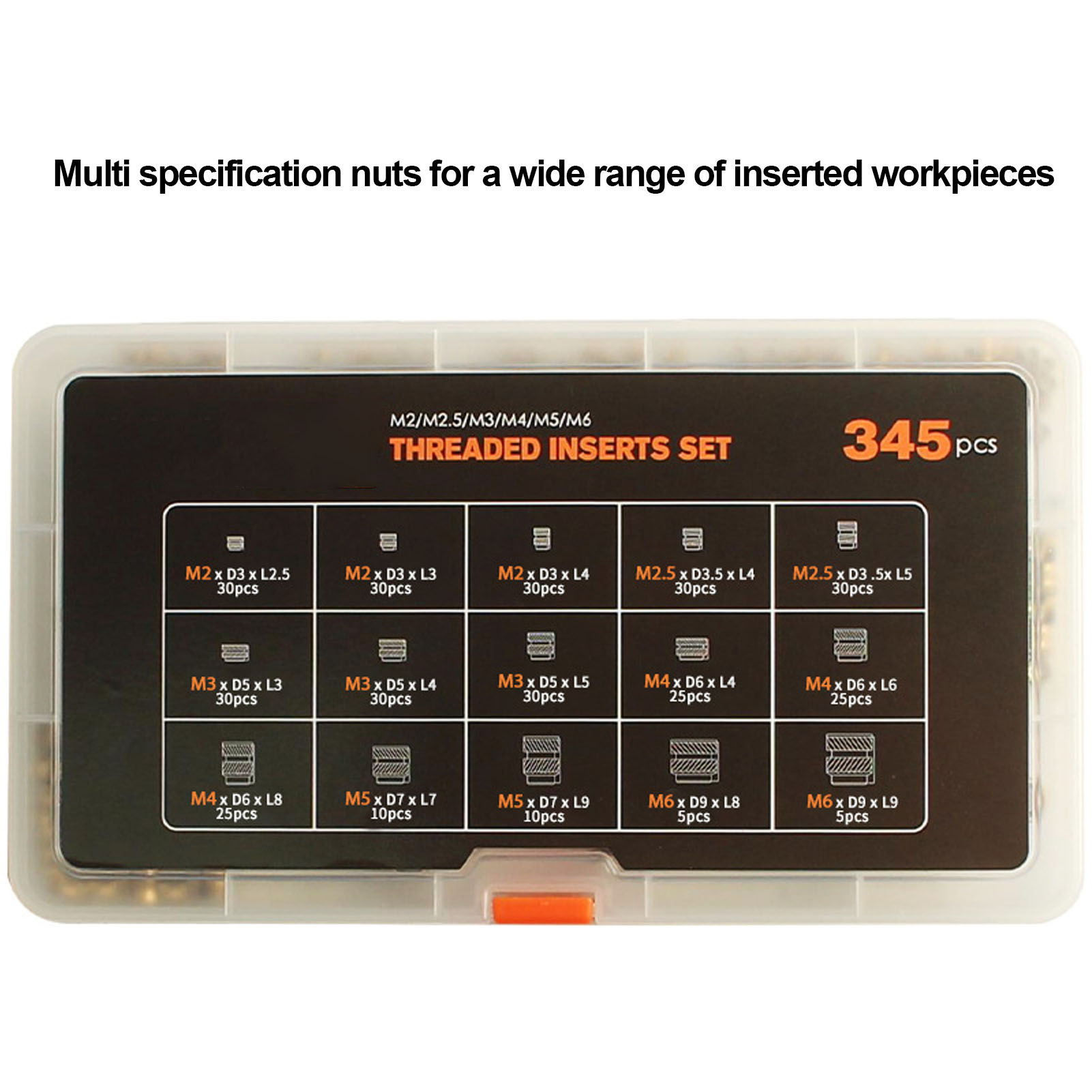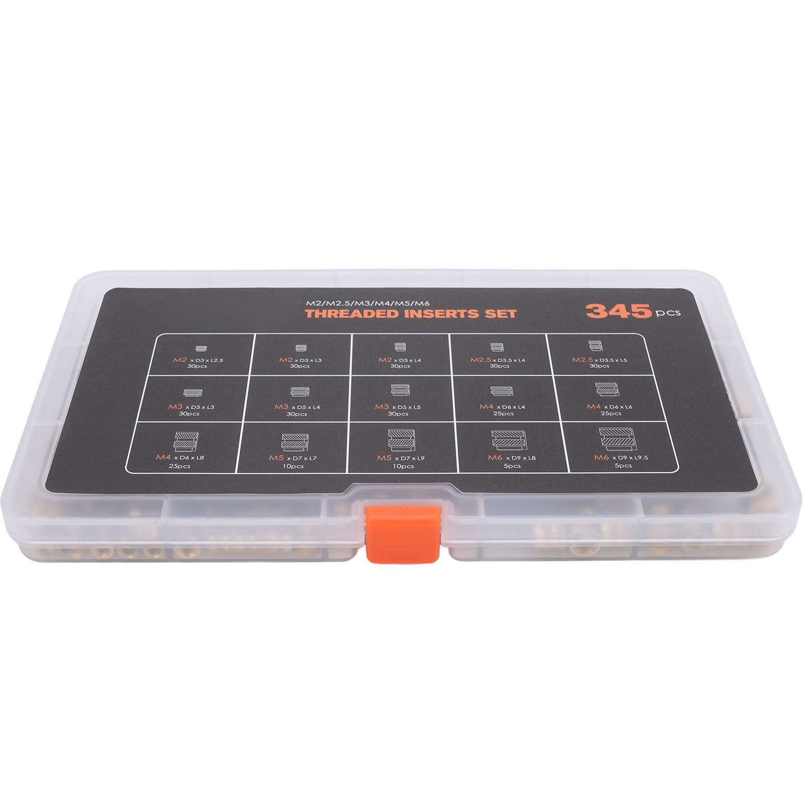 345件M2/M2.5/M3/M5/M6黄铜镶嵌螺母热熔植入工具套件 适用于塑料和3D打印组件 YM 2612240229711 K