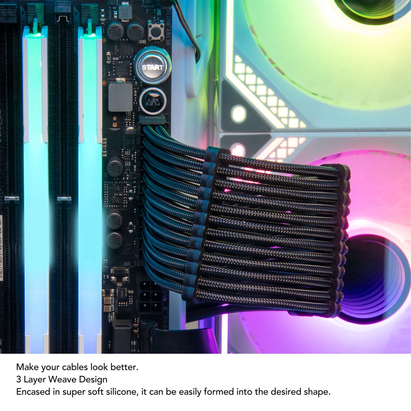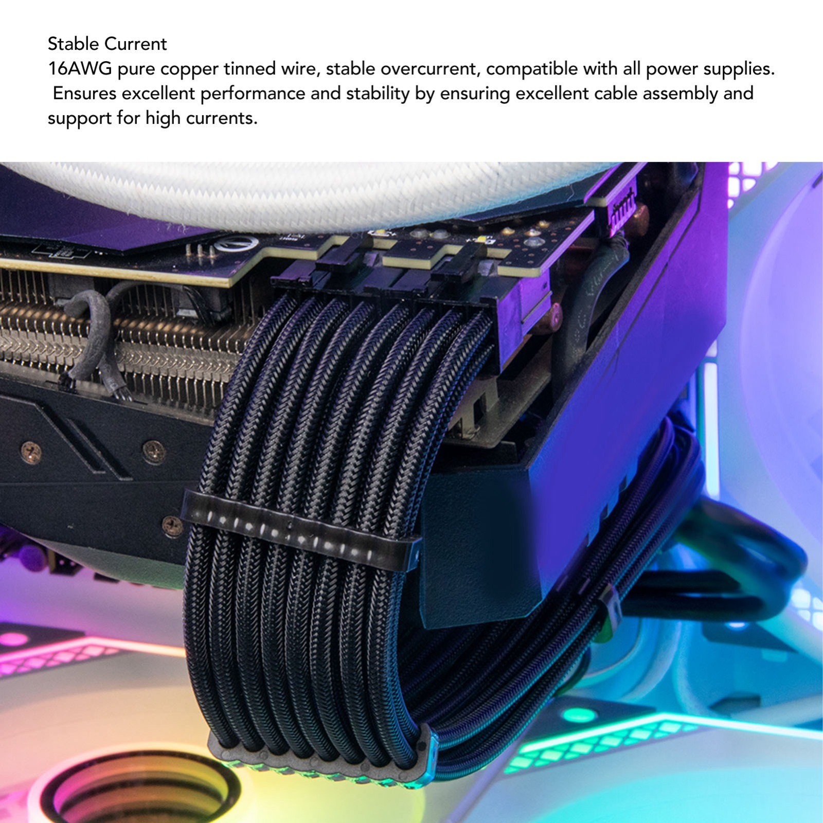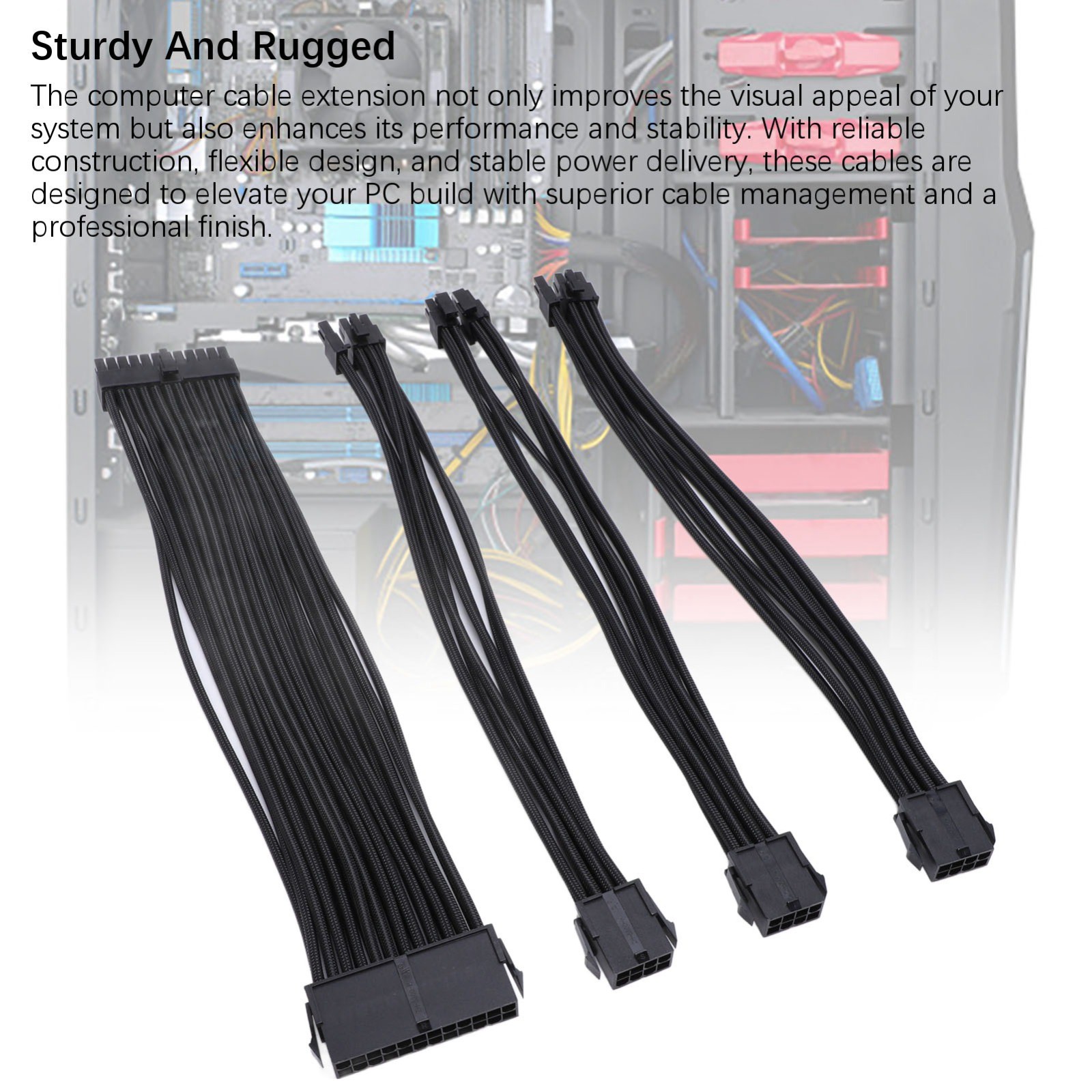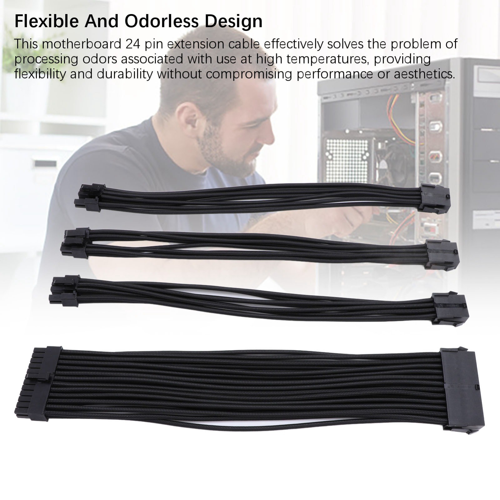 电脑电源延长线 主板24Pin转接线加长线 带电缆梳3x8Pin (6+2Pin)尼龙编织线显卡线30cm 黑色 YM 2612240218412 G