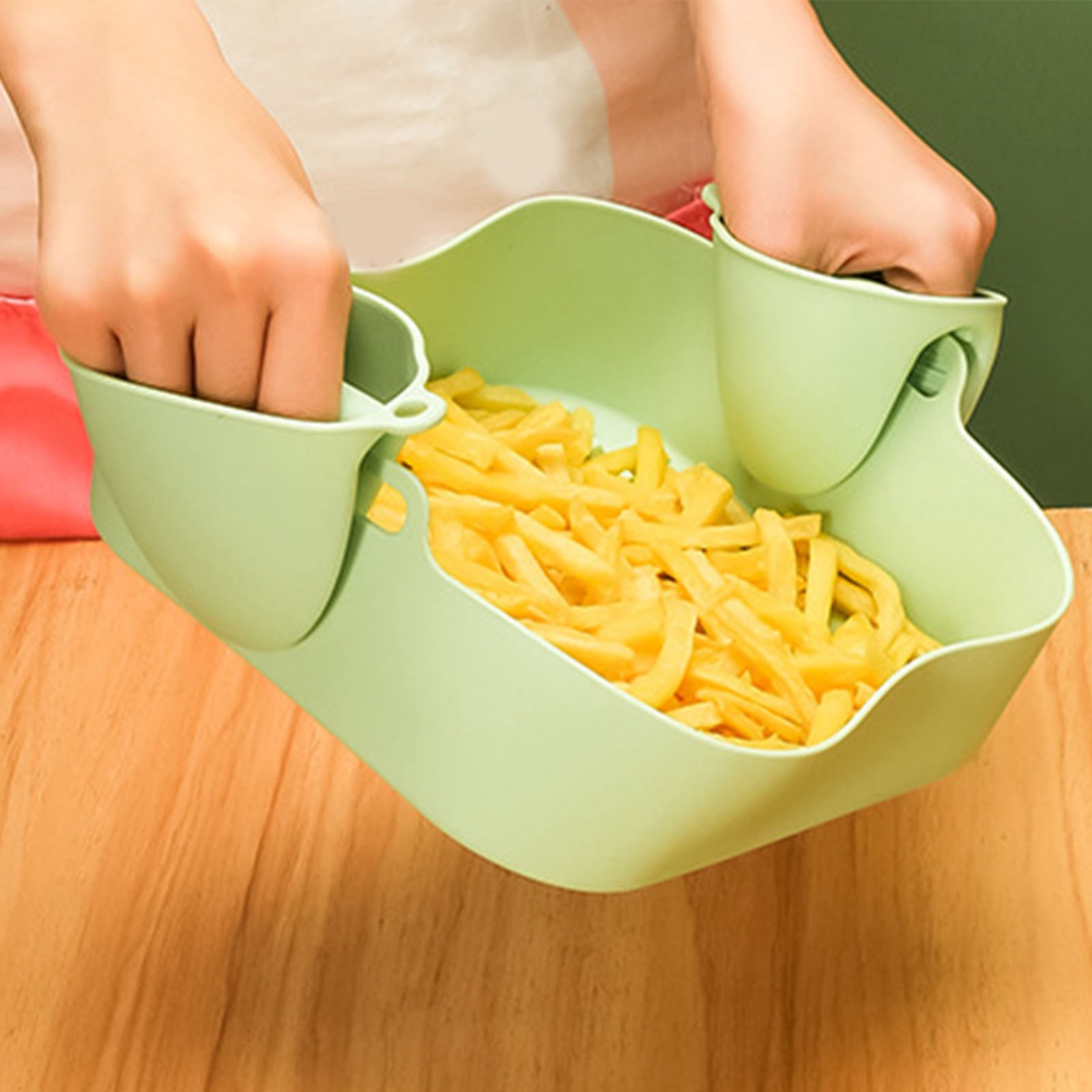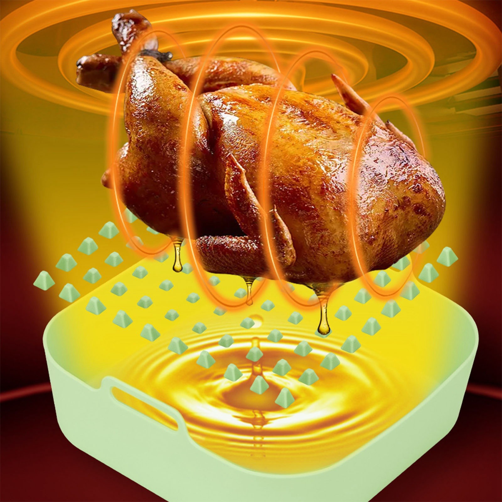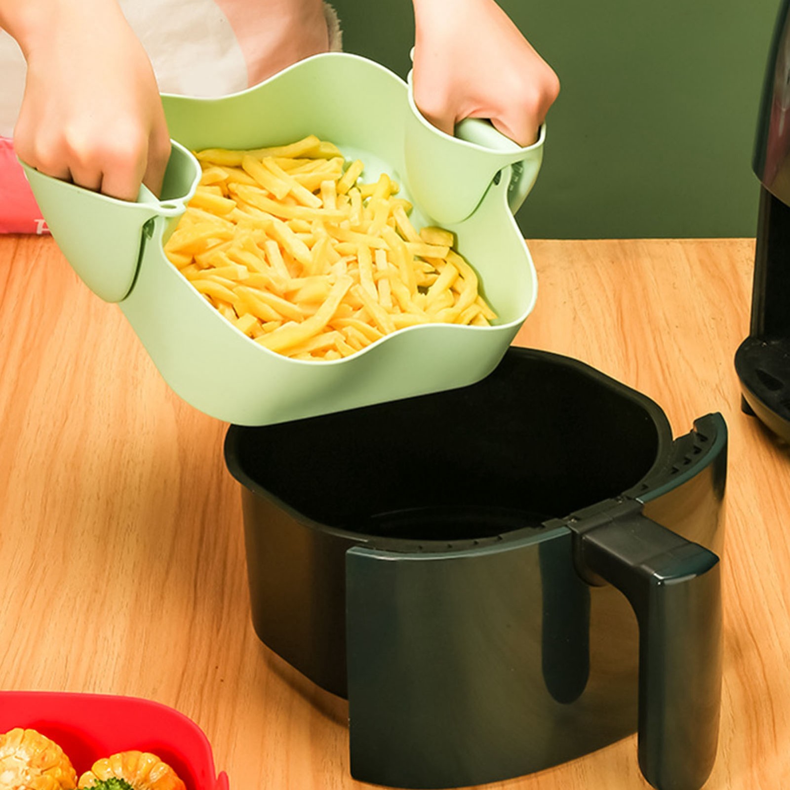 Reusable Fryer Silicone Liners 7.9in Square Fryer Silicone Basket Bowl with Handles Heat Resistant Non Stick Dishwasher Safe