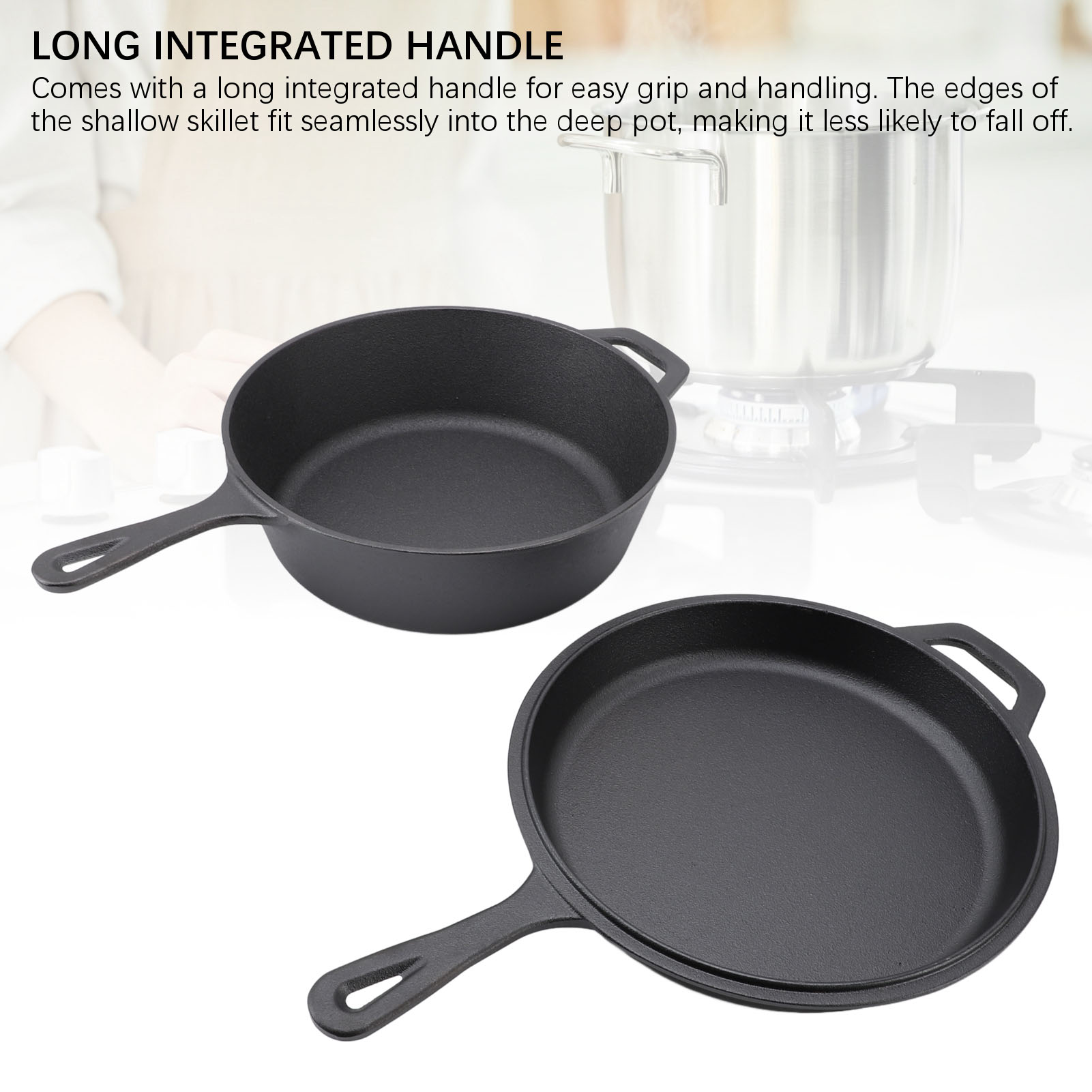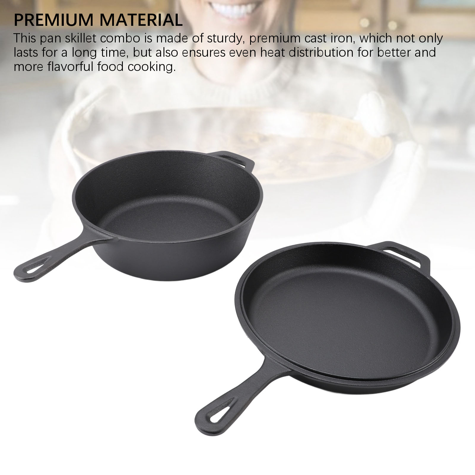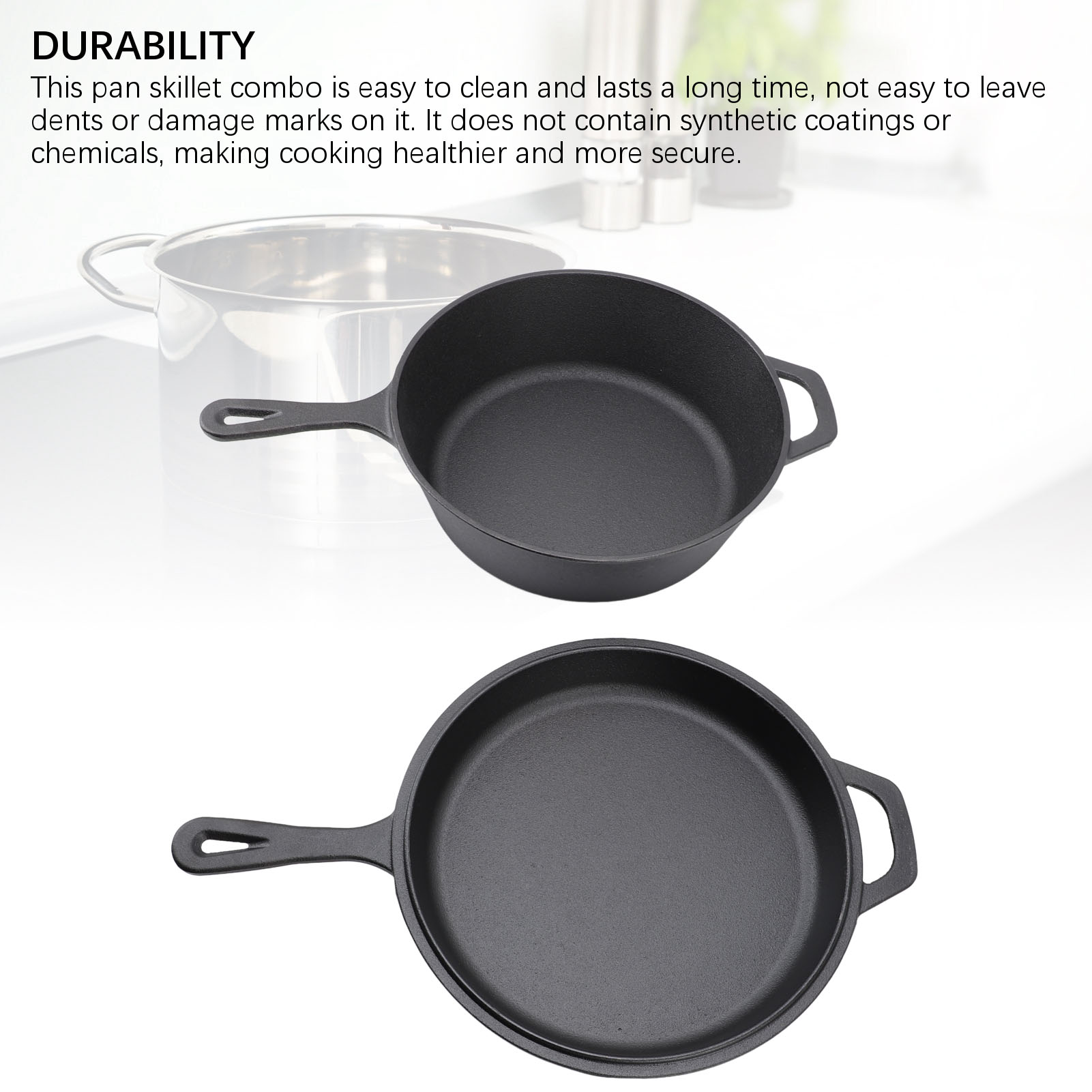 Pan Skillet Combo Dual Use Multipurpose Thickened Long Handle Cast Iron Combo Cooker for Kitchen