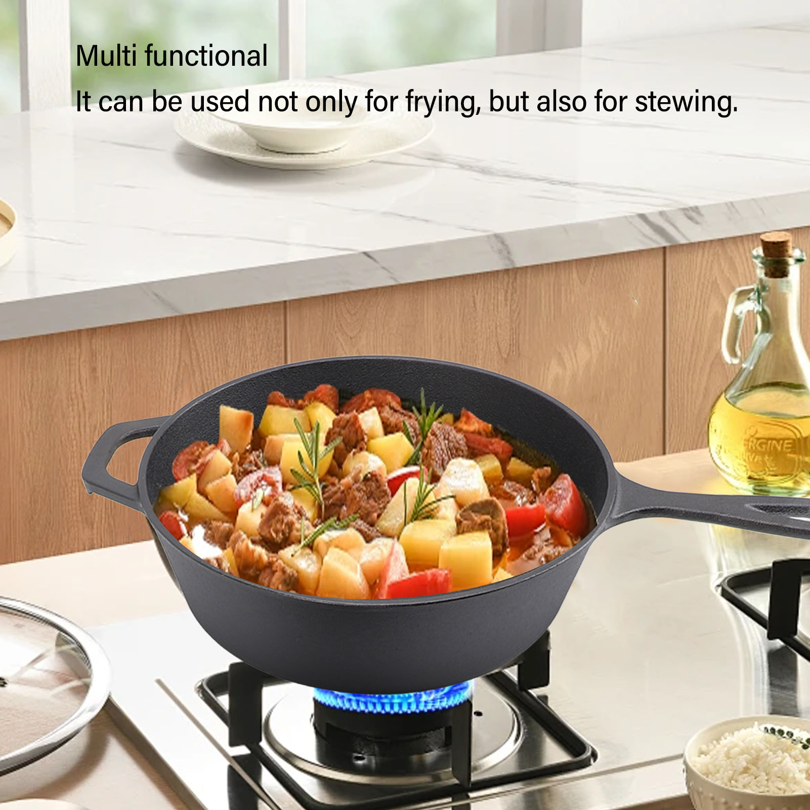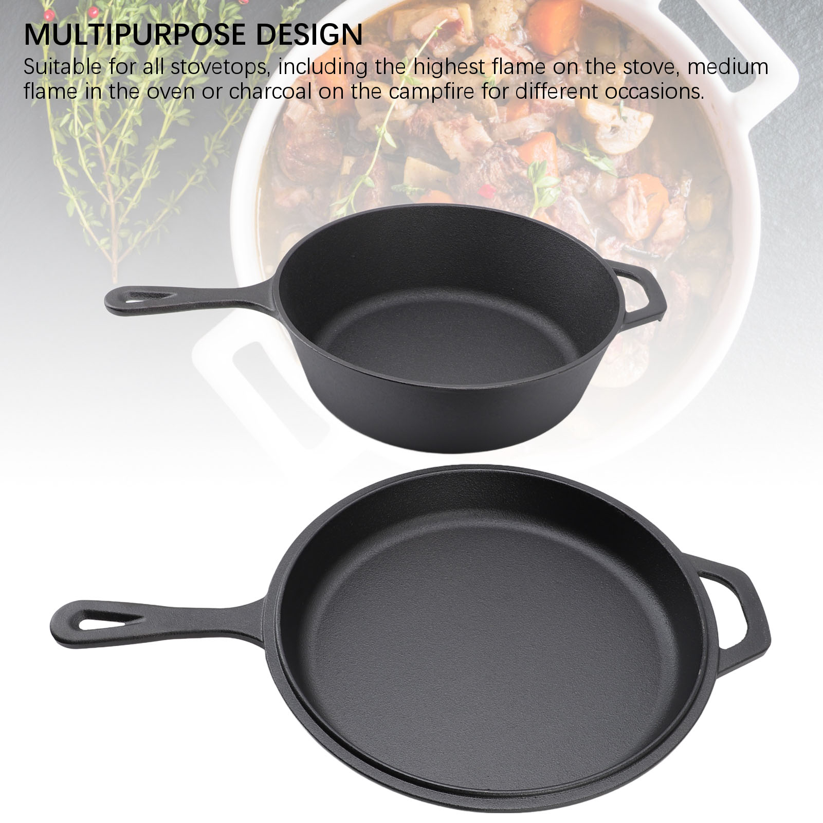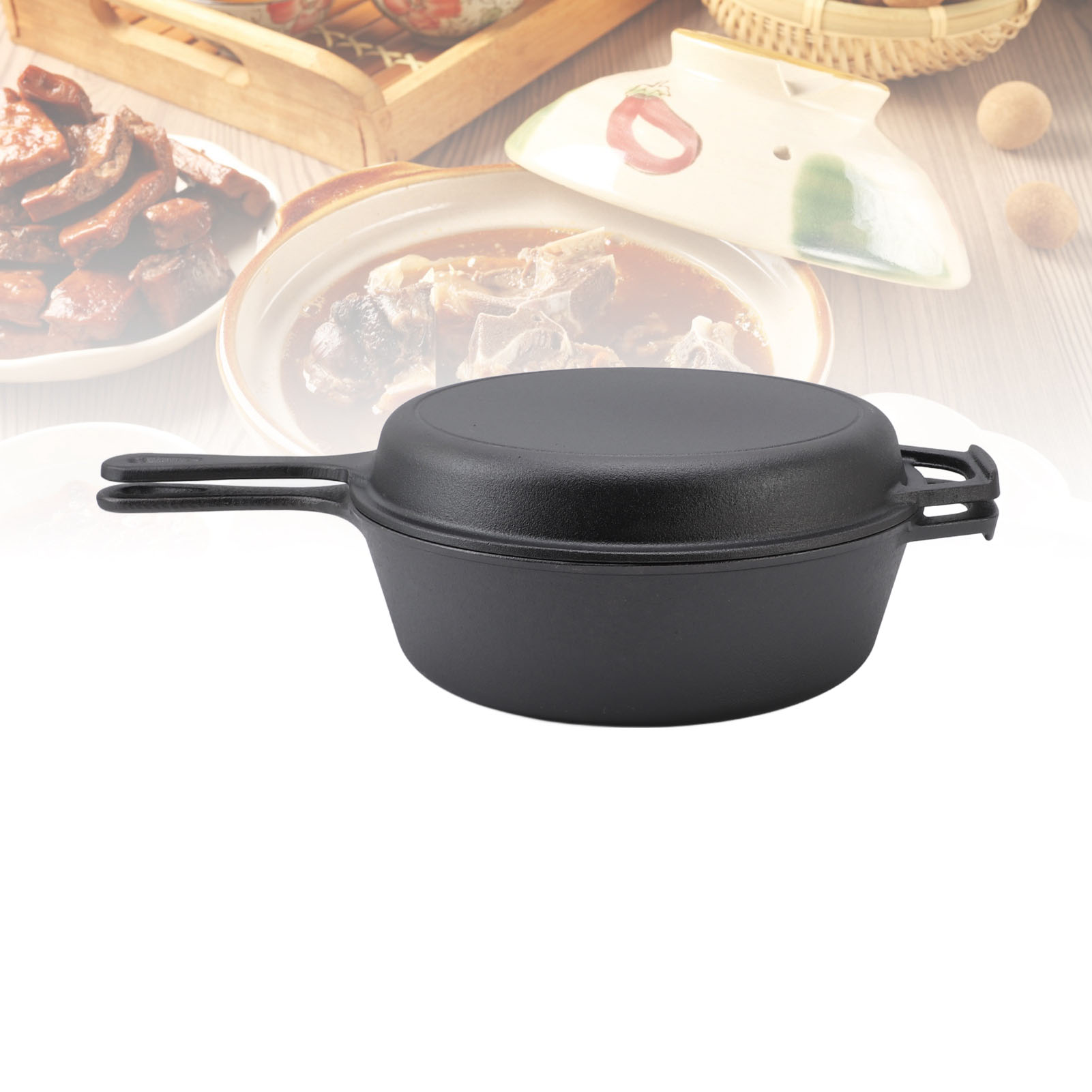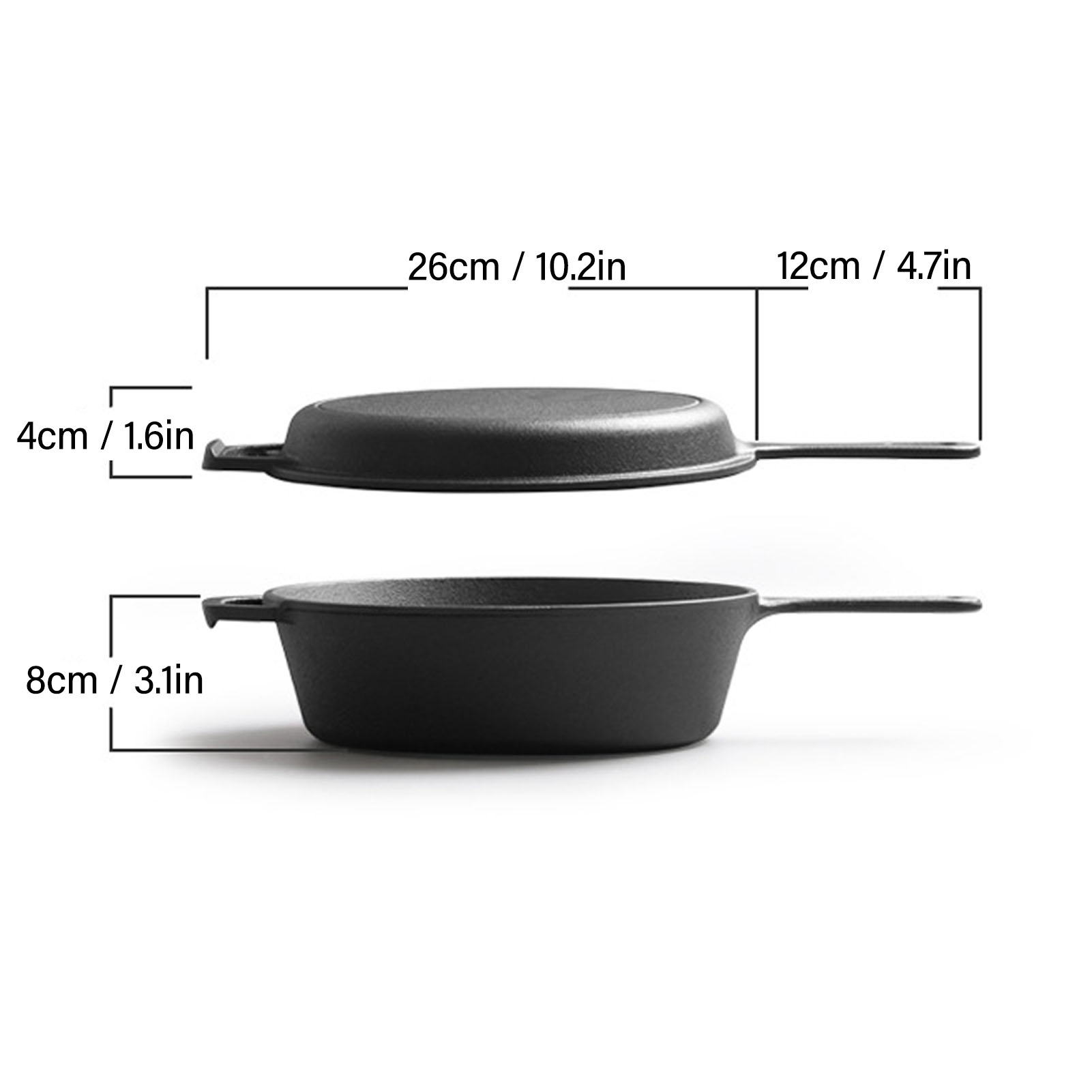 Pan Skillet Combo Dual Use Multipurpose Thickened Long Handle Cast Iron Combo Cooker for Kitchen