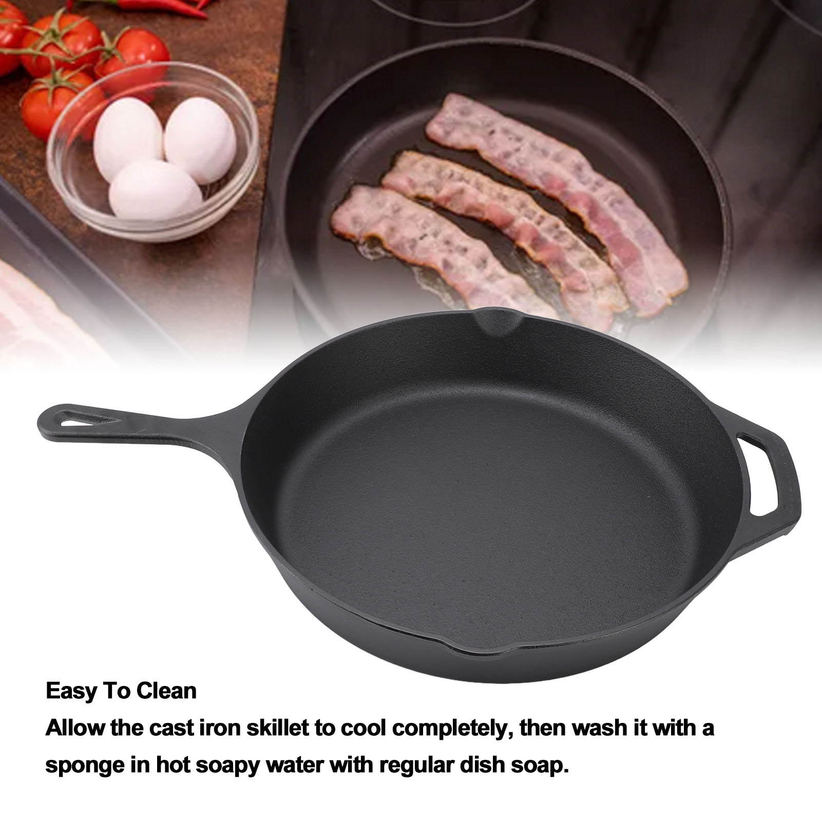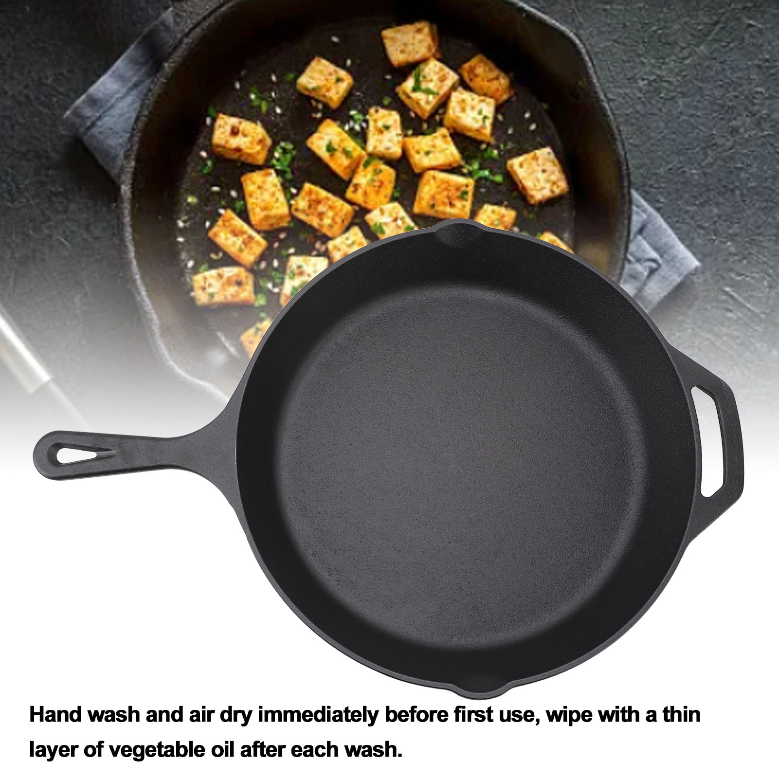 Kitchen Saute Fry Pan Cast Iron Uncoated Preseasoned Deep Frying Pan Skillet for Kitchen