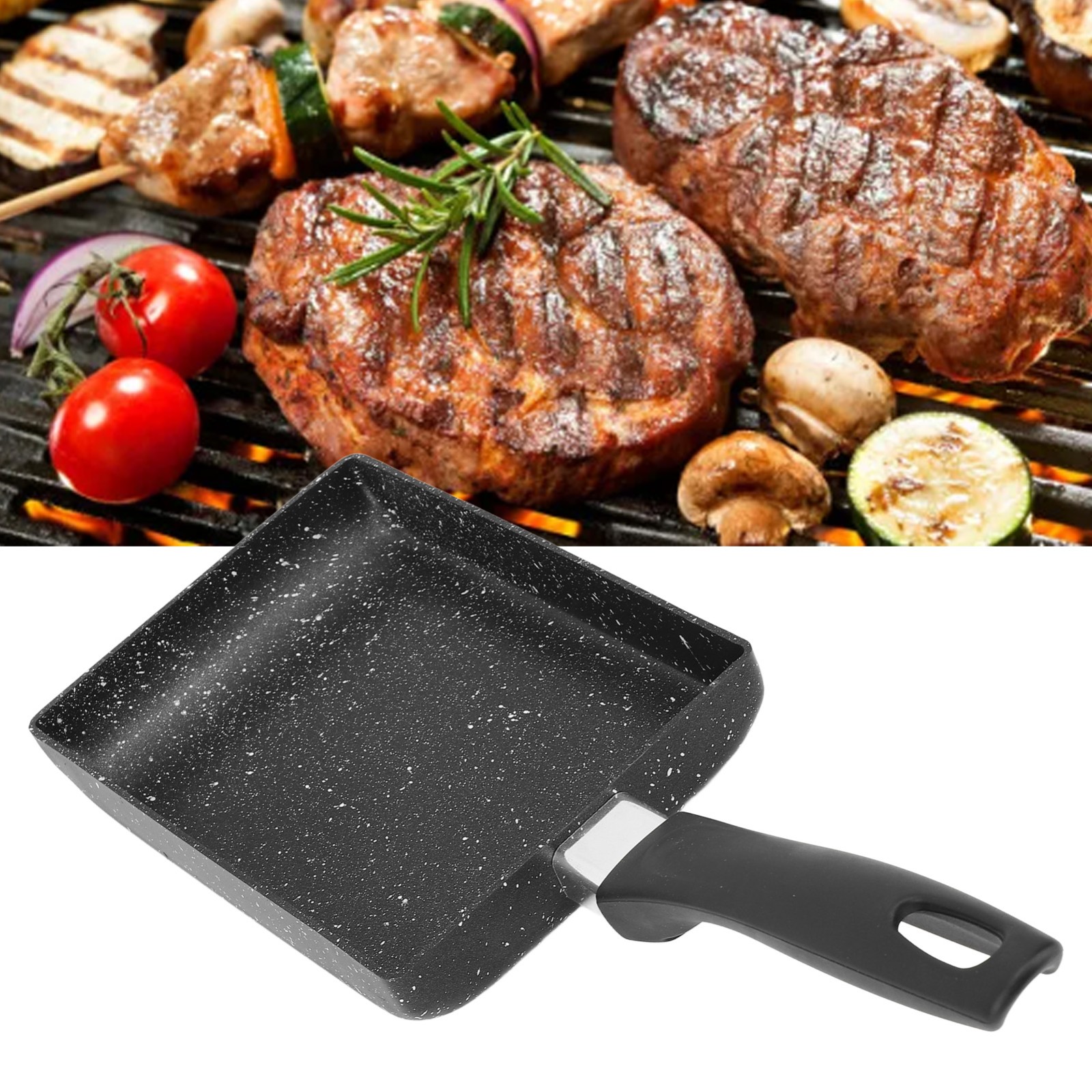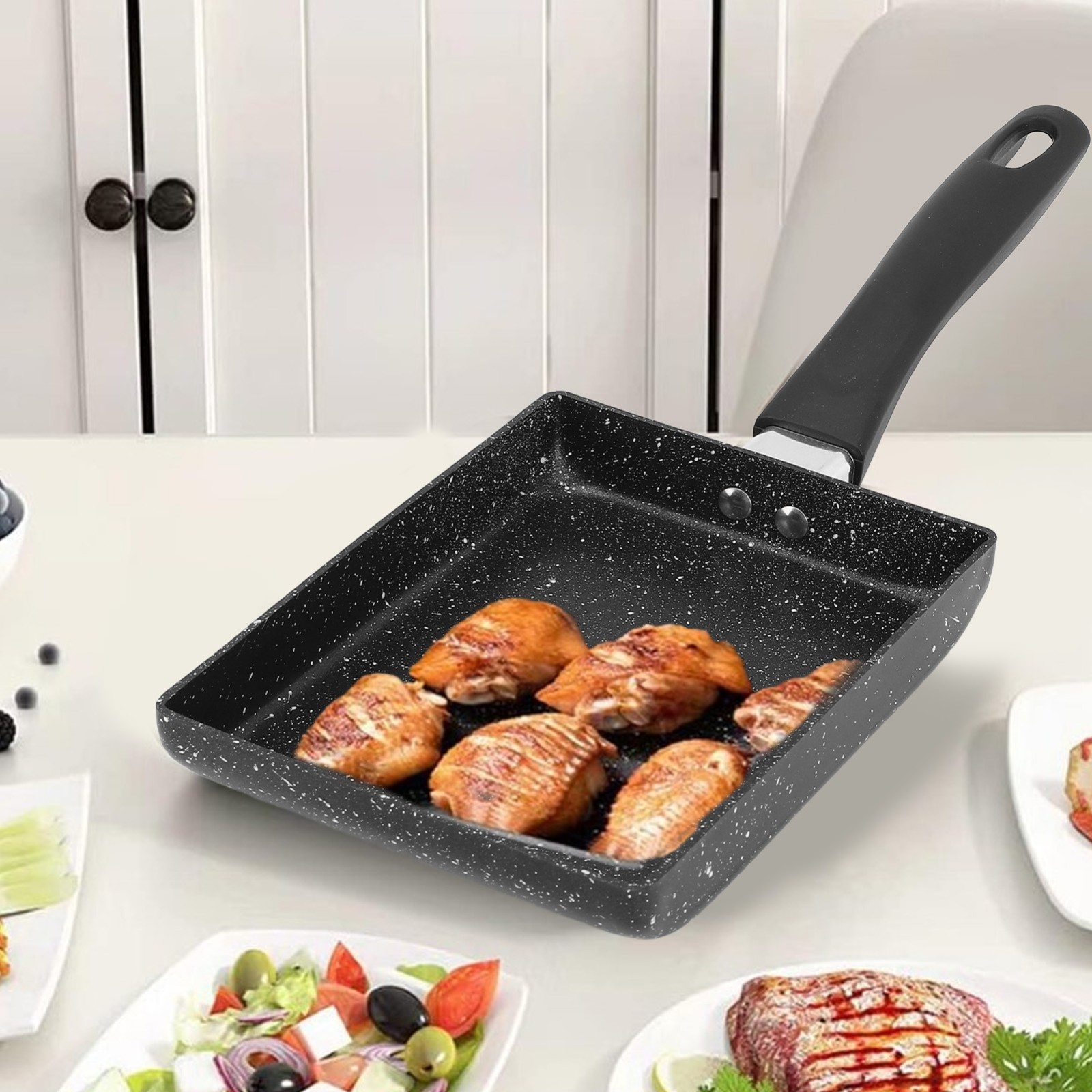Non Stick Frying Pan with Handle Rectangle Cooking Pan Multifunctional Cookware for Egg Roll Pancake Large 15x19cm