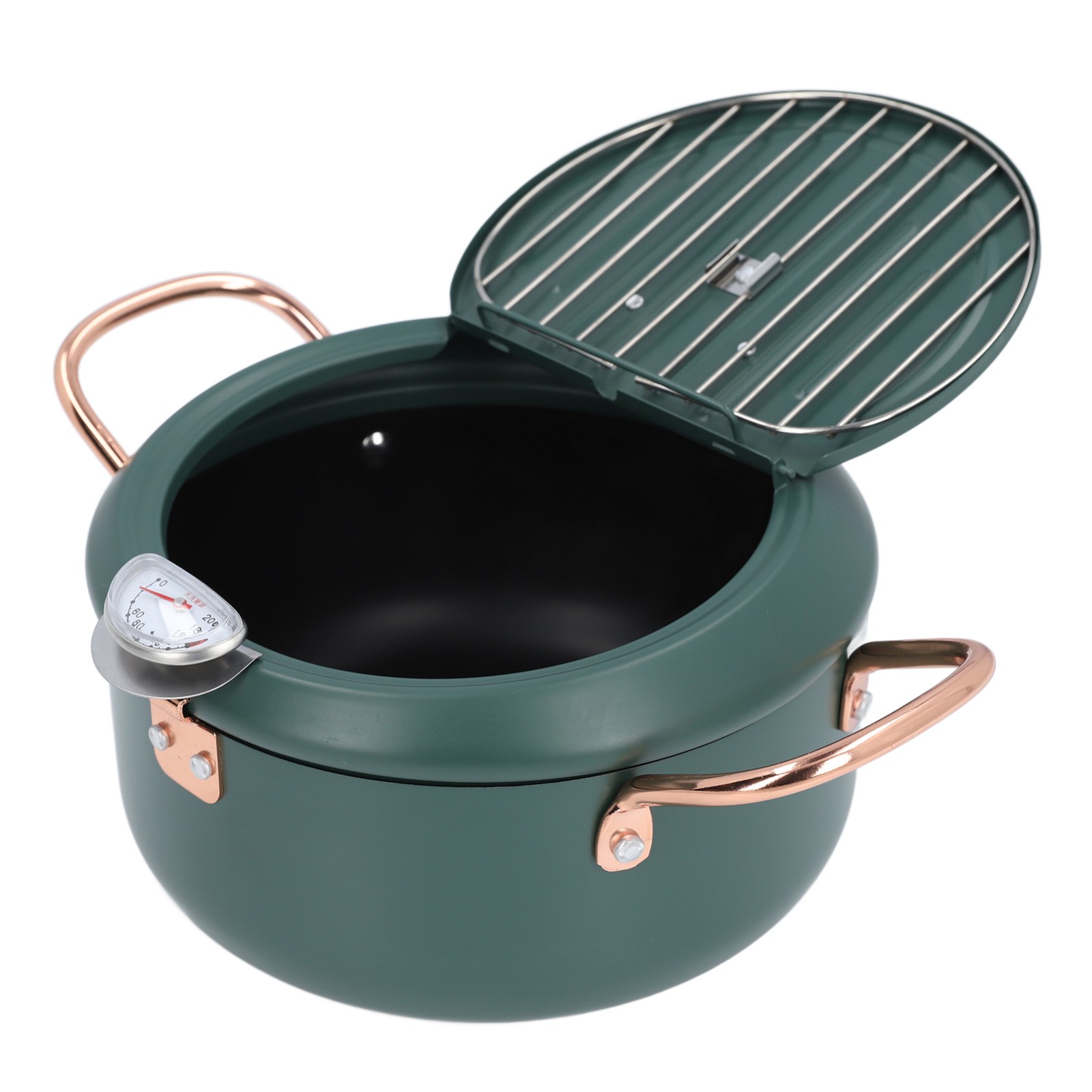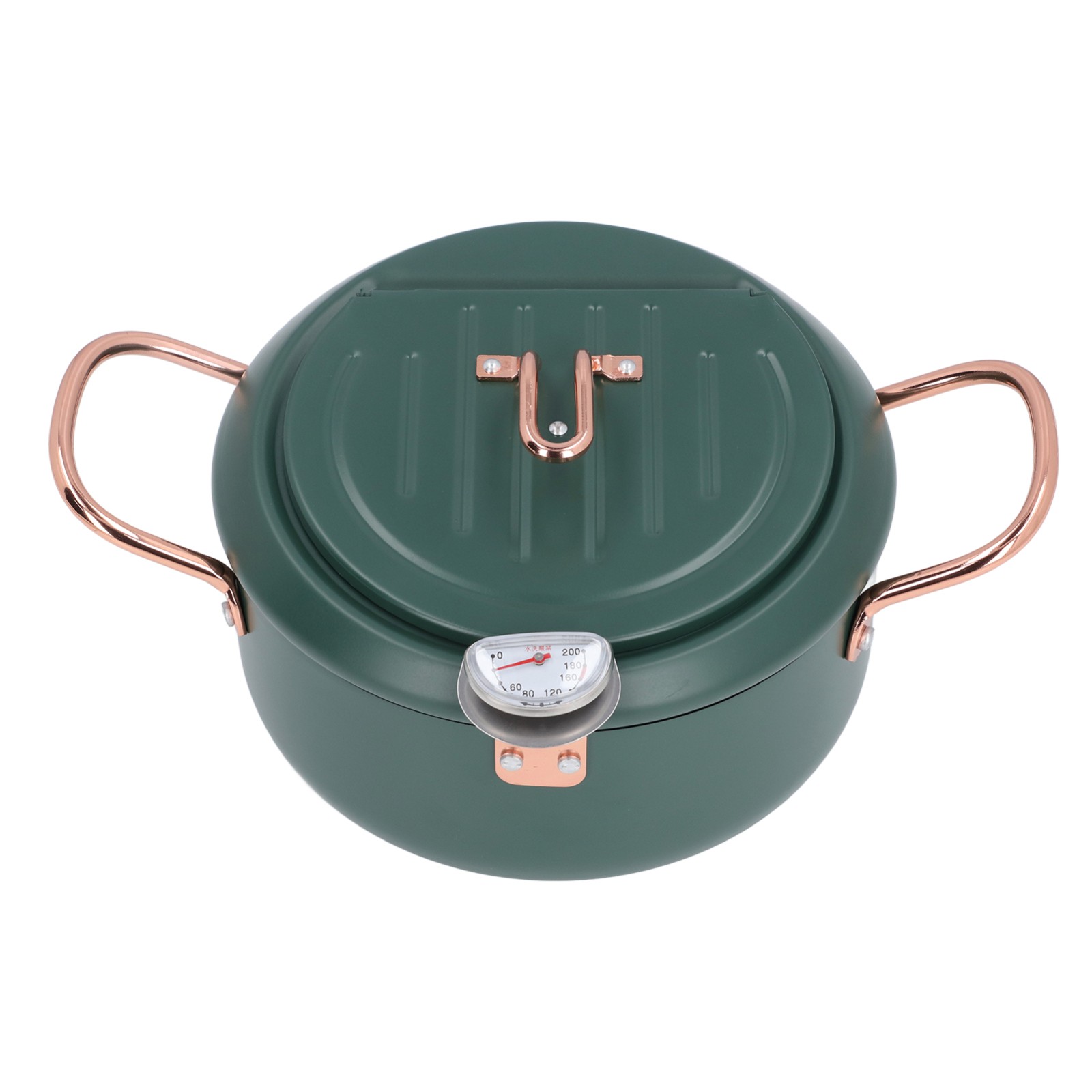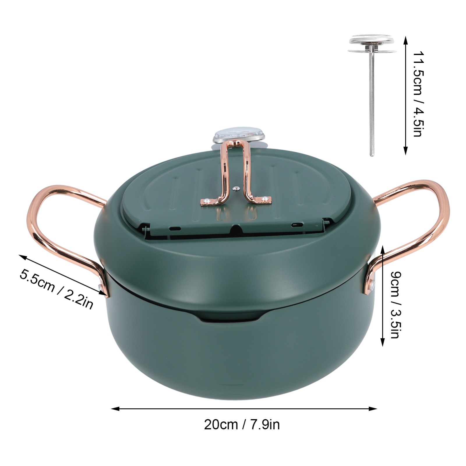 Frying Pot Japanese Style Tempura Fry Pot Double Handles Iron Cooking Pot with Oil Temperature Gauge for Dishes Soup Green