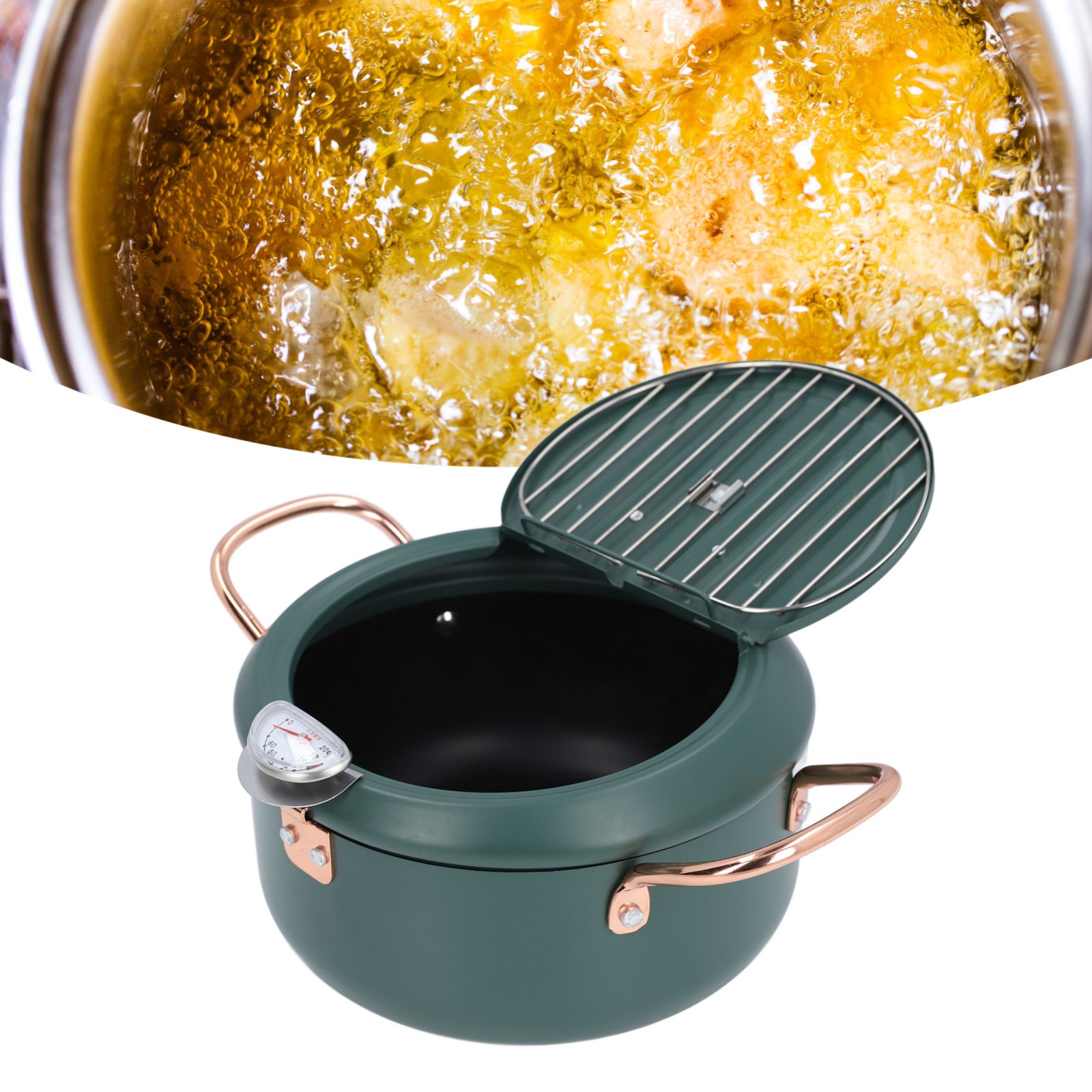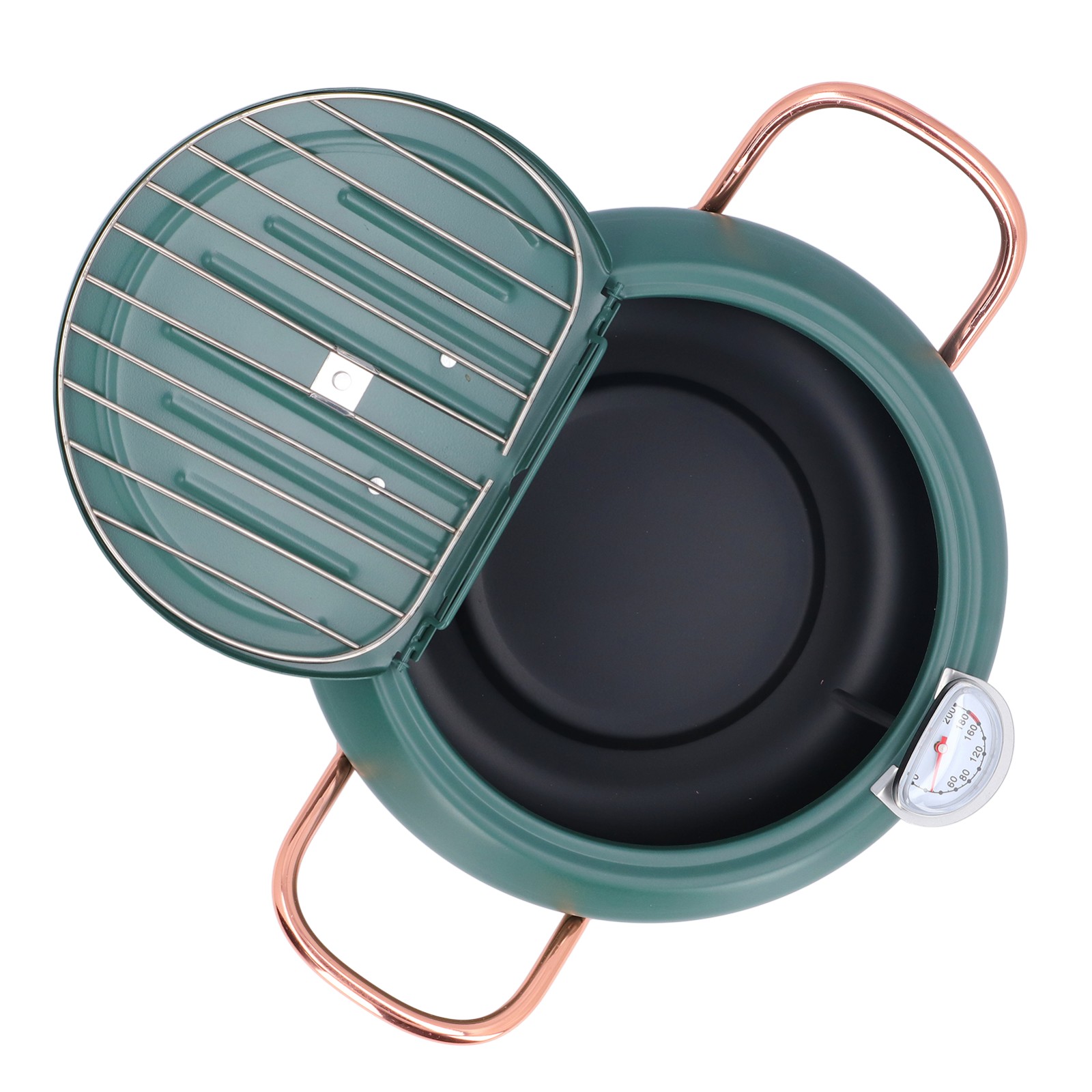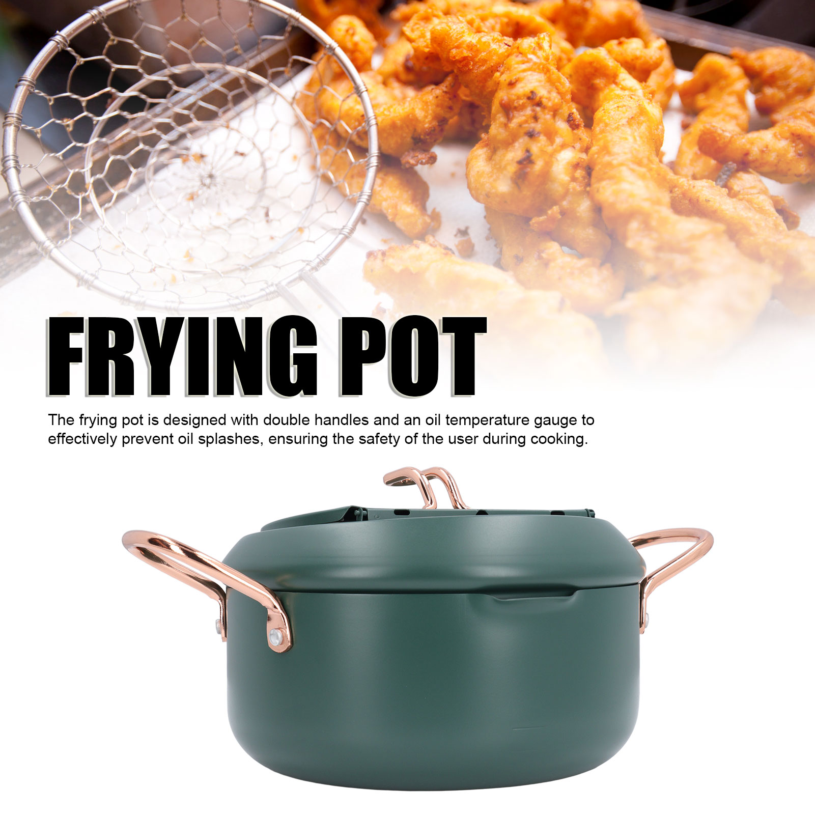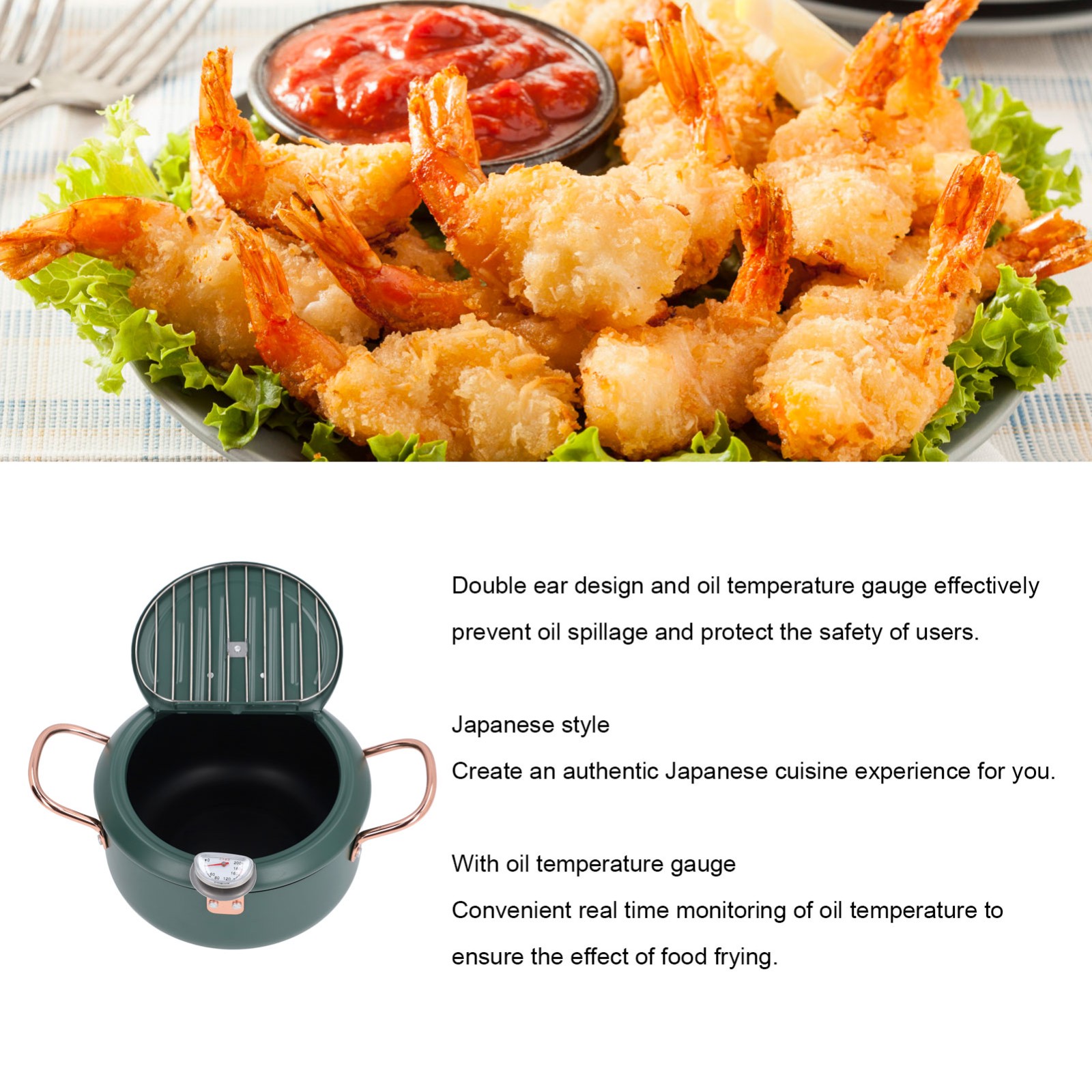 Frying Pot Japanese Style Tempura Fry Pot Double Handles Iron Cooking Pot with Oil Temperature Gauge for Dishes Soup Green