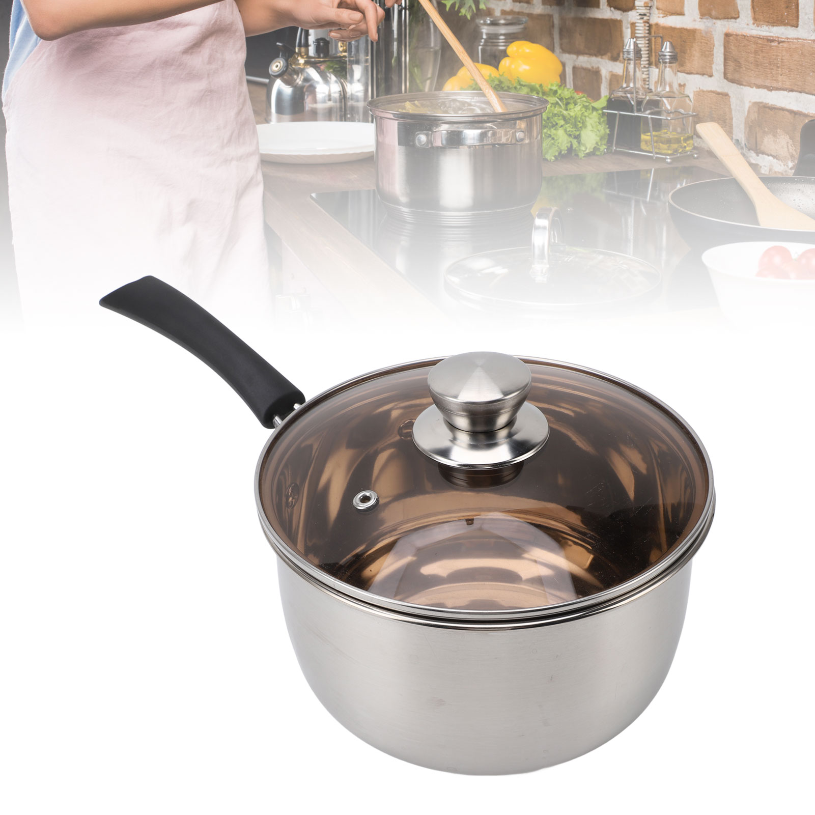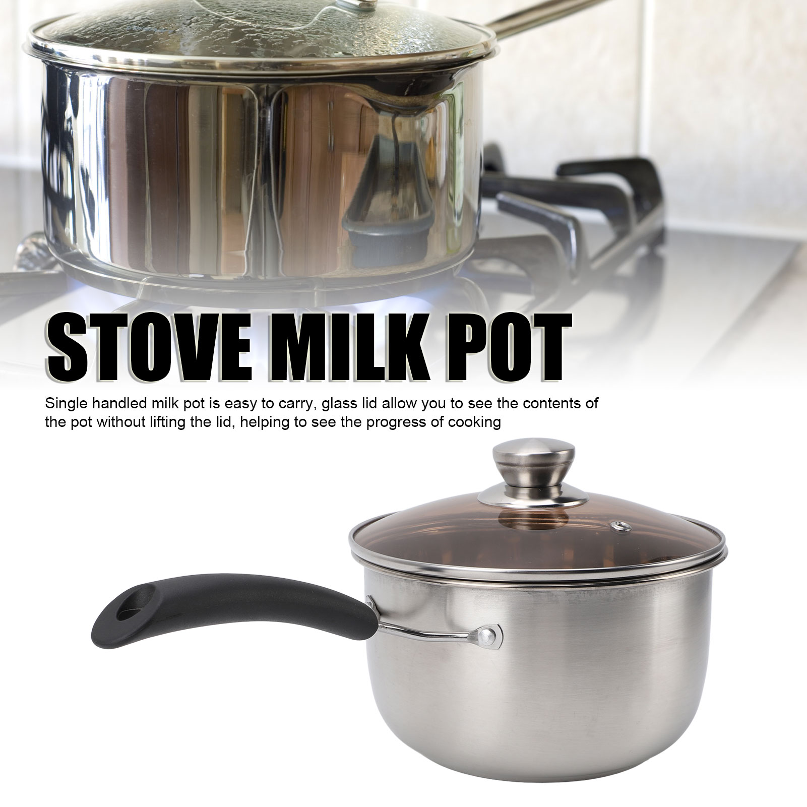 Milk Pot for Stove Top Stainless Steel with Lid Single Handle Saucepan Household Kitchen Utensils
