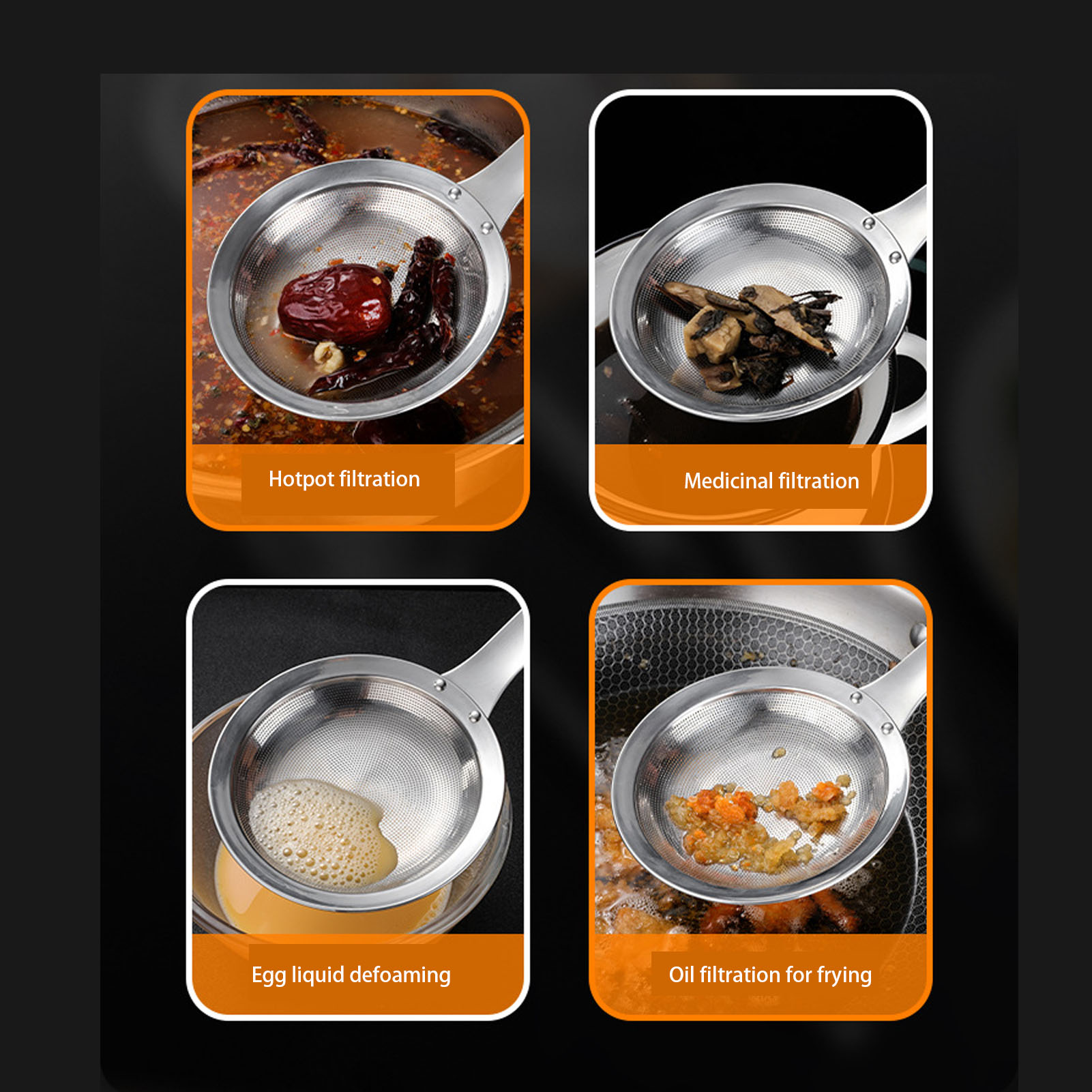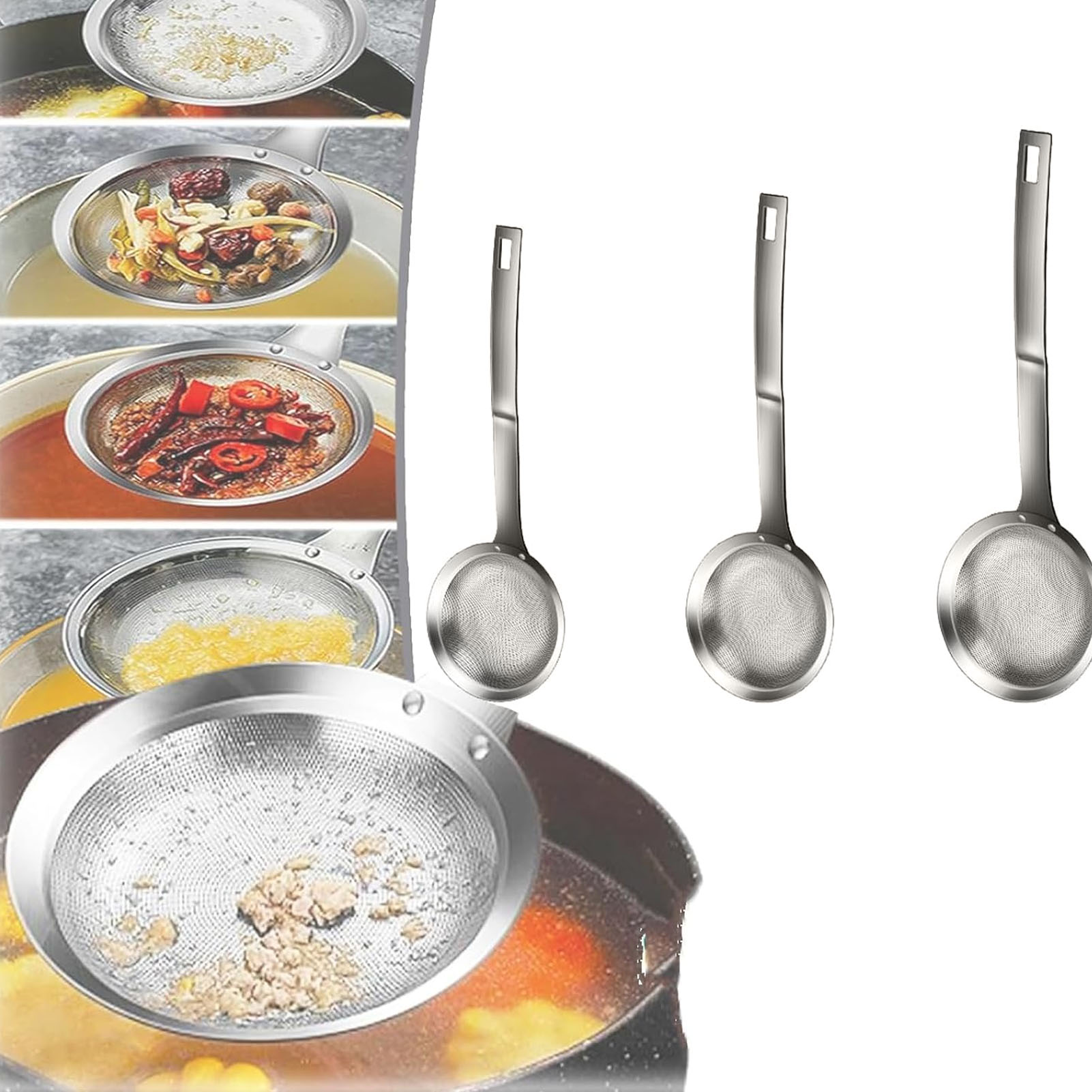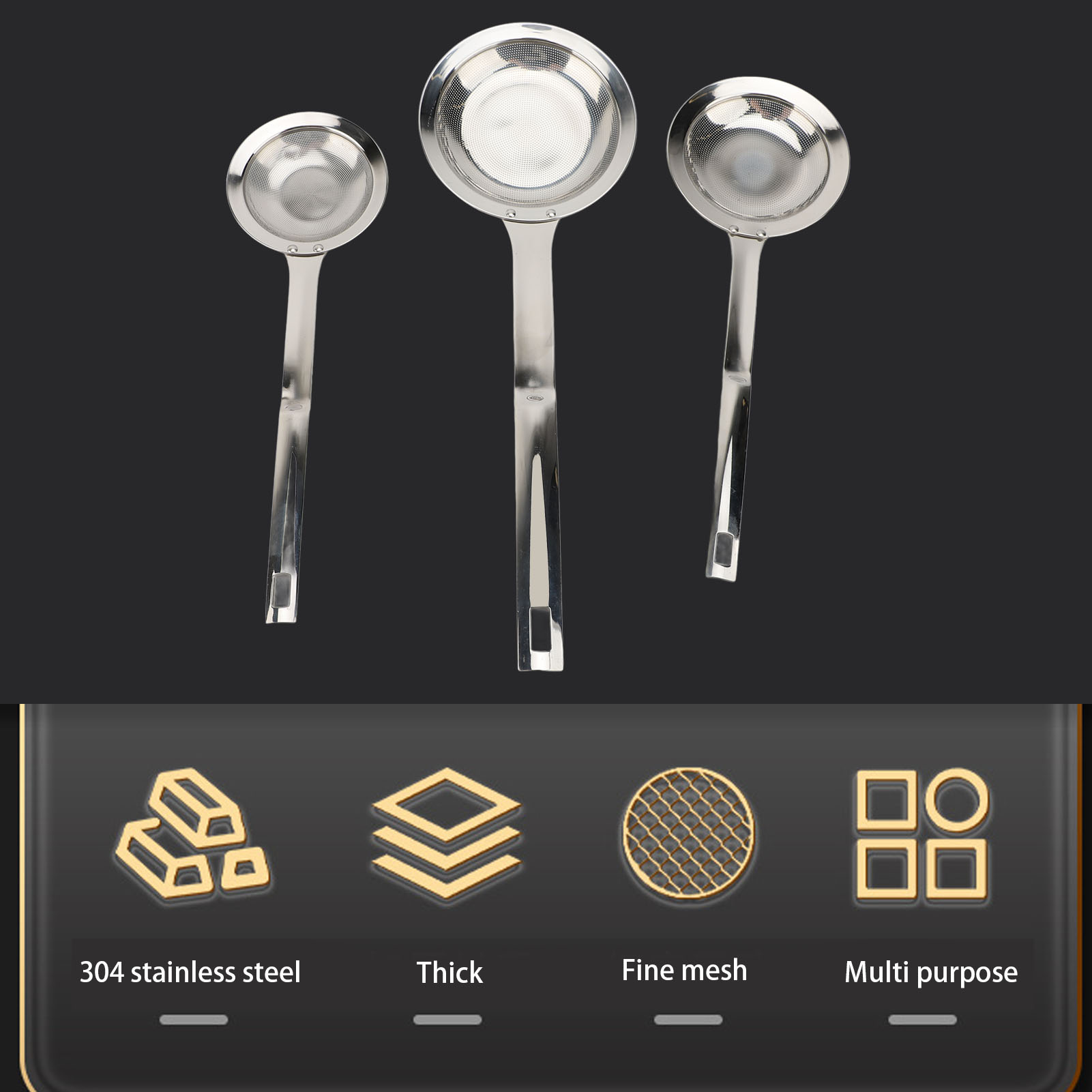 3pcs Skimmer Spoons 304 Stainless Steel Fine Mesh Strainers Foam Strainer Oil Filters For Separation Floating Foam Grease