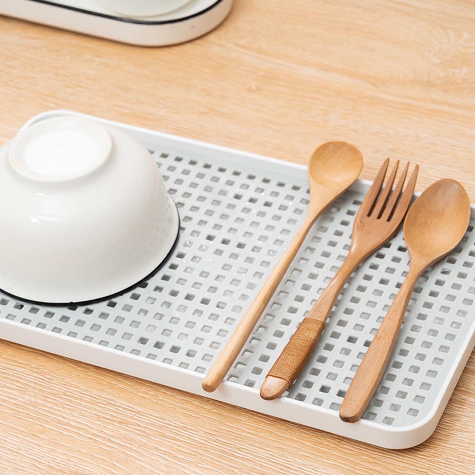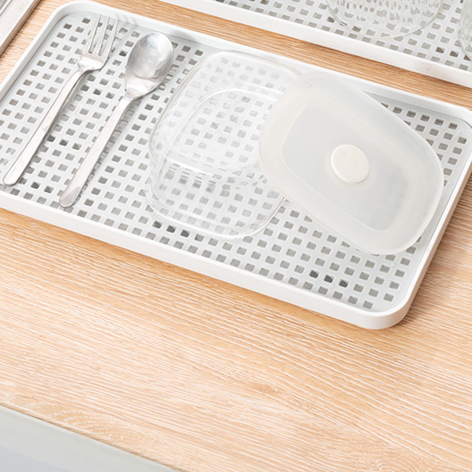 Double Layer Drain Tray Dish Drainer Drying Rack Tea Tray for Cup Bowl Fruit Water Drip Tray Holder Rectangular 31x17.5x2.3cm