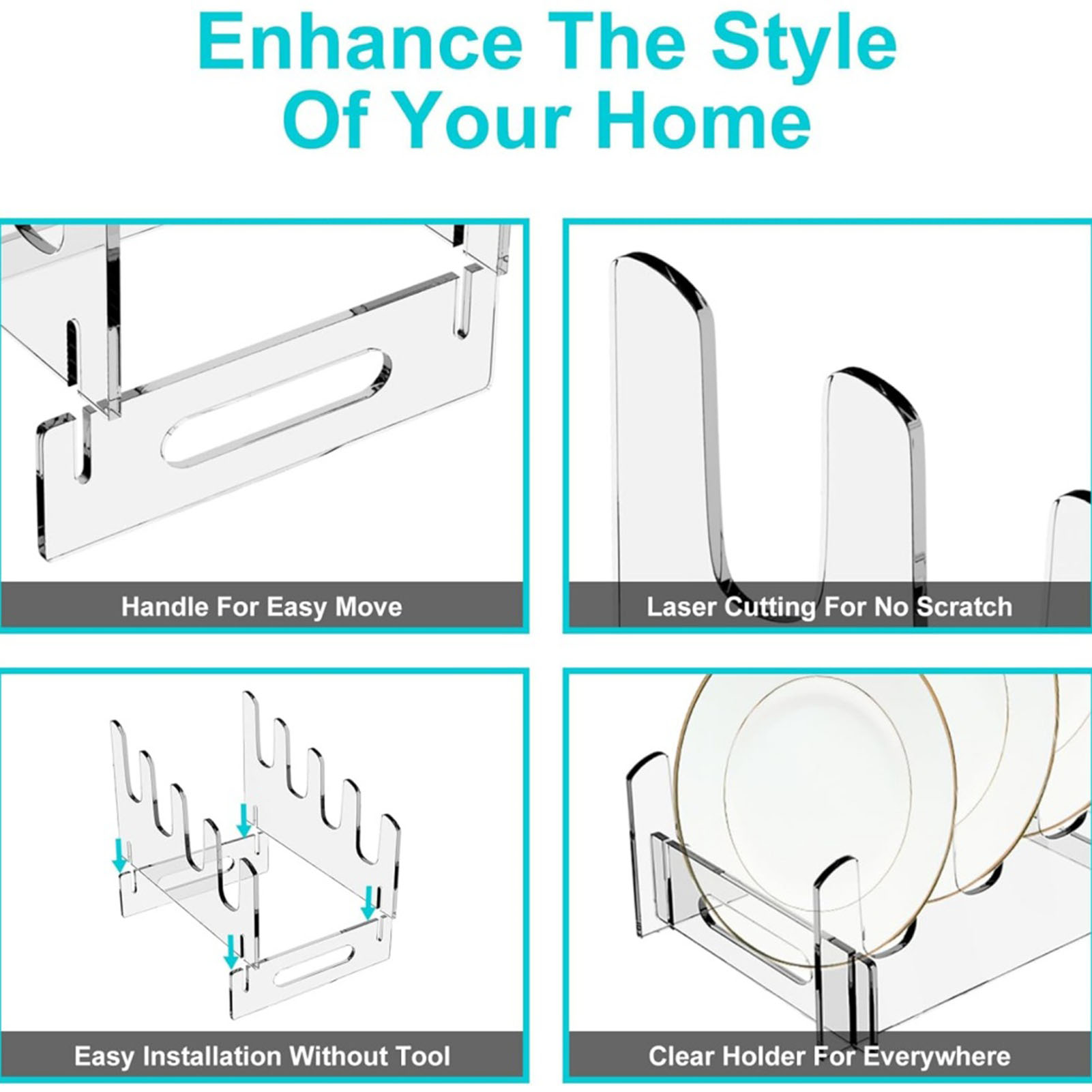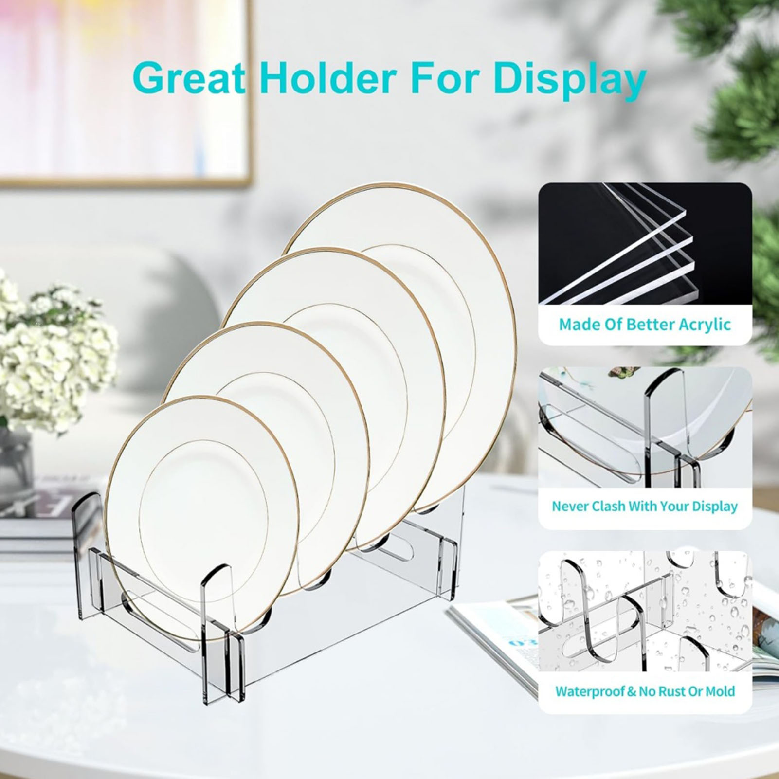 Plate Dinnerware Display Stand Acrylic Multiple Plates Display Rack Space Saving Kitchen Organizer 4 Layer