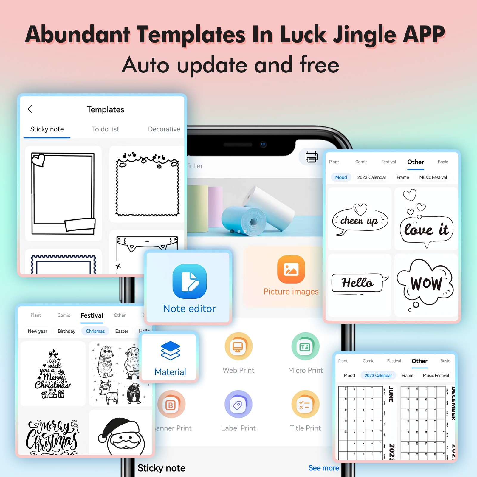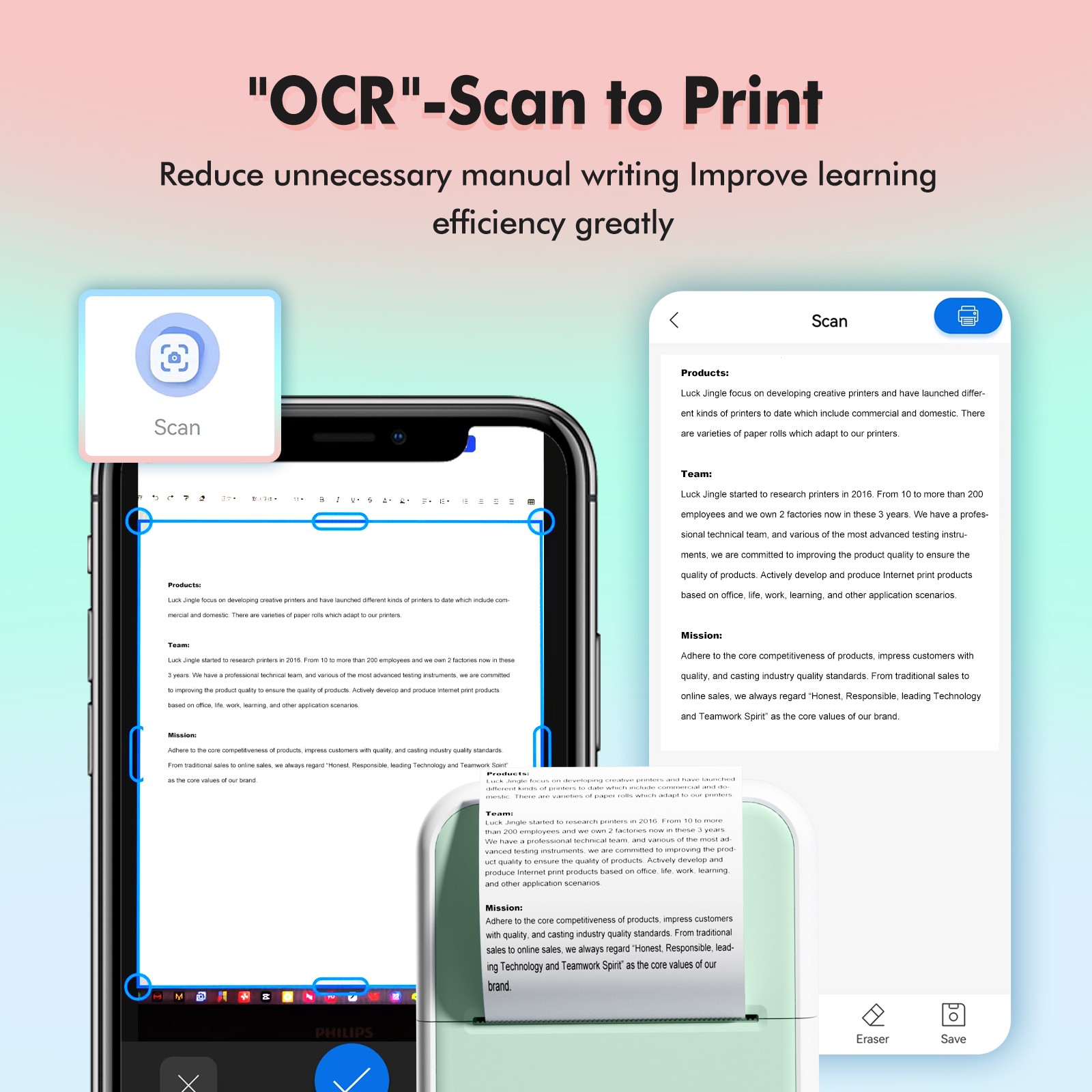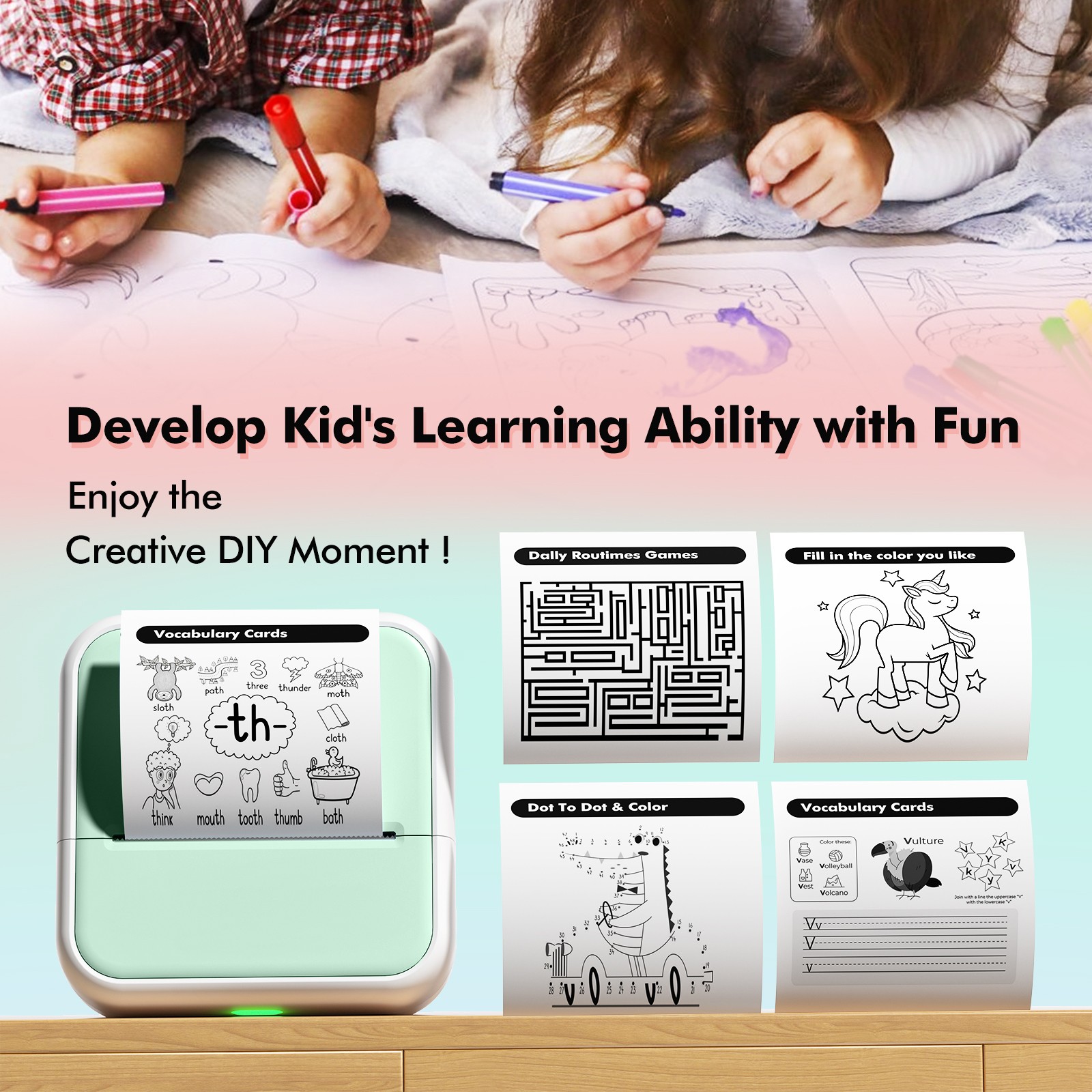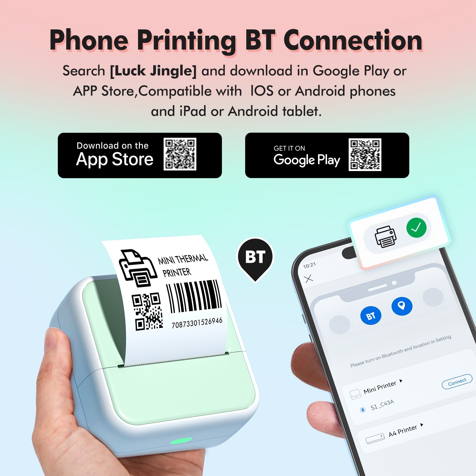 Mini Pocket Printer Portable Thermal Instant Photo Printing Label Maker Machine BT Wireless Connect Compatible with Android / iOS APP Support Receipt Label Memo Sticker Notes Lists Scrapbook DIY Journal Pictures - with 1 Paper Roll (57x26mm)